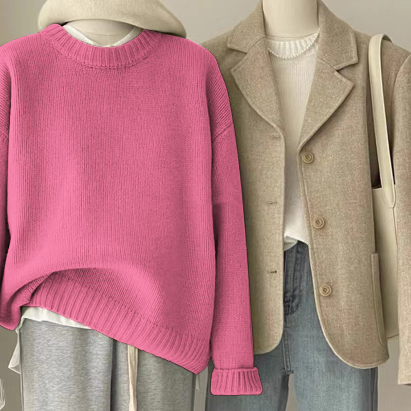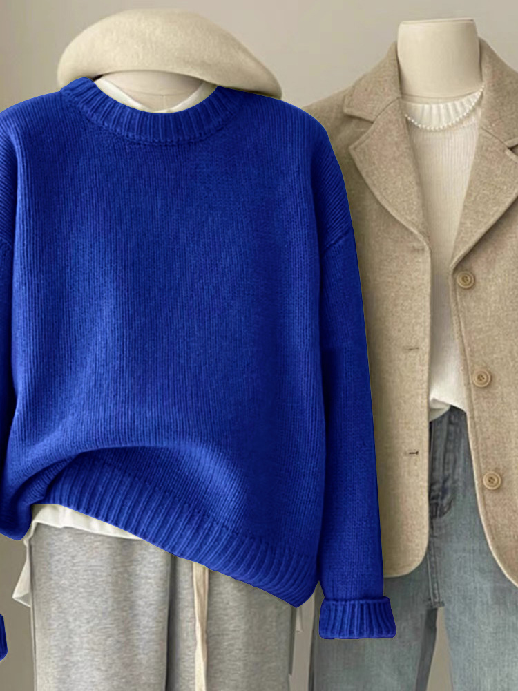日系复古深绿色毛衣女秋冬宽松慵懒风圆领套头打底内搭针织衫加厚