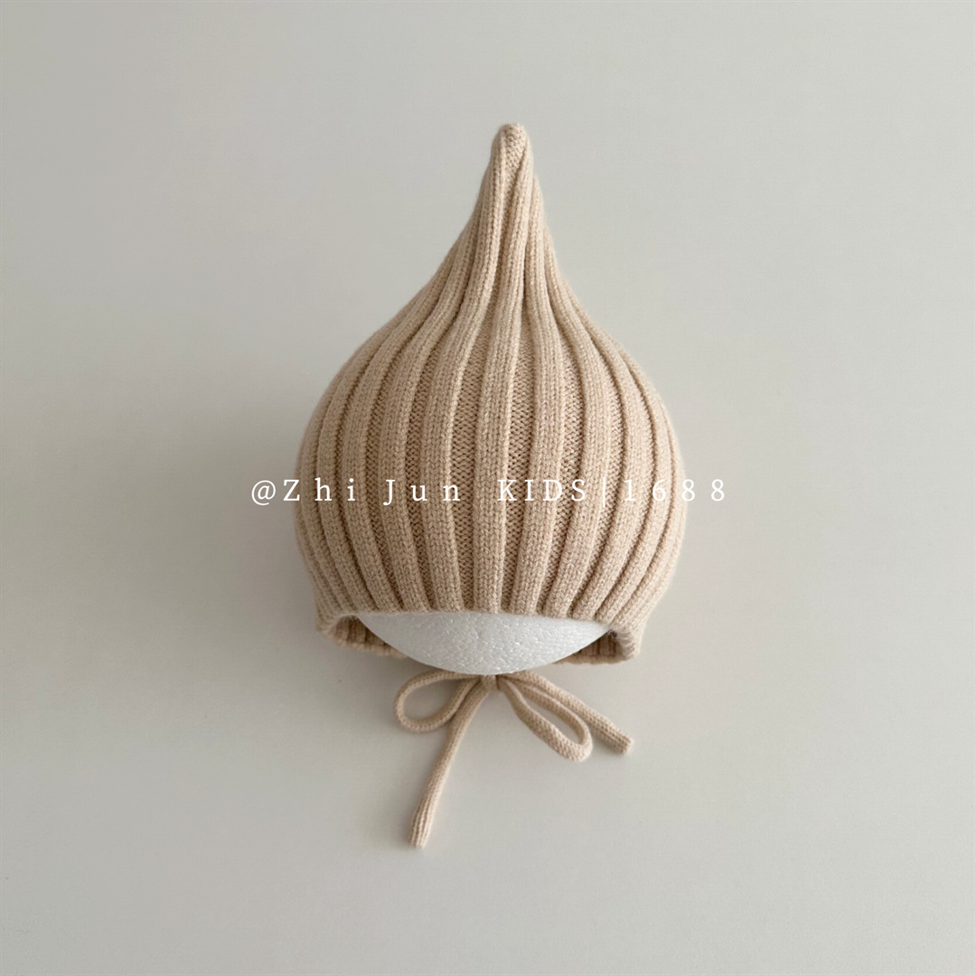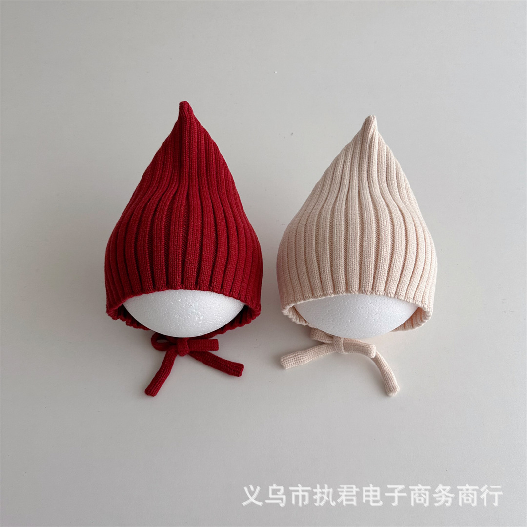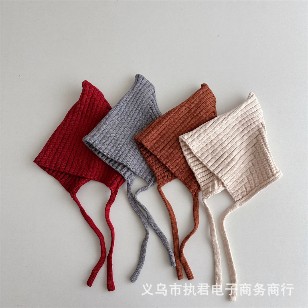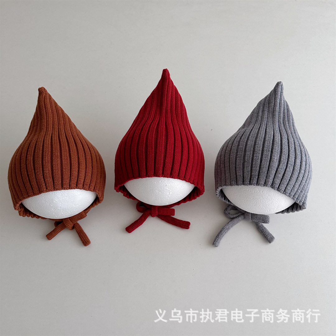 아기와 어린 아이들의 니트 바오터우 모자 가을과 겨울 아기의 양모 뾰족한 넥타이 업 귀 보호 모자 작은 달 나이 외국식 모자