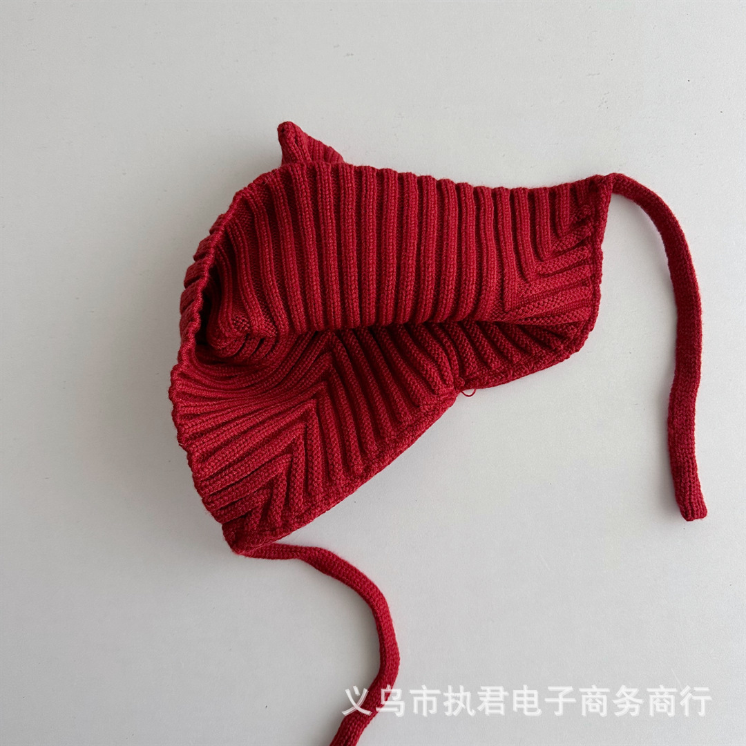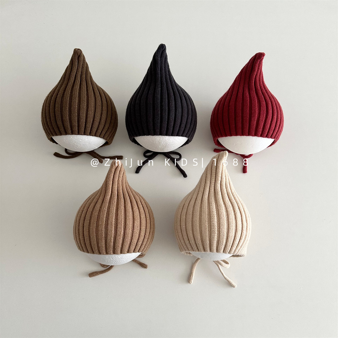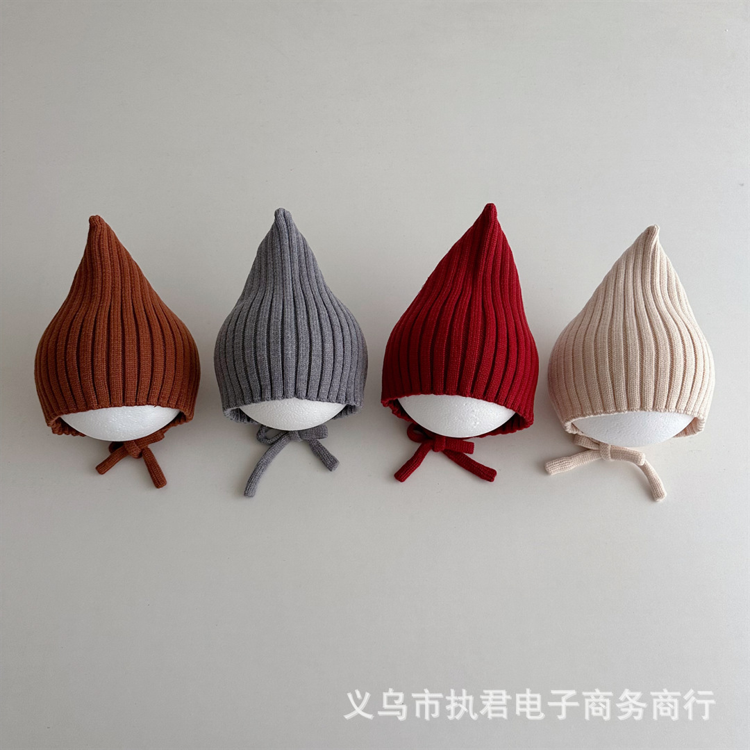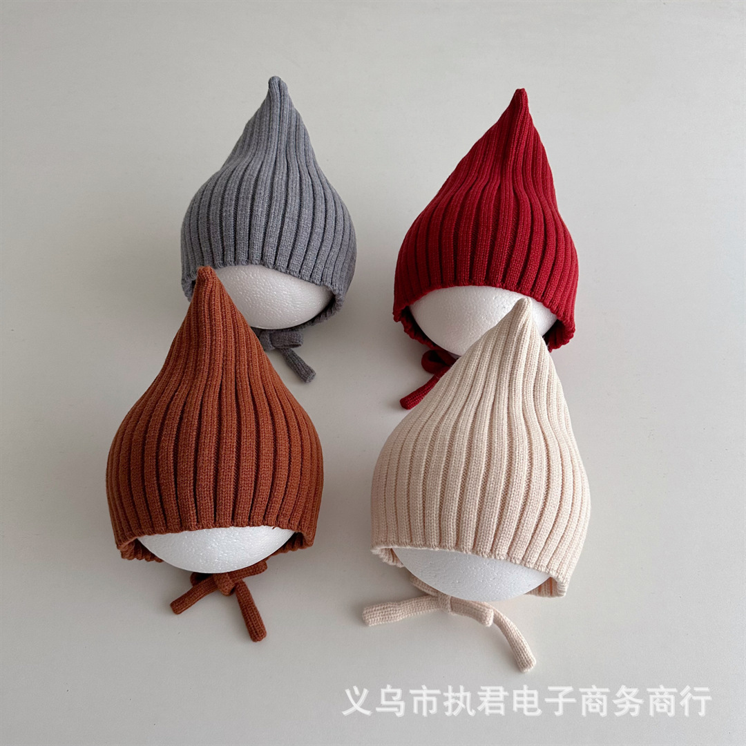 아기와 어린 아이들의 니트 바오터우 모자 가을과 겨울 아기의 양모 뾰족한 넥타이 업 귀 보호 모자 작은 달 나이 외국식 모자