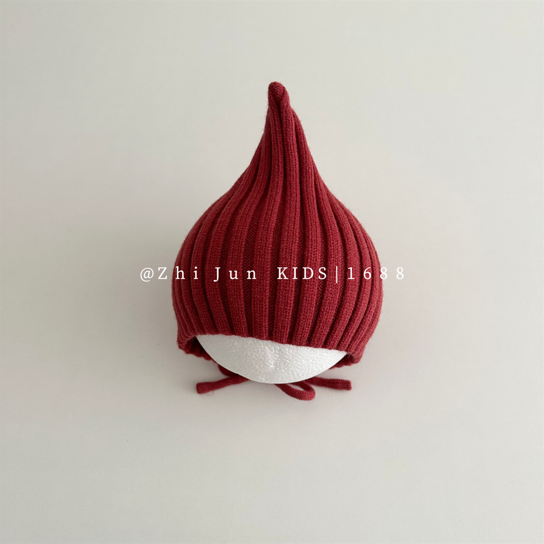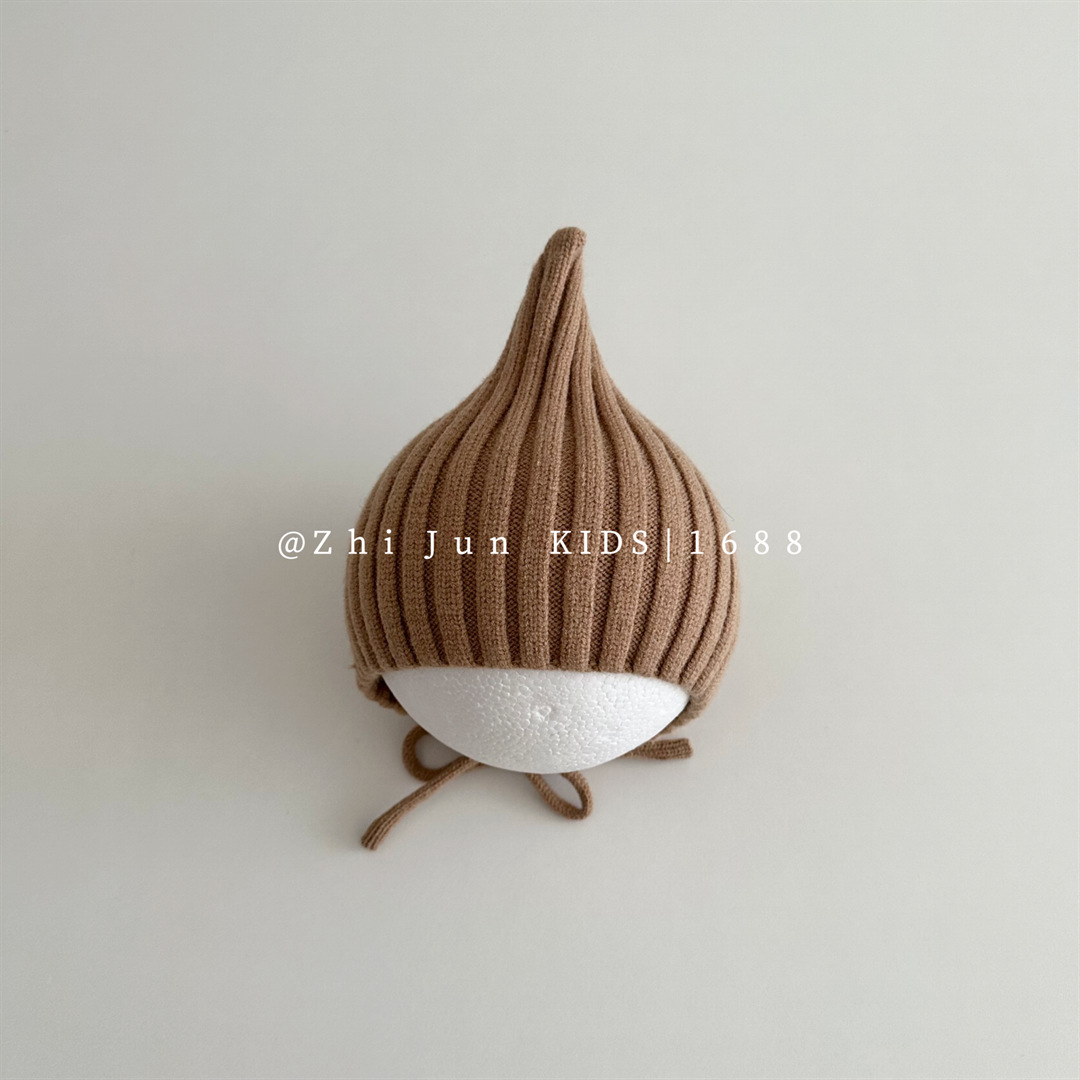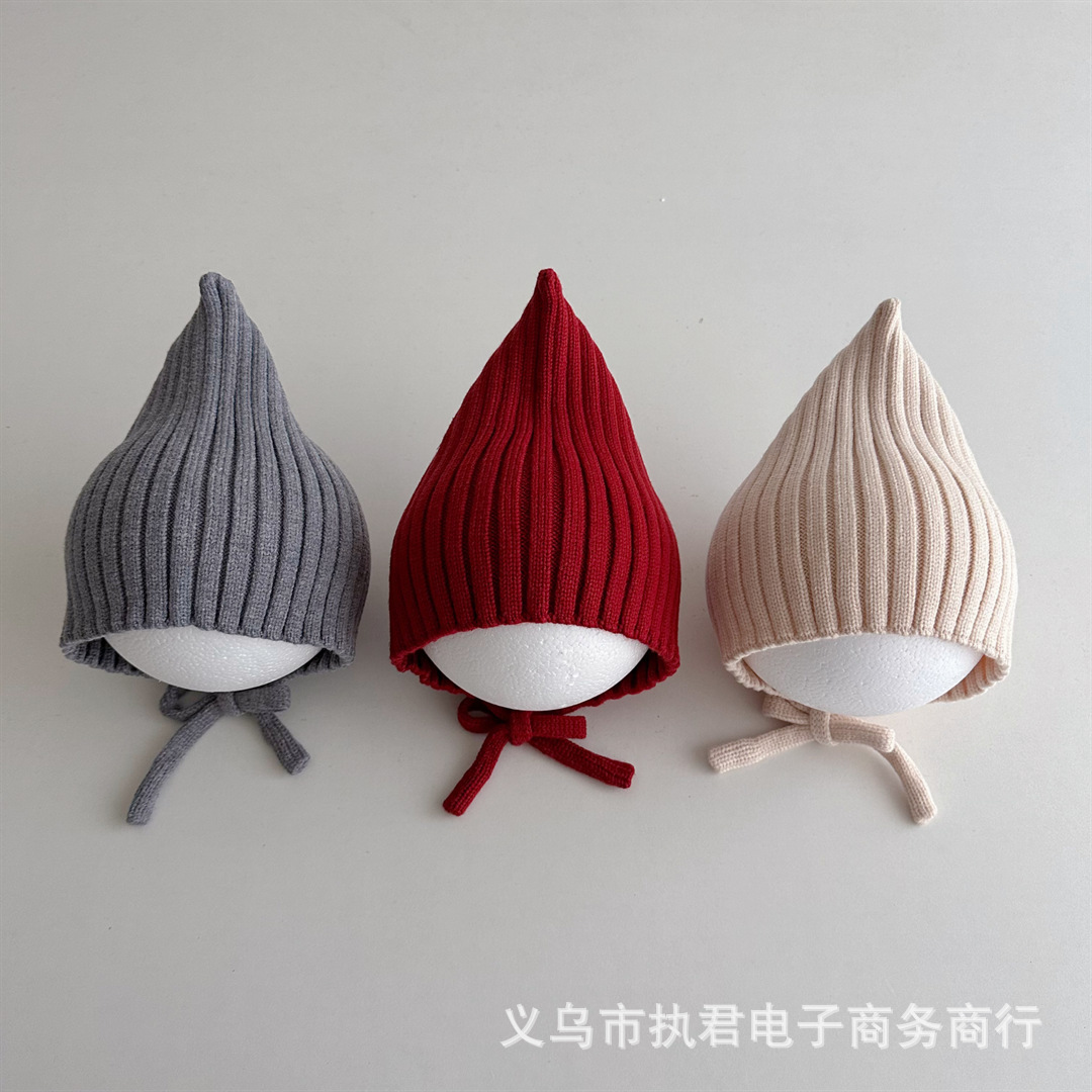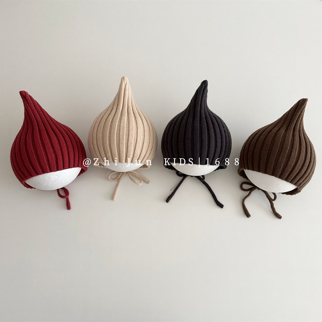 아기와 어린 아이들의 니트 바오터우 모자 가을과 겨울 아기의 양모 뾰족한 넥타이 업 귀 보호 모자 작은 달 나이 외국식 모자