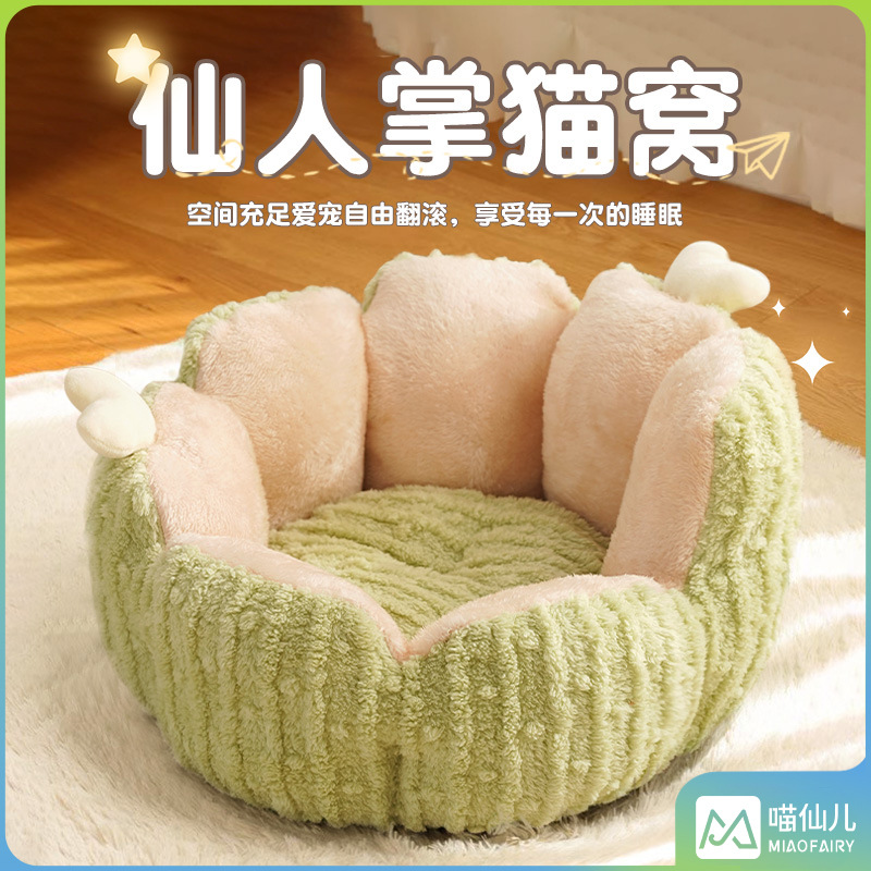 야옹 요정 고양이 둥지 겨울 따뜻한 반 폐쇄 새끼 고양이 집 둥지 매트 빨 수있는 고양이 침대 강아지 사육장스토어 가기