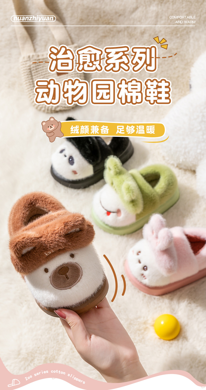 Qidan 신발 공장 소년과 소녀를위한 겨울 어린이 면 슬리퍼 집 따뜻한 귀여운 만화 큰 어린이 봉제 면화 겨울스토어 가기