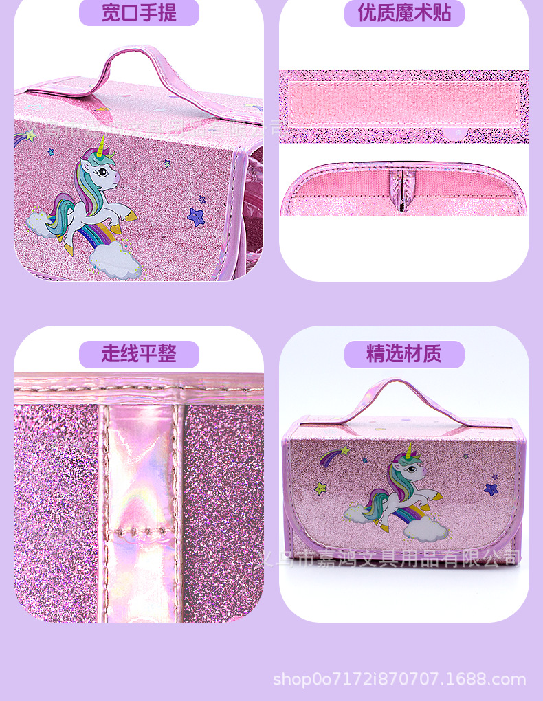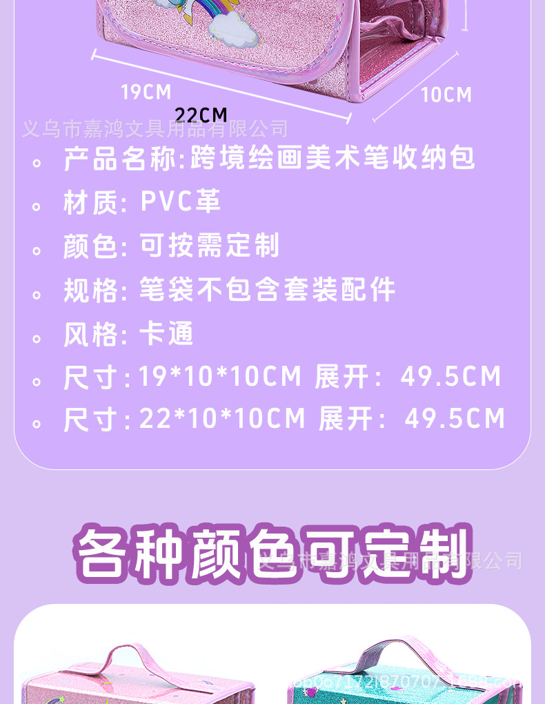 定制儿童PU大容量可便携四合一可折叠水彩笔袋独角兽亚马逊美人鱼