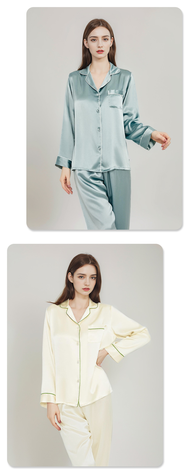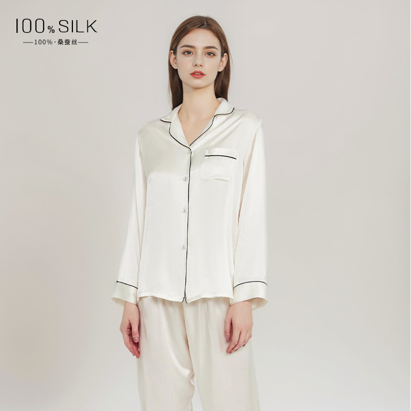 2026 봄 여름 신상 여성용 실크 잠옷, 긴팔 긴바지, 100% 뽕나무 실크, 고급 홈웨어 세트스토어 가기