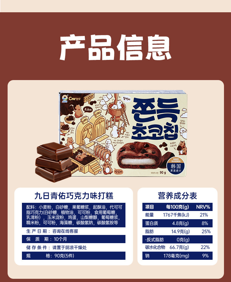 한국 수입 칭유 초콜릿 케이크 90g 9 일 녹색 오른쪽 감자 부드러운 찹쌀 샌드위치 쿠키 초콜릿 케이크스토어 가기