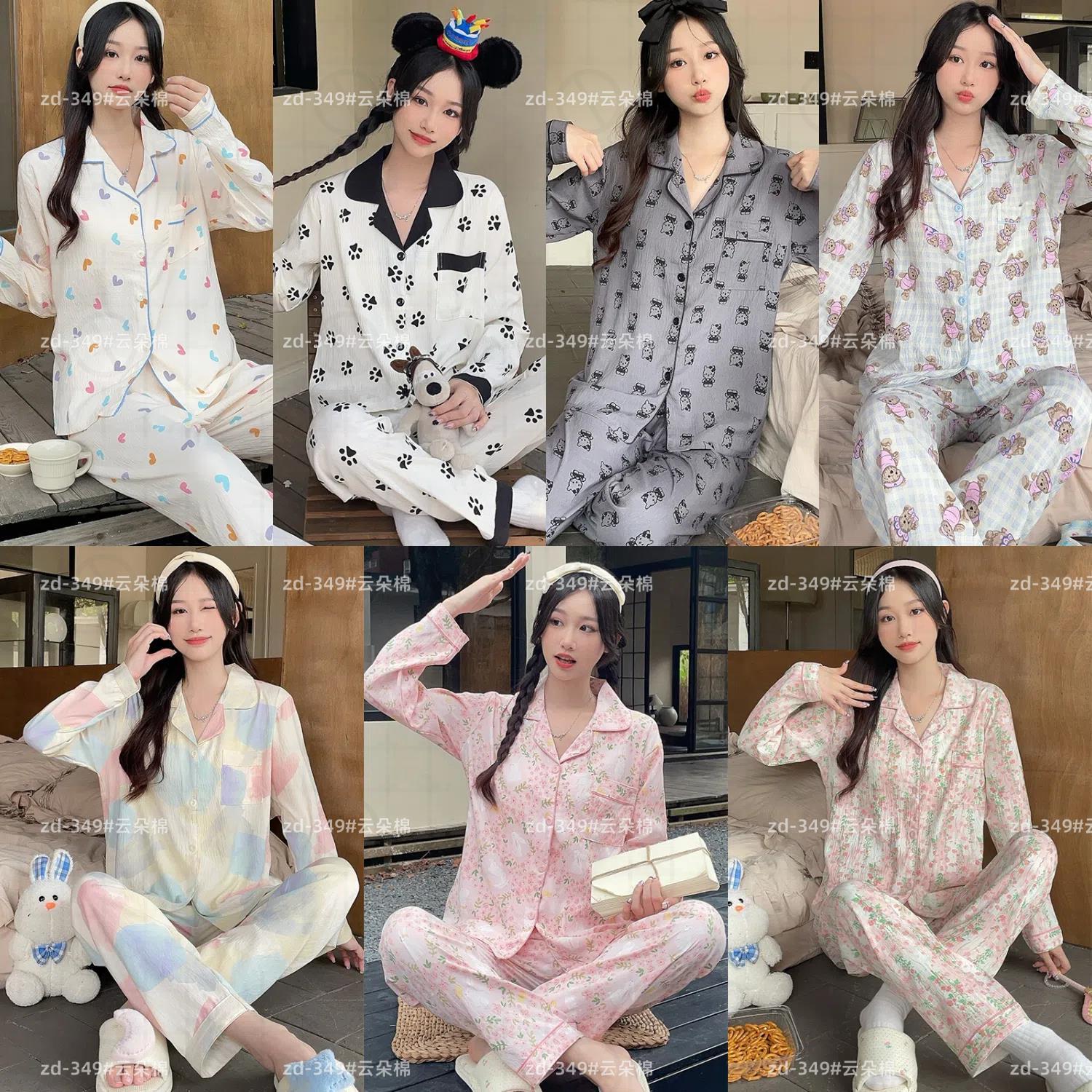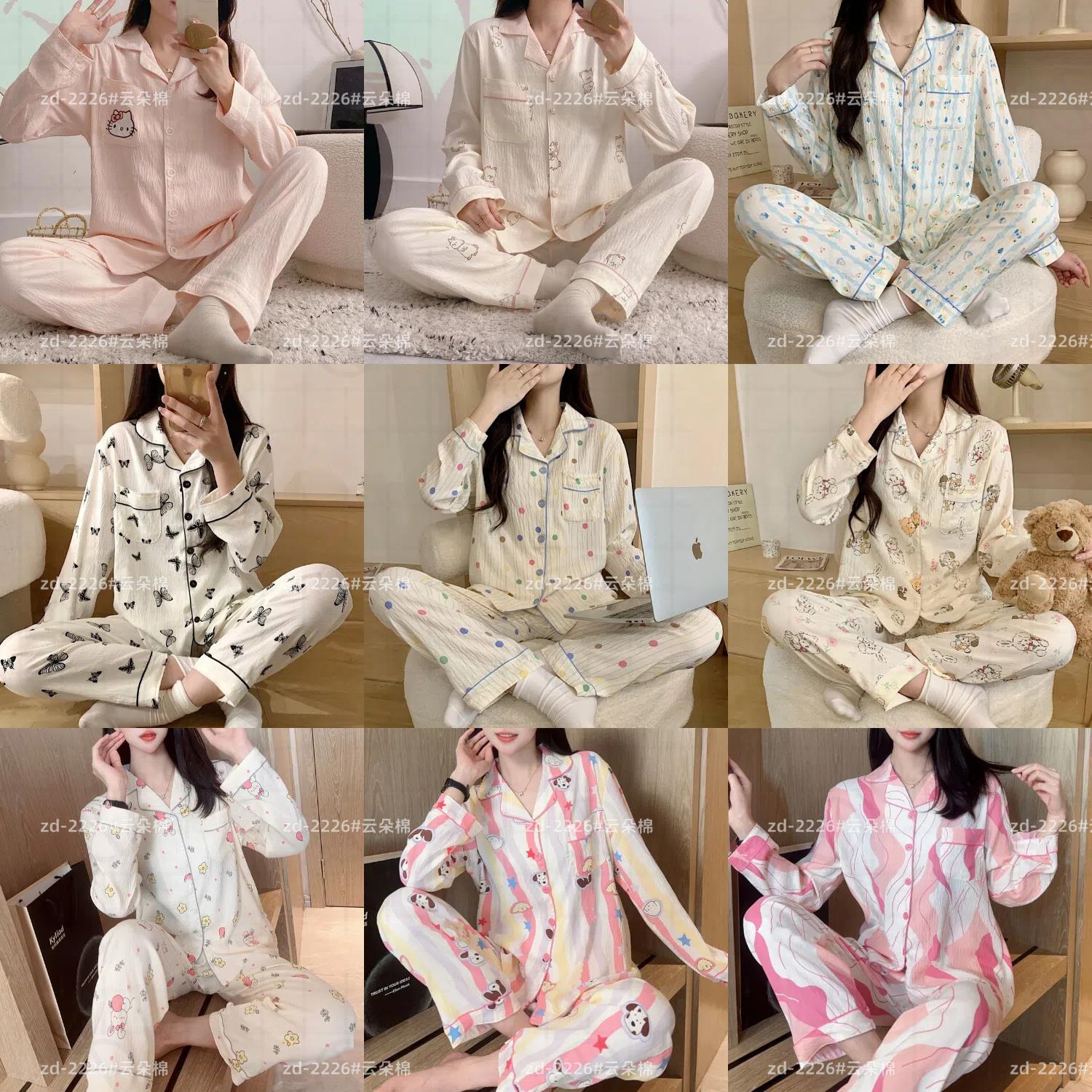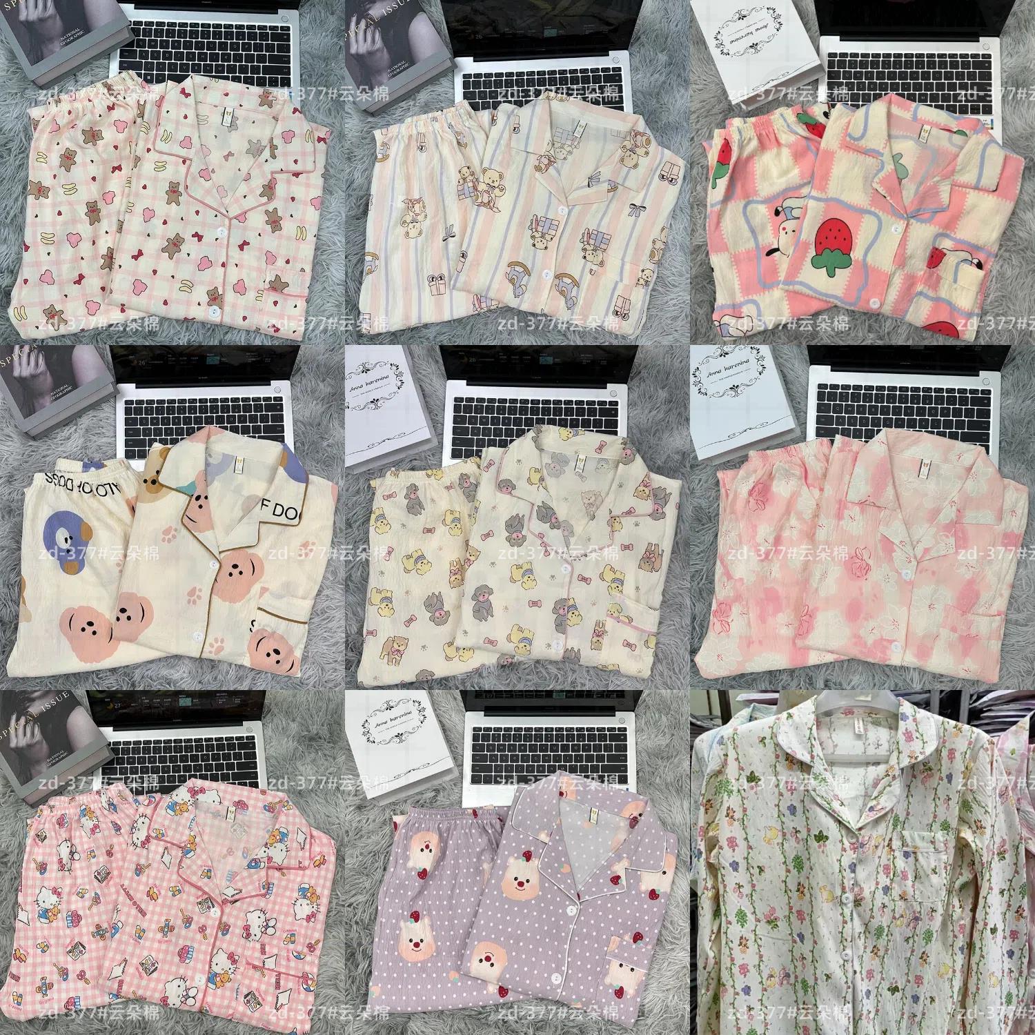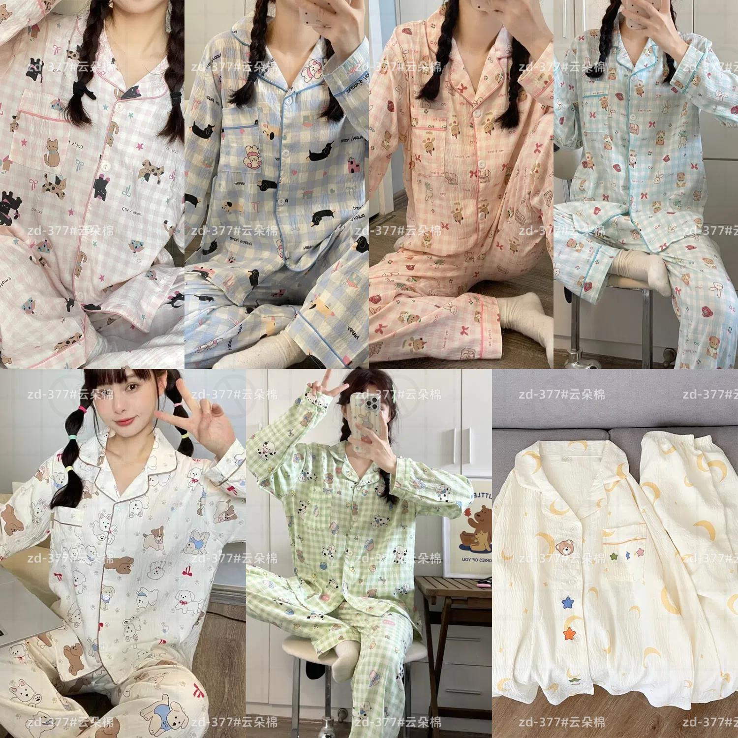 소스 공장 봄과 가을 긴 소매 파자마 여성 구름 코튼 주름 천 달콤한 공주 스타일 일본 스타일 작은 신선한 집