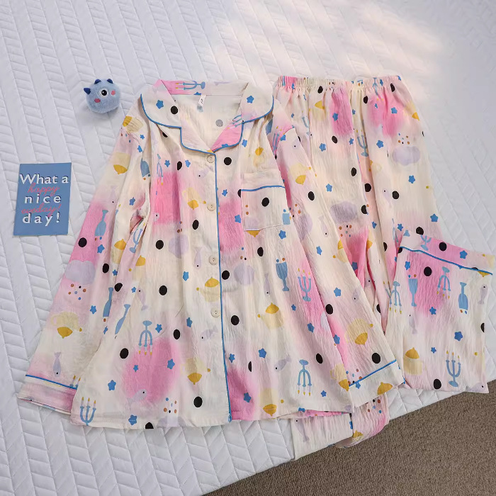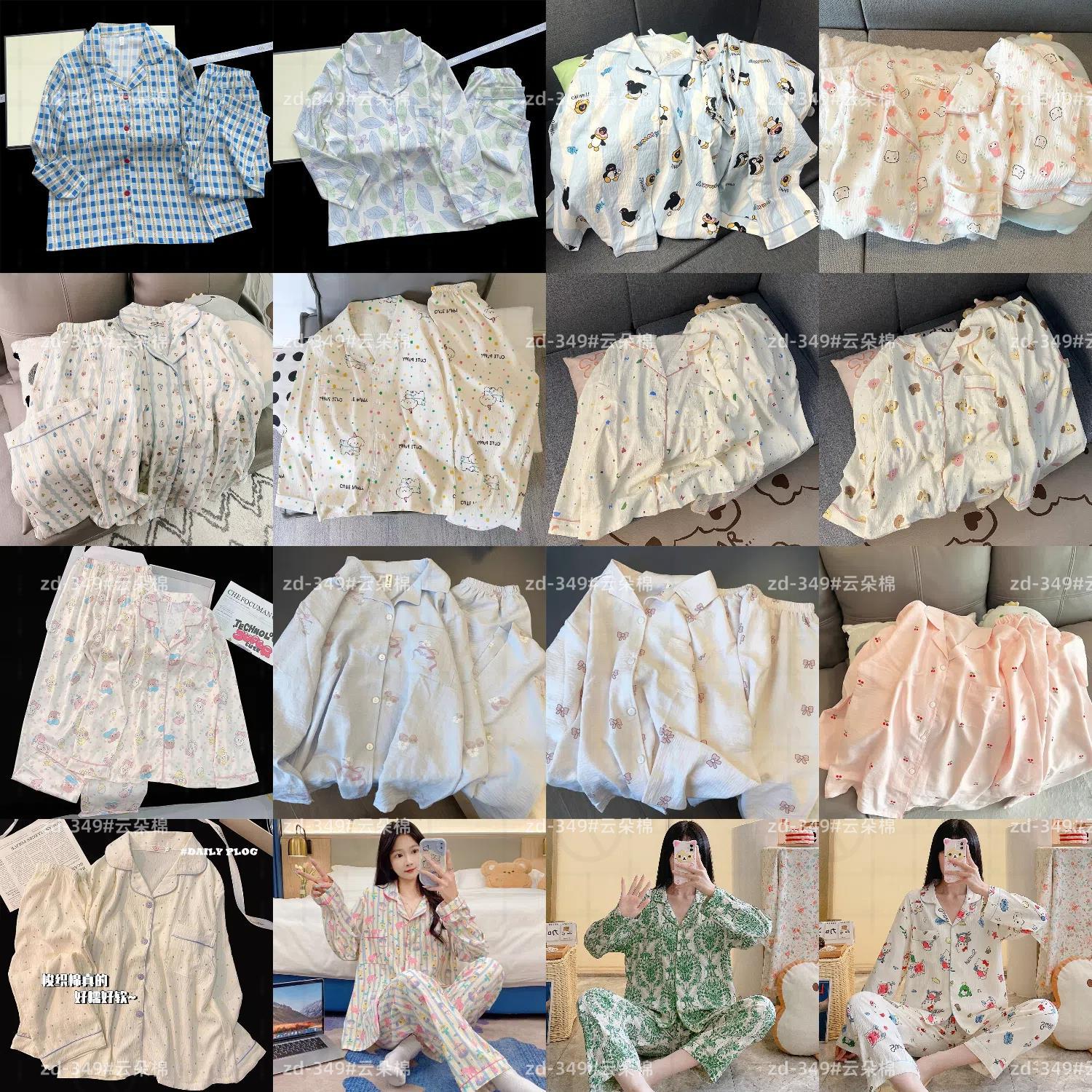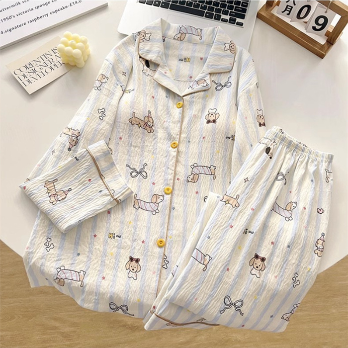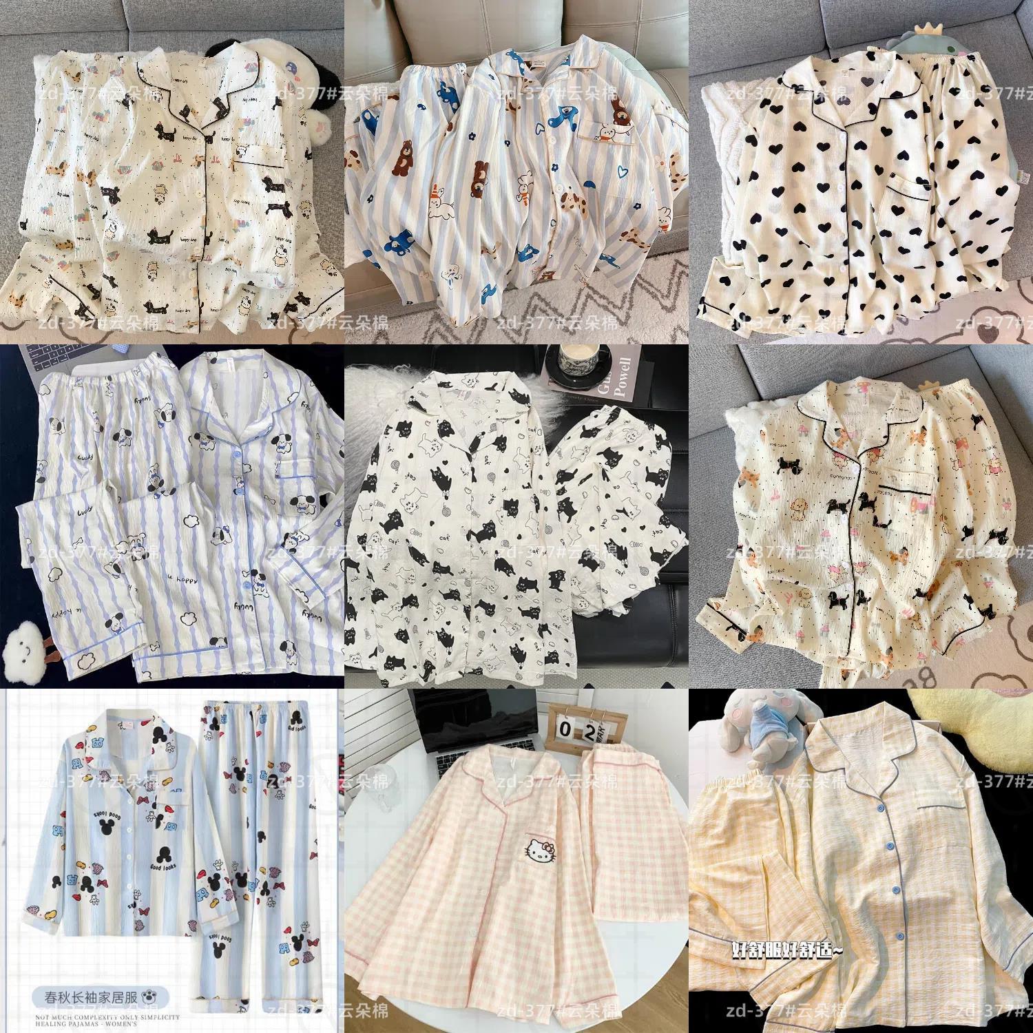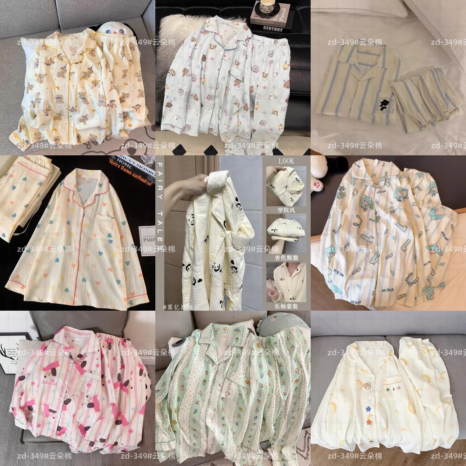 소스 공장 봄과 가을 긴 소매 파자마 여성 구름 코튼 주름 천 달콤한 공주 스타일 일본 스타일 작은 신선한 집