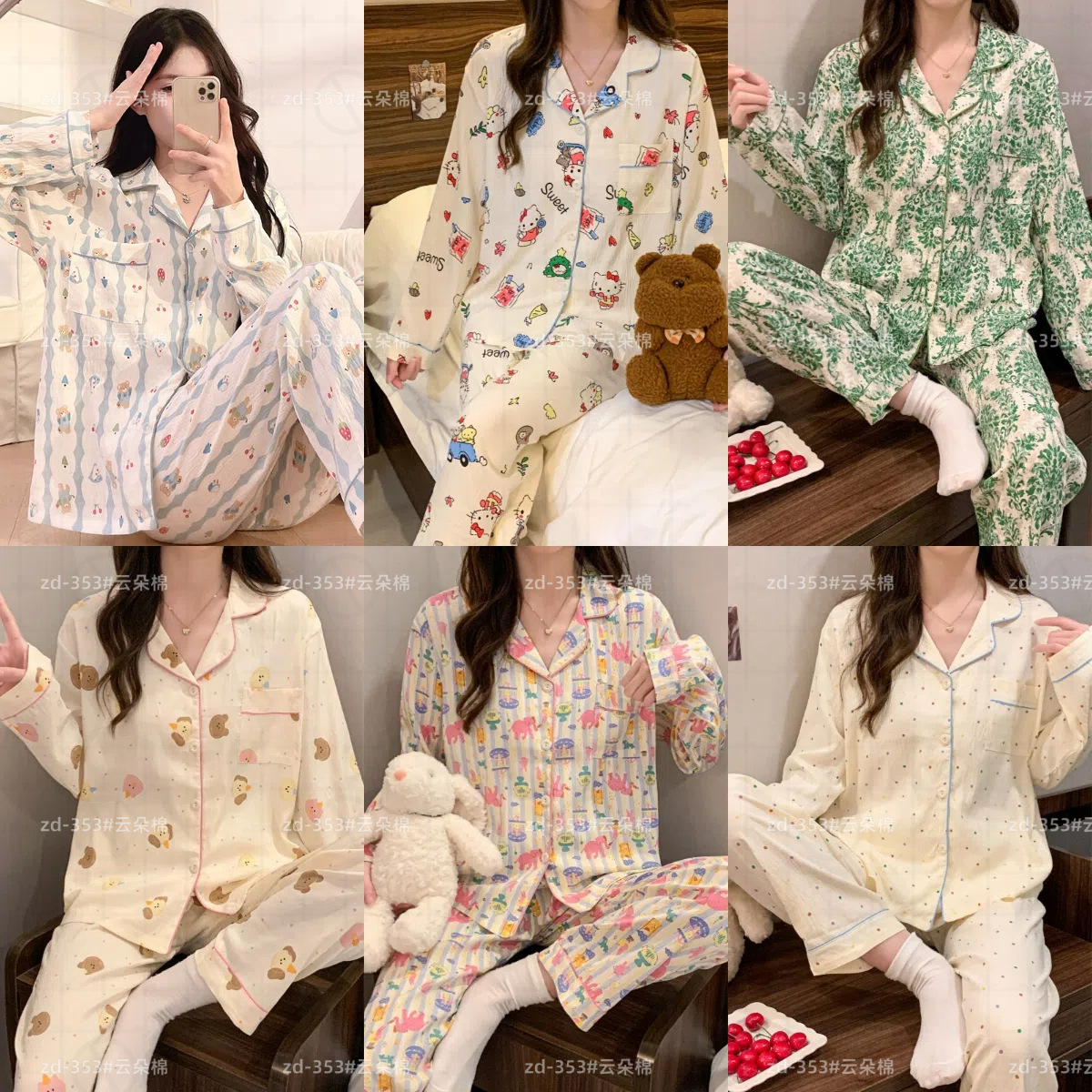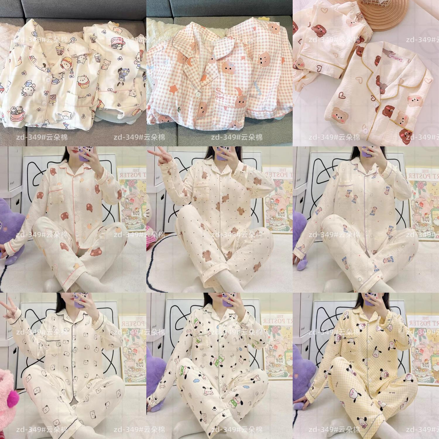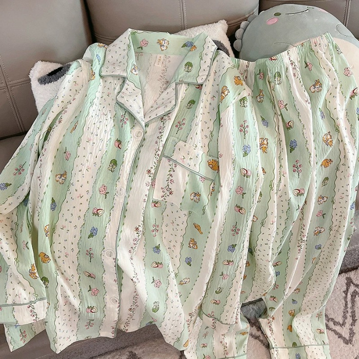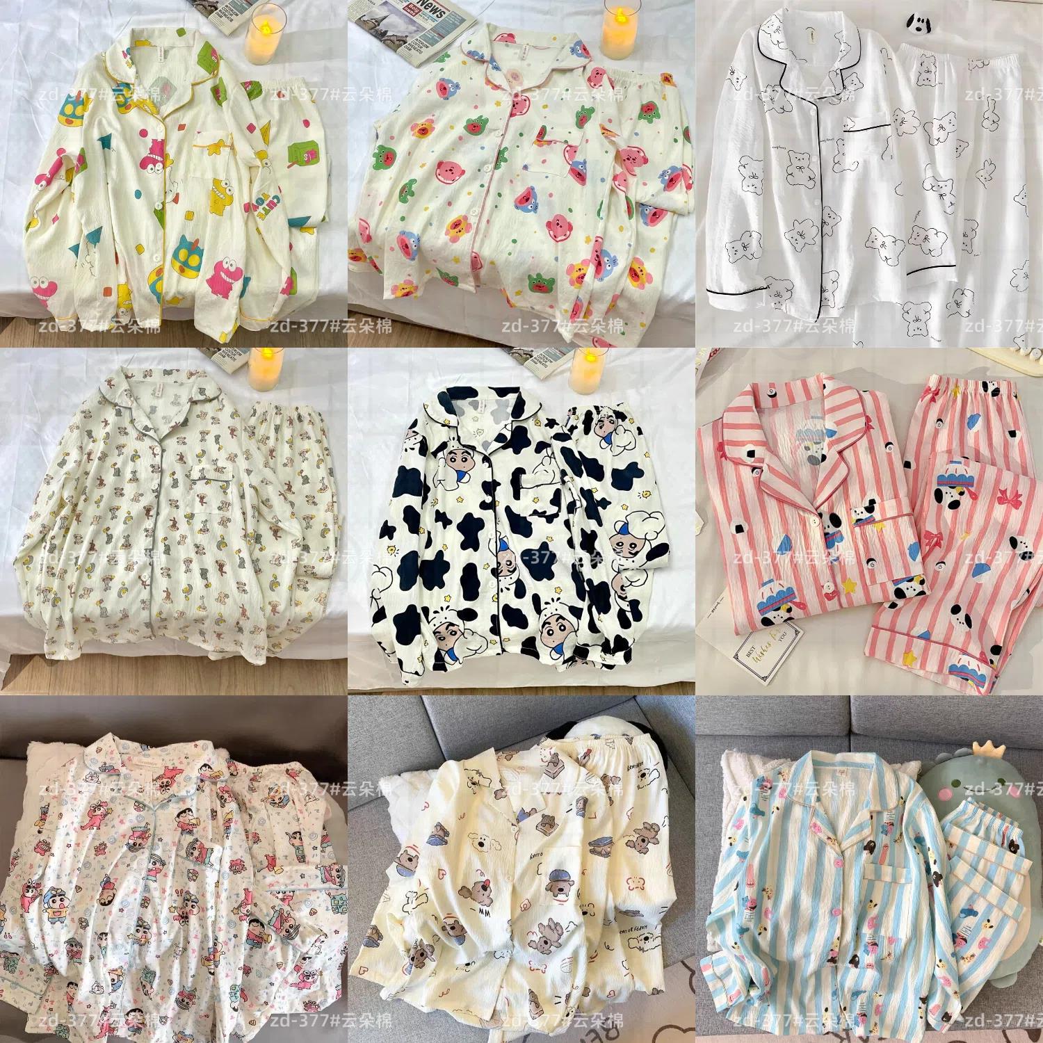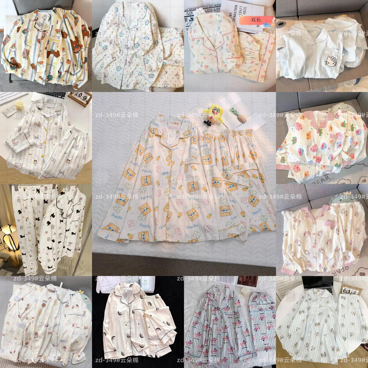 소스 공장 봄과 가을 긴 소매 파자마 여성 구름 코튼 주름 천 달콤한 공주 스타일 일본 스타일 작은 신선한 집