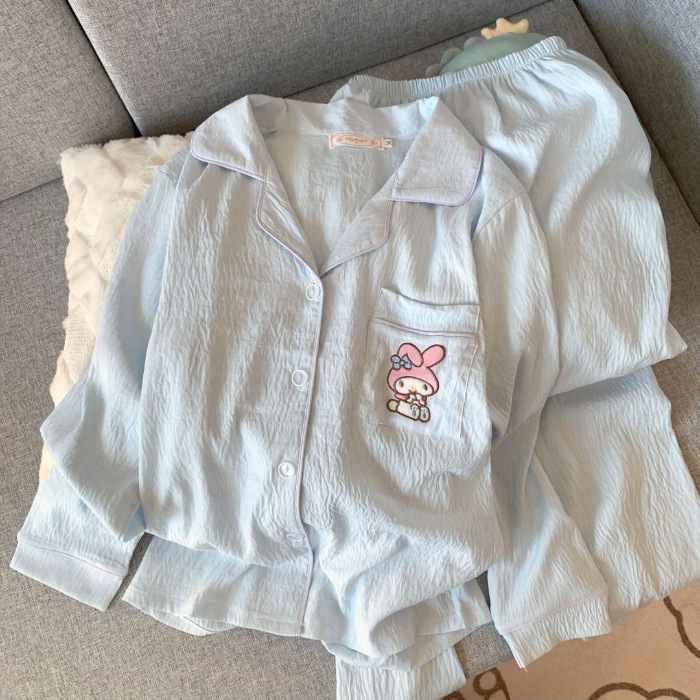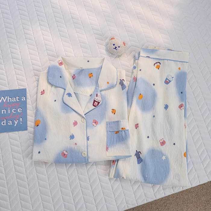 소스 공장 봄과 가을 긴 소매 파자마 여성 구름 코튼 주름 천 달콤한 공주 스타일 일본 스타일 작은 신선한 집스토어 가기