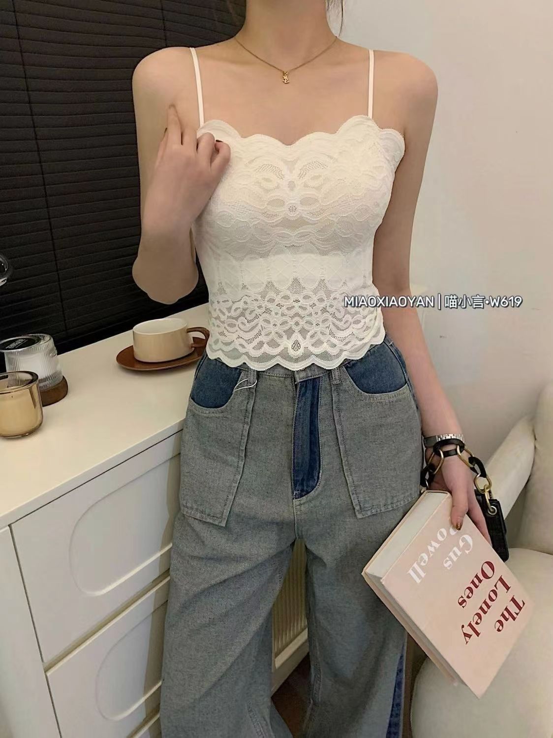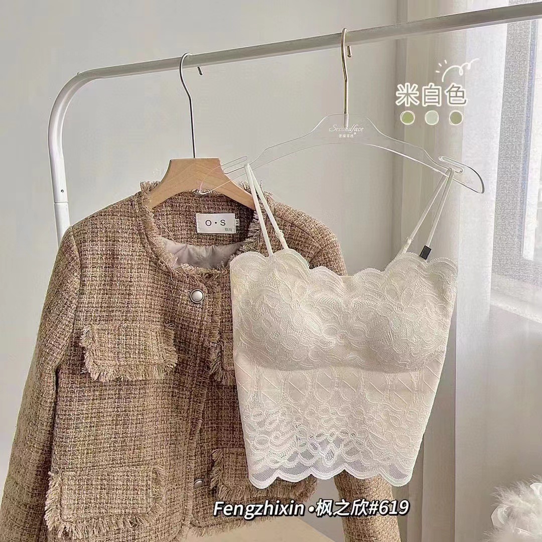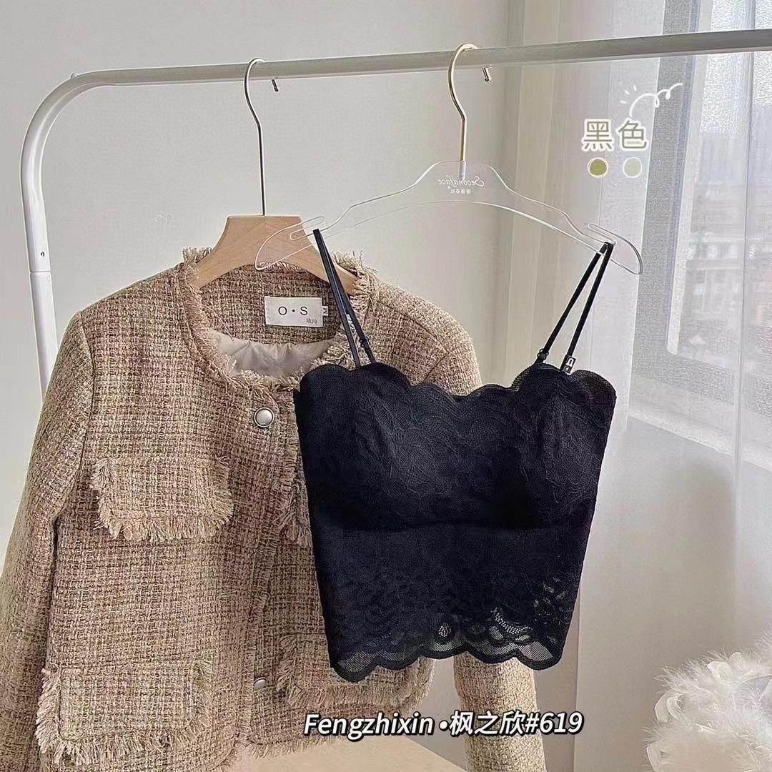 섹시한 레이스 아름다운 백 스트랩 얇은 어깨 스트랩 웨이브 에지 레이스 플라워 보더 워킹 라이트 튜브 탑 가슴 패드 내부 조끼스토어 가기