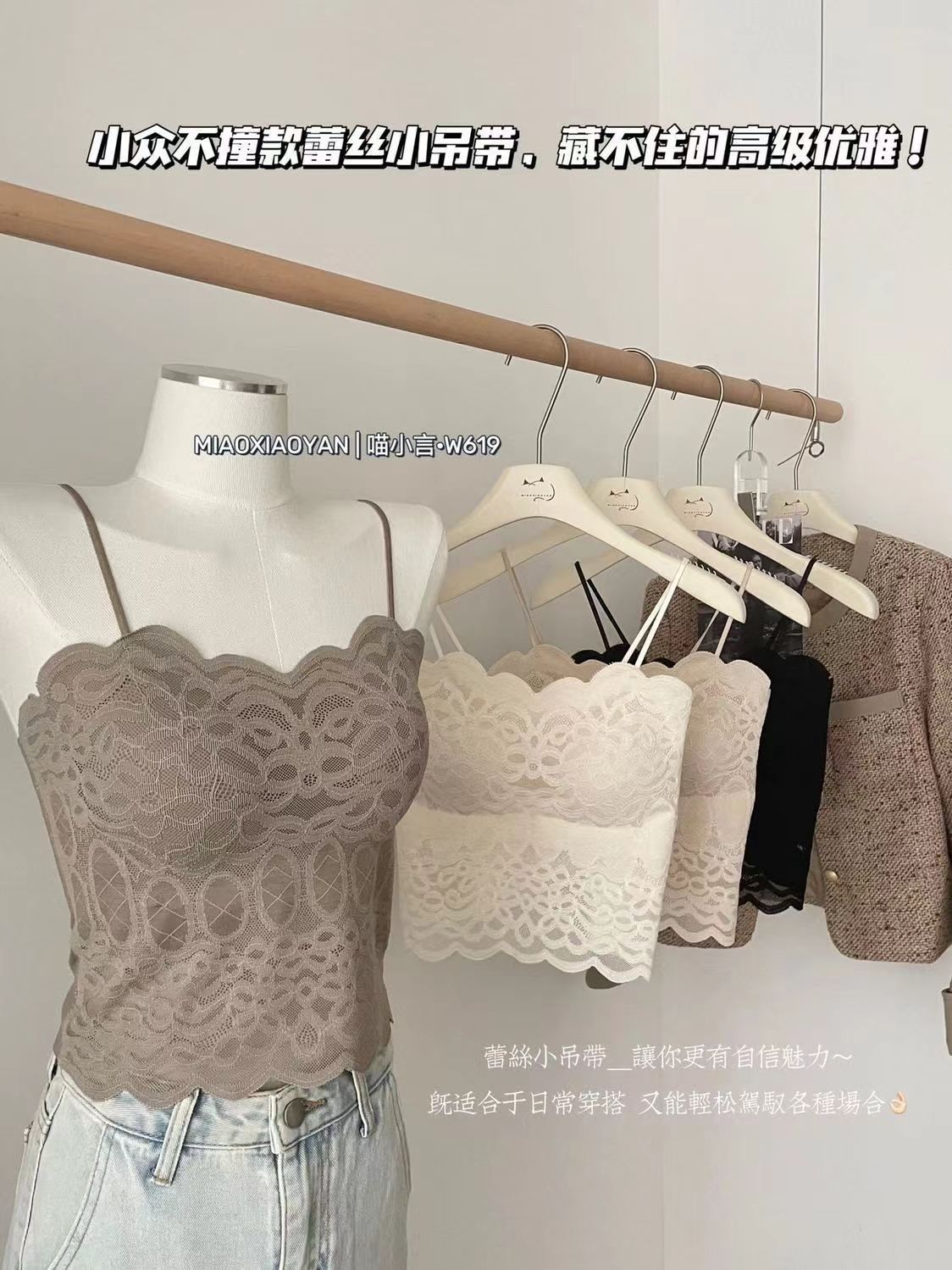 섹시한 레이스 아름다운 백 스트랩 얇은 어깨 스트랩 웨이브 에지 레이스 플라워 보더 워킹 라이트 튜브 탑 가슴 패드 내부 조끼