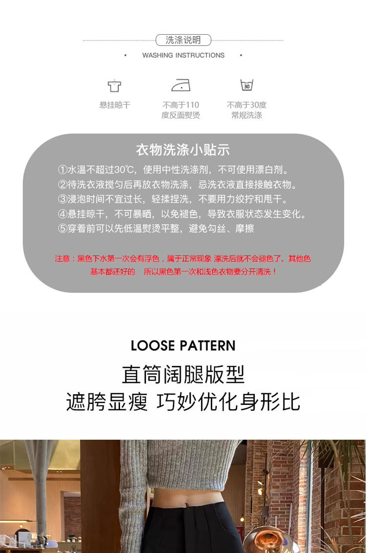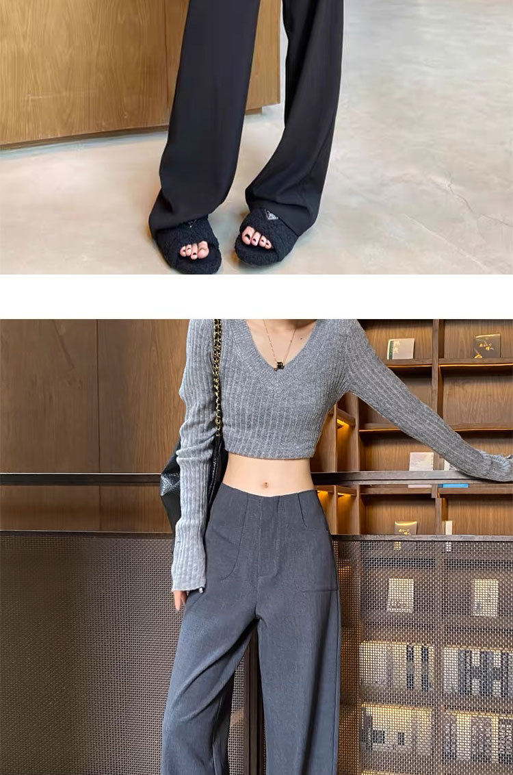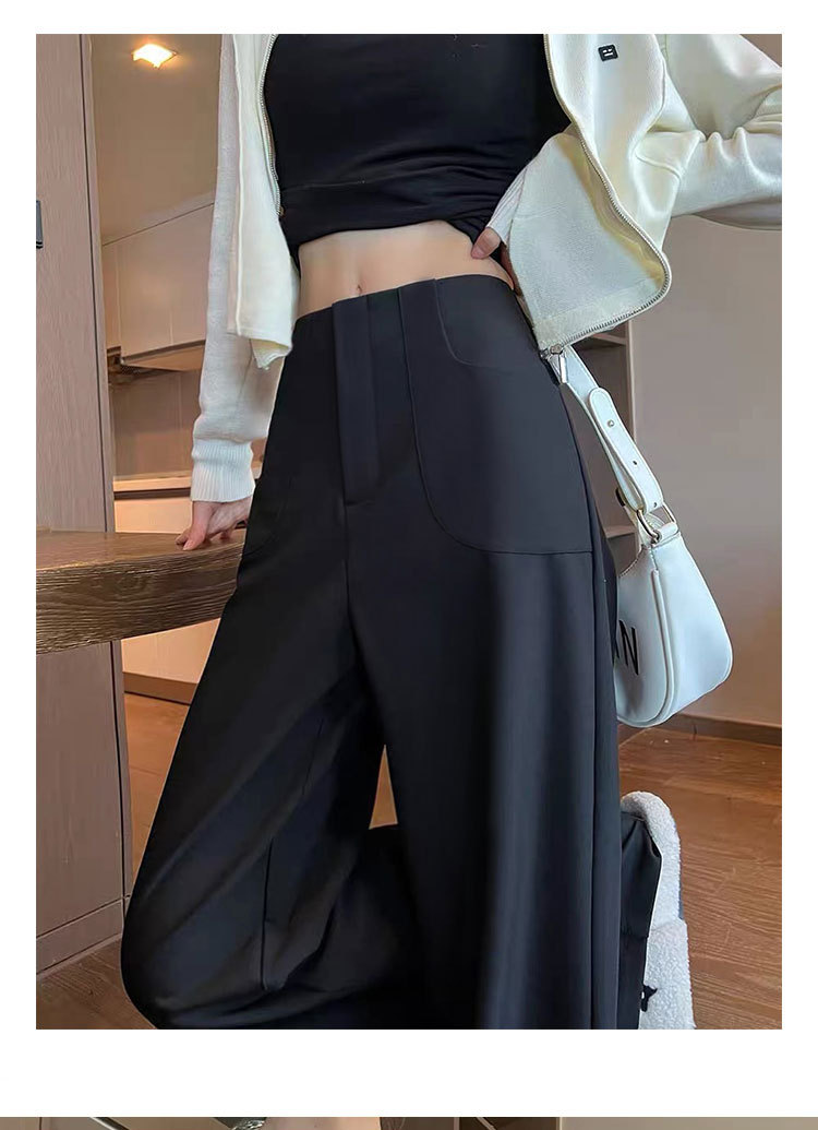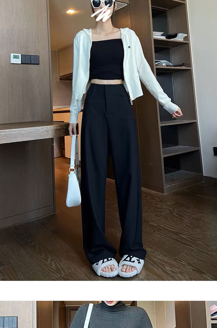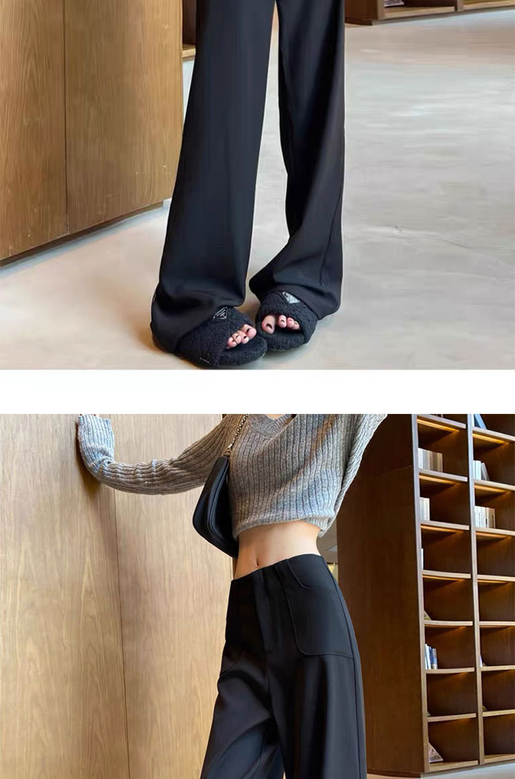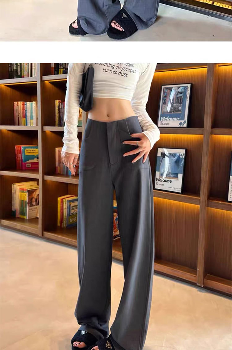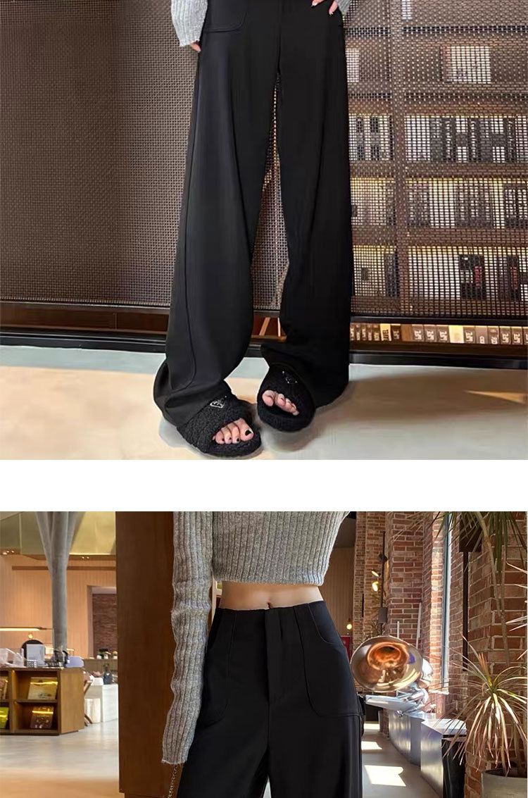 검은 색과 회색 넓은 다리 바지 여성의 봄과 가을 높은 허리 Daggy 세트 바지 캐주얼 스트레이트 게으른 휴식 바지스토어 가기