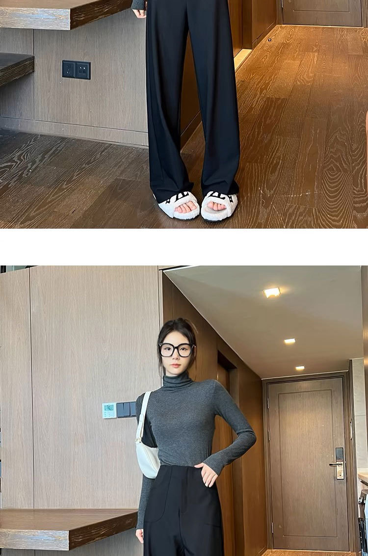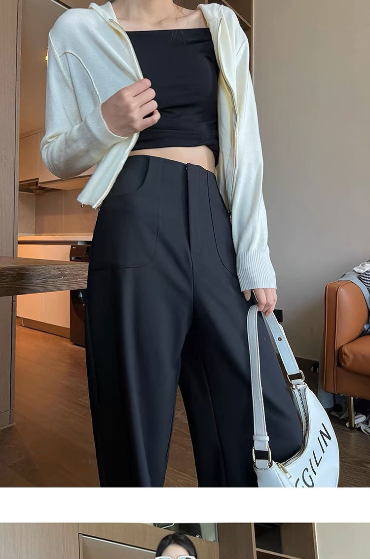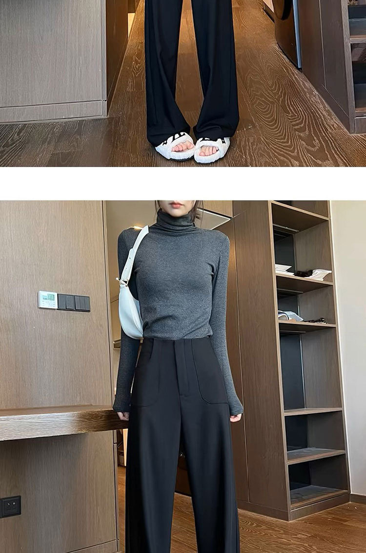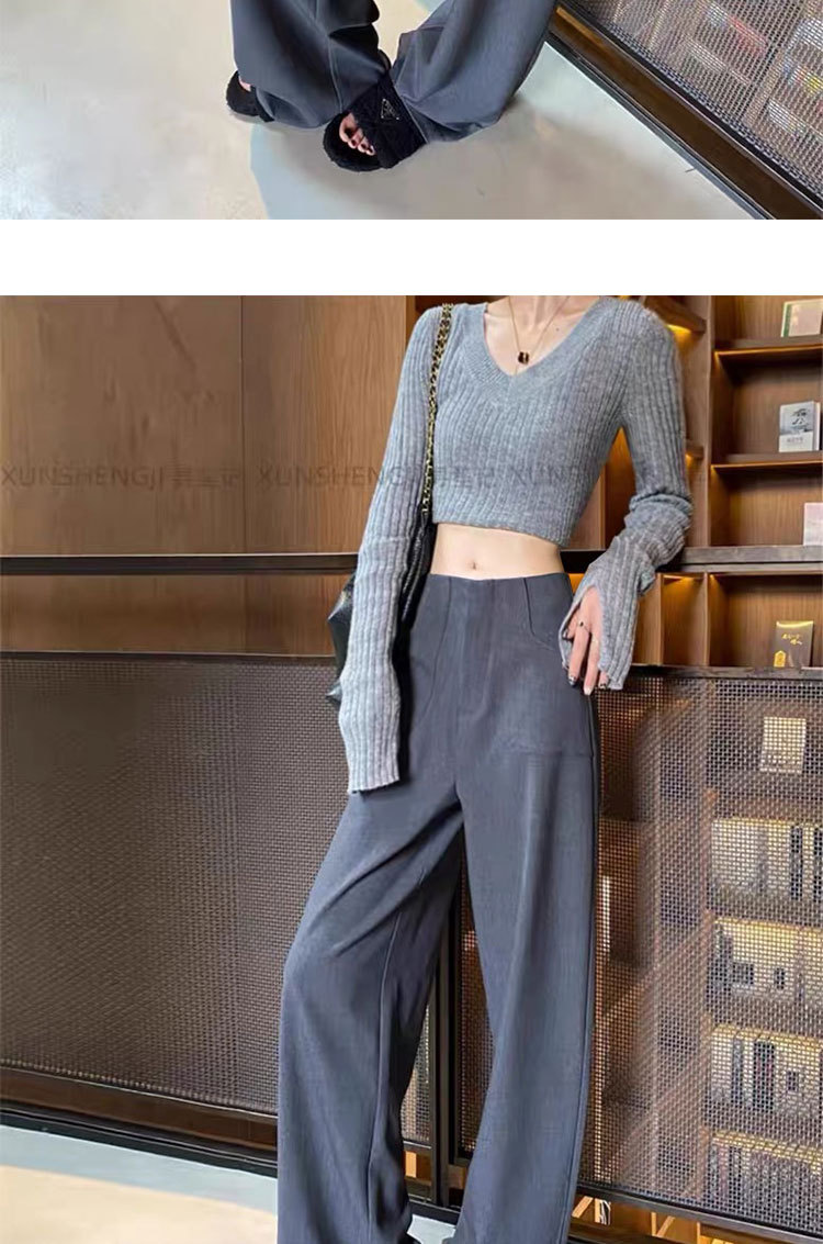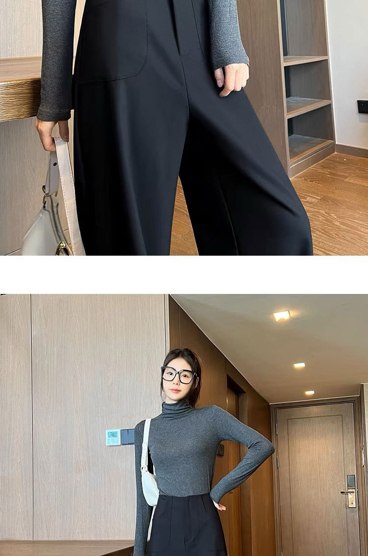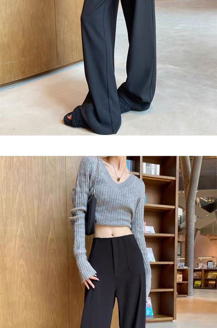 검은 색과 회색 넓은 다리 바지 여성의 봄과 가을 높은 허리 Daggy 세트 바지 캐주얼 스트레이트 게으른 휴식 바지스토어 가기