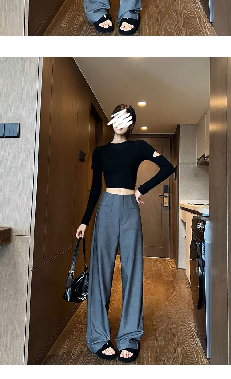 검은 색과 회색 넓은 다리 바지 여성의 봄과 가을 높은 허리 Daggy 세트 바지 캐주얼 스트레이트 게으른 휴식 바지