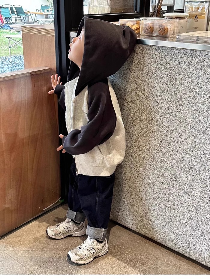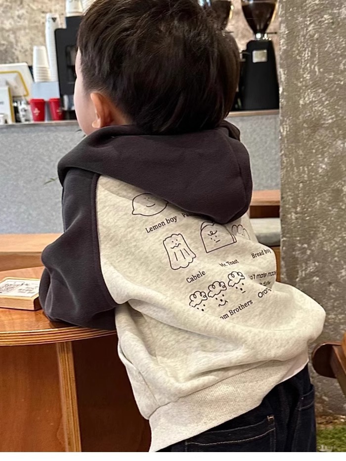 남아 코트 가을 2025 새로운 스타일의 멋지고 패셔너블한 대비색 아기 옷, 중대형 아동 가을 후드 스웨트셔츠스토어 가기