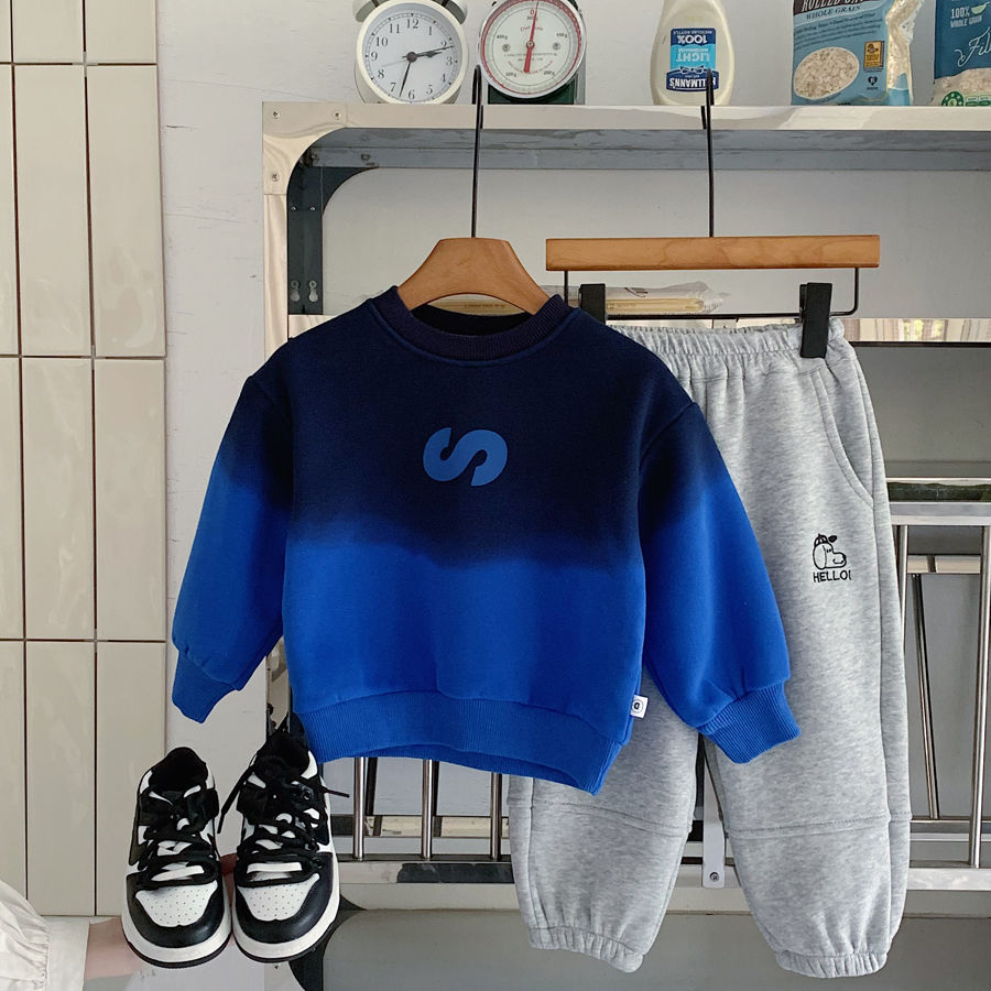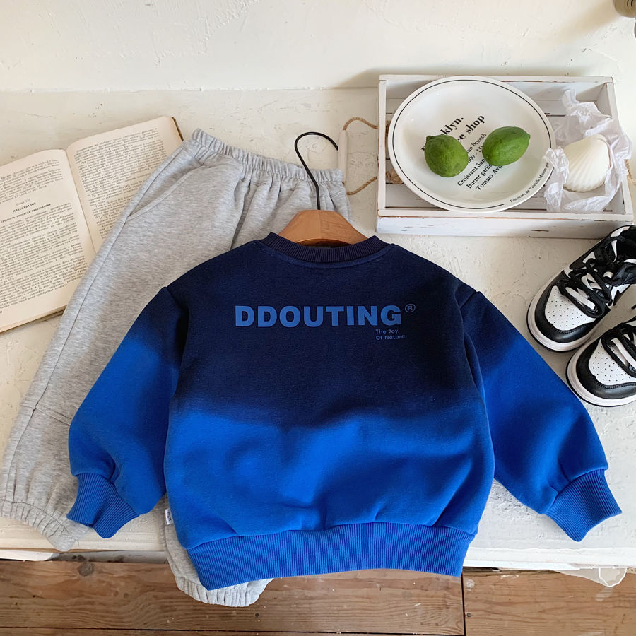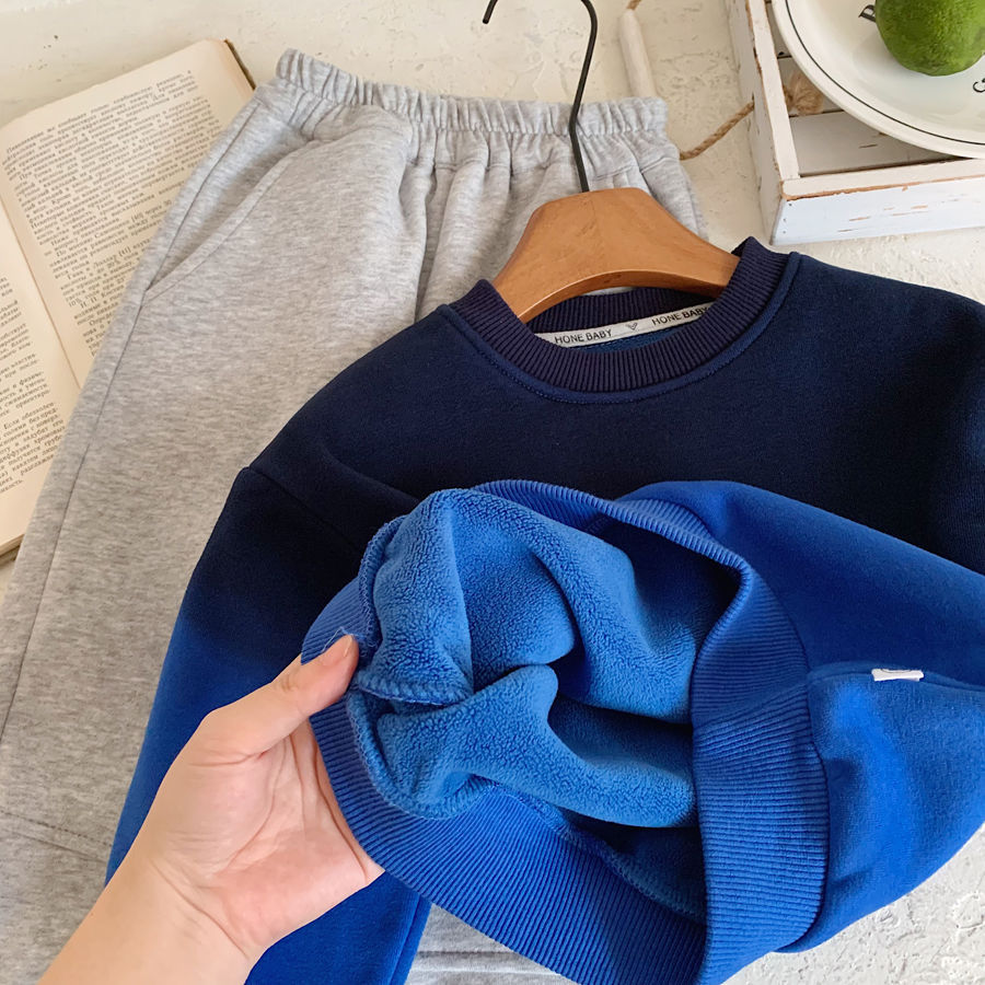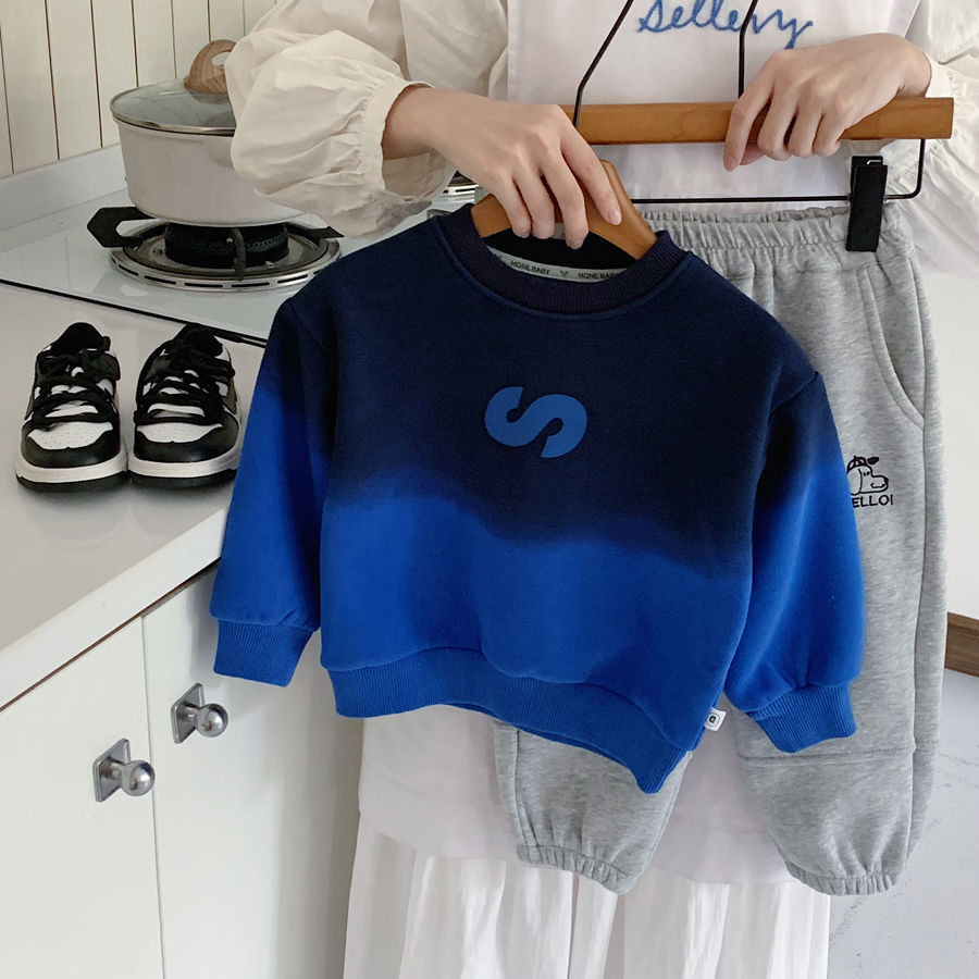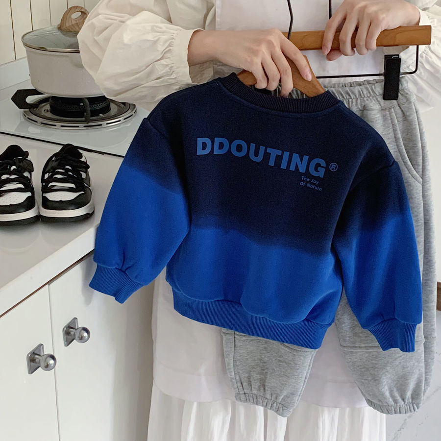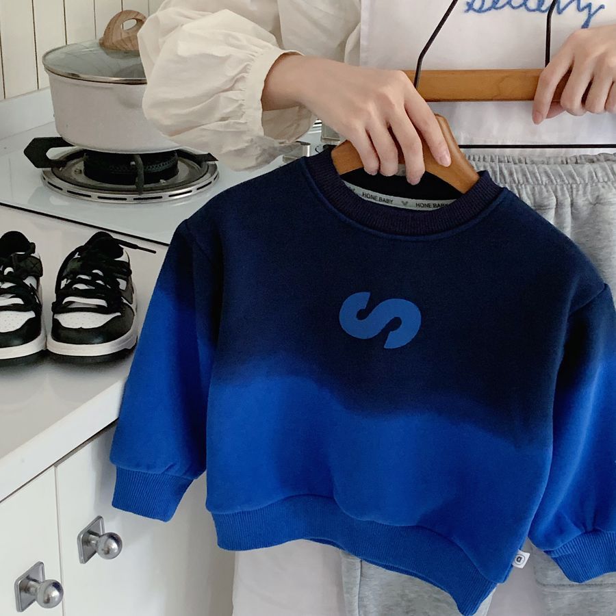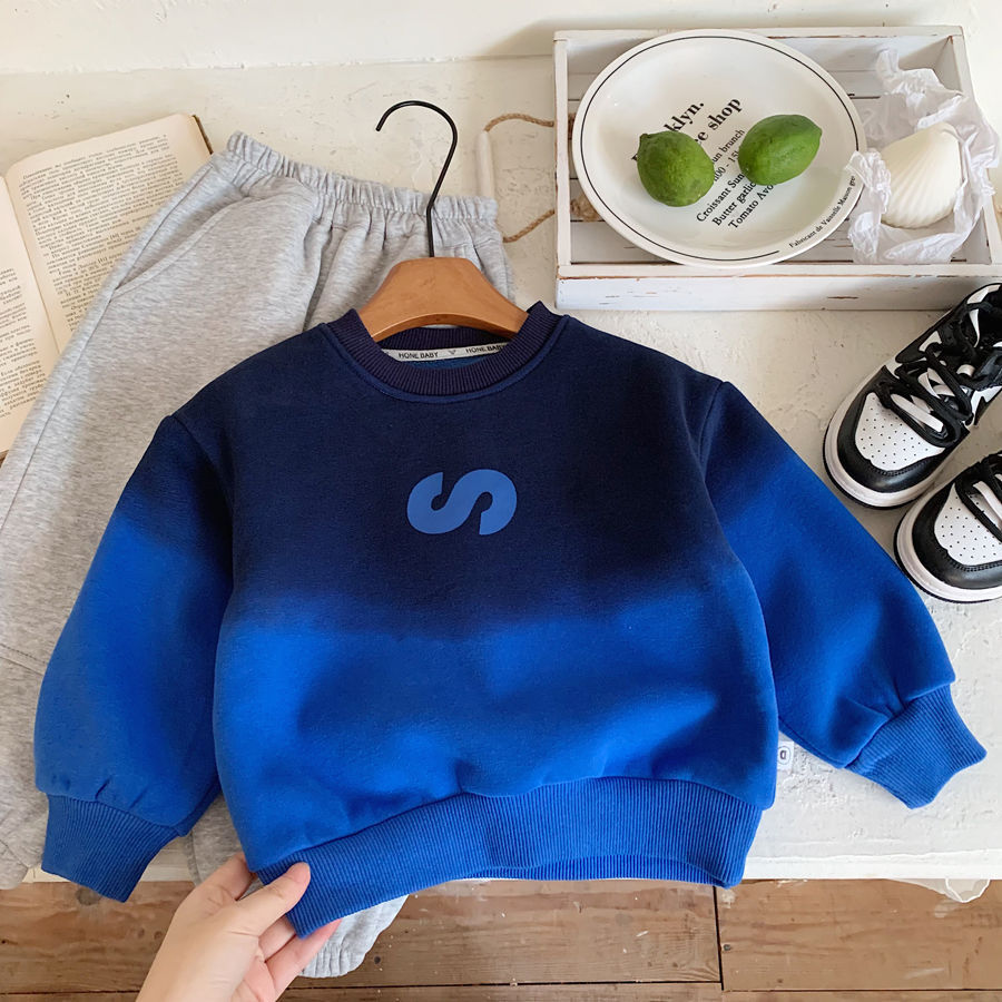 남학생 기모 스웨터 2024 겨울 새로운 점진적 색상 어린이 잘 생긴 성격 풀오버 따뜻한 탑스토어 가기