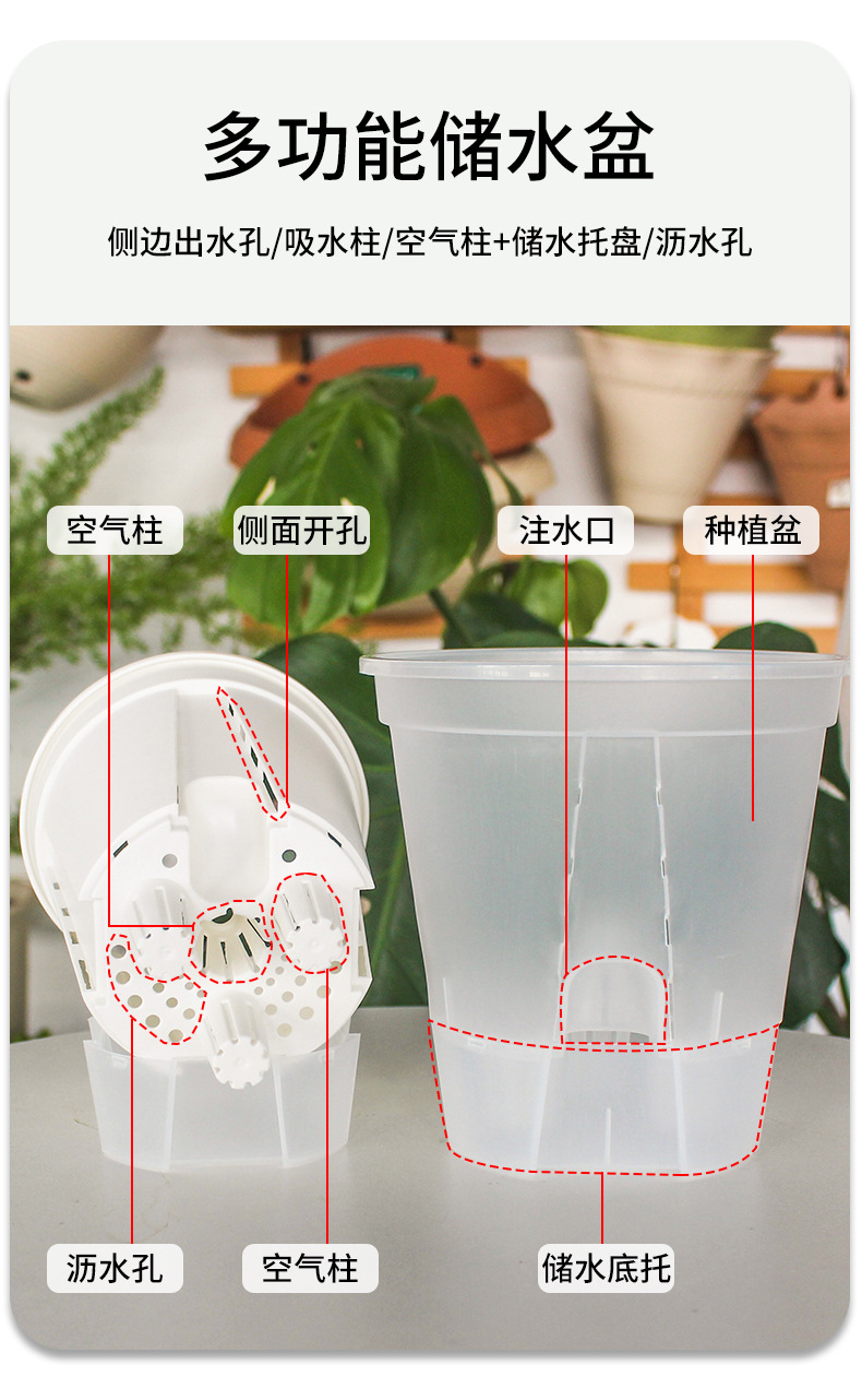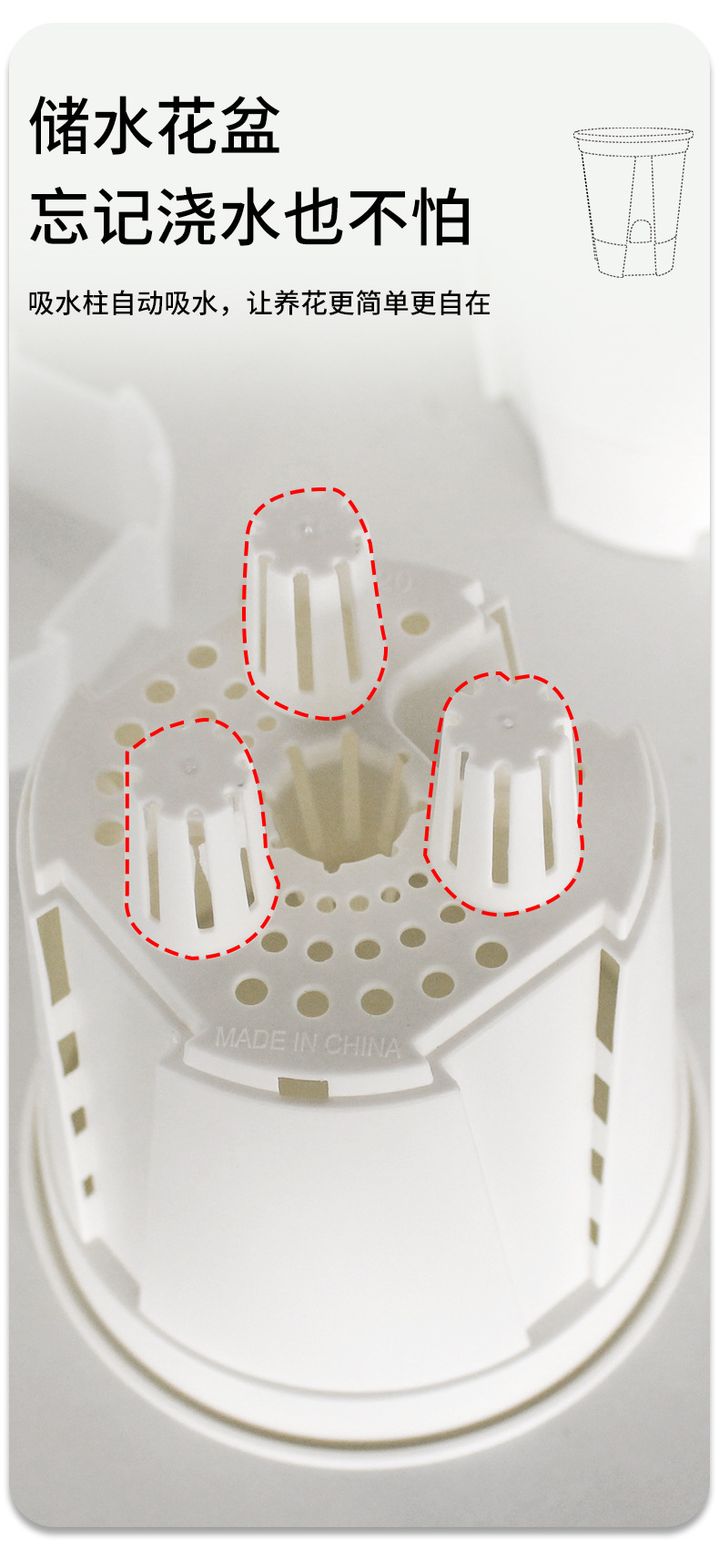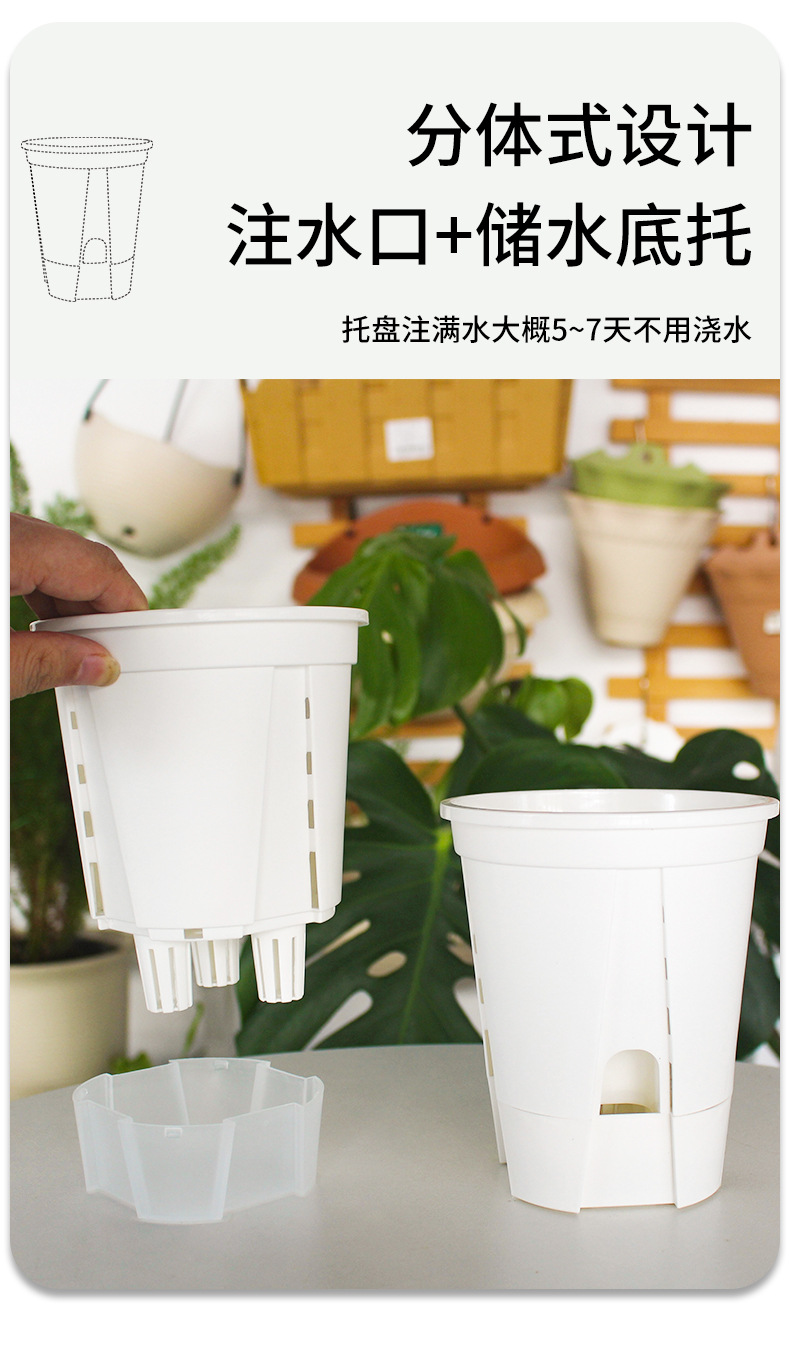 물 저장 녹색 산 분지 자체 흡수 게으른 플라스틱 두꺼운 통기성 반 수경 대형 PP 수지 흰색 뿌리 제어 꽃 냄비