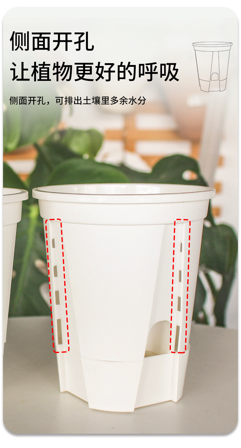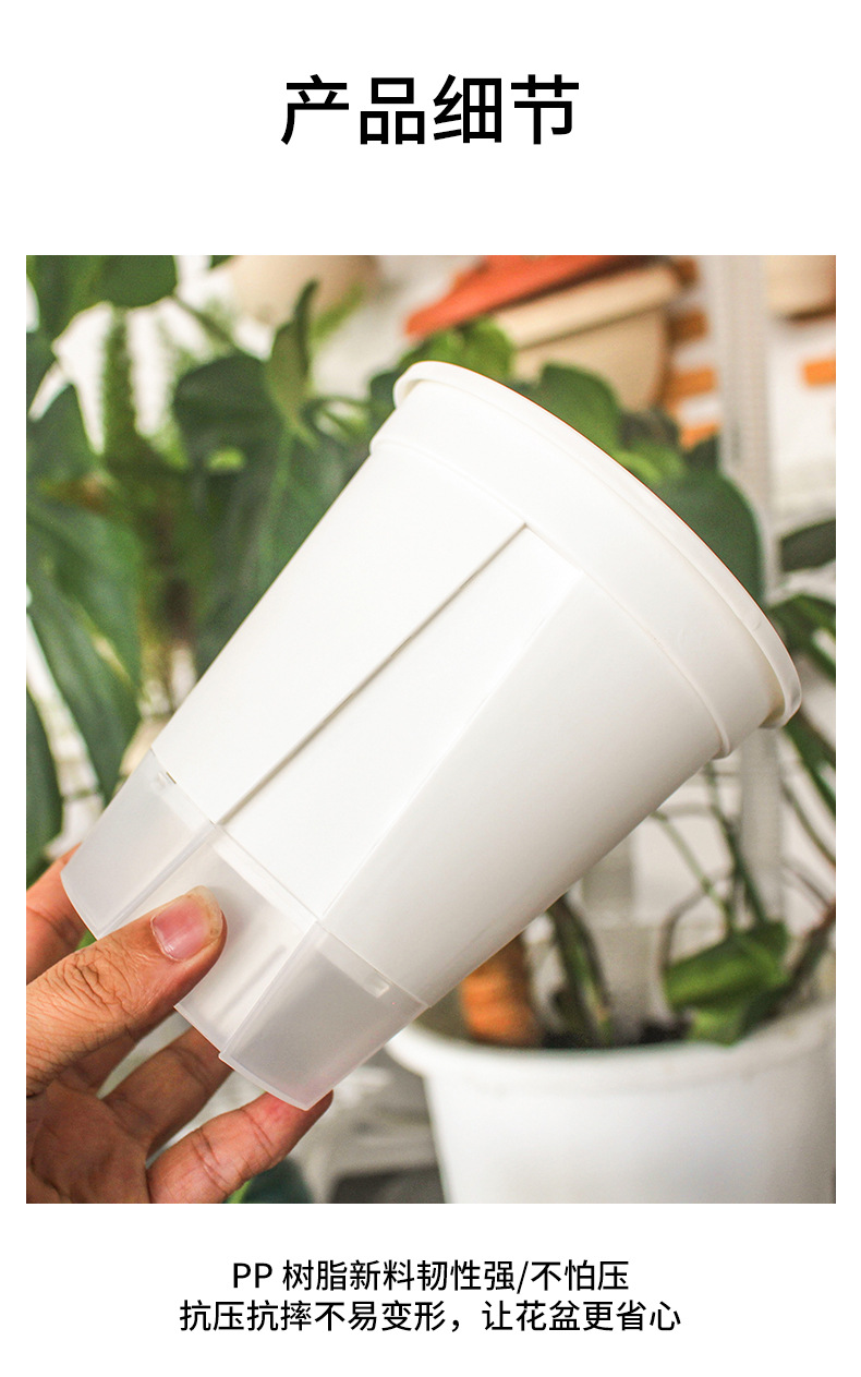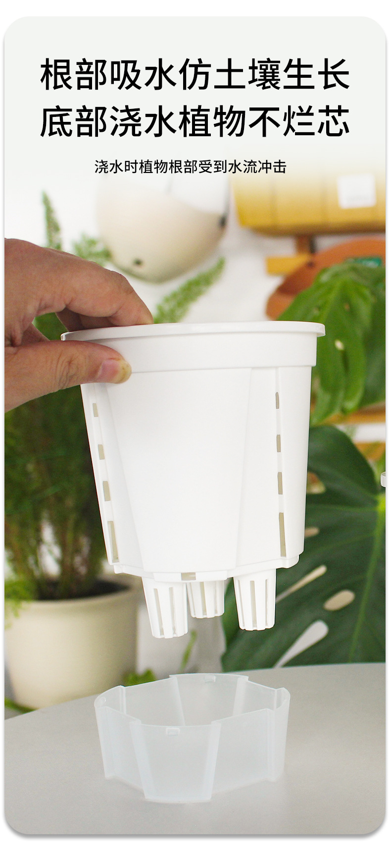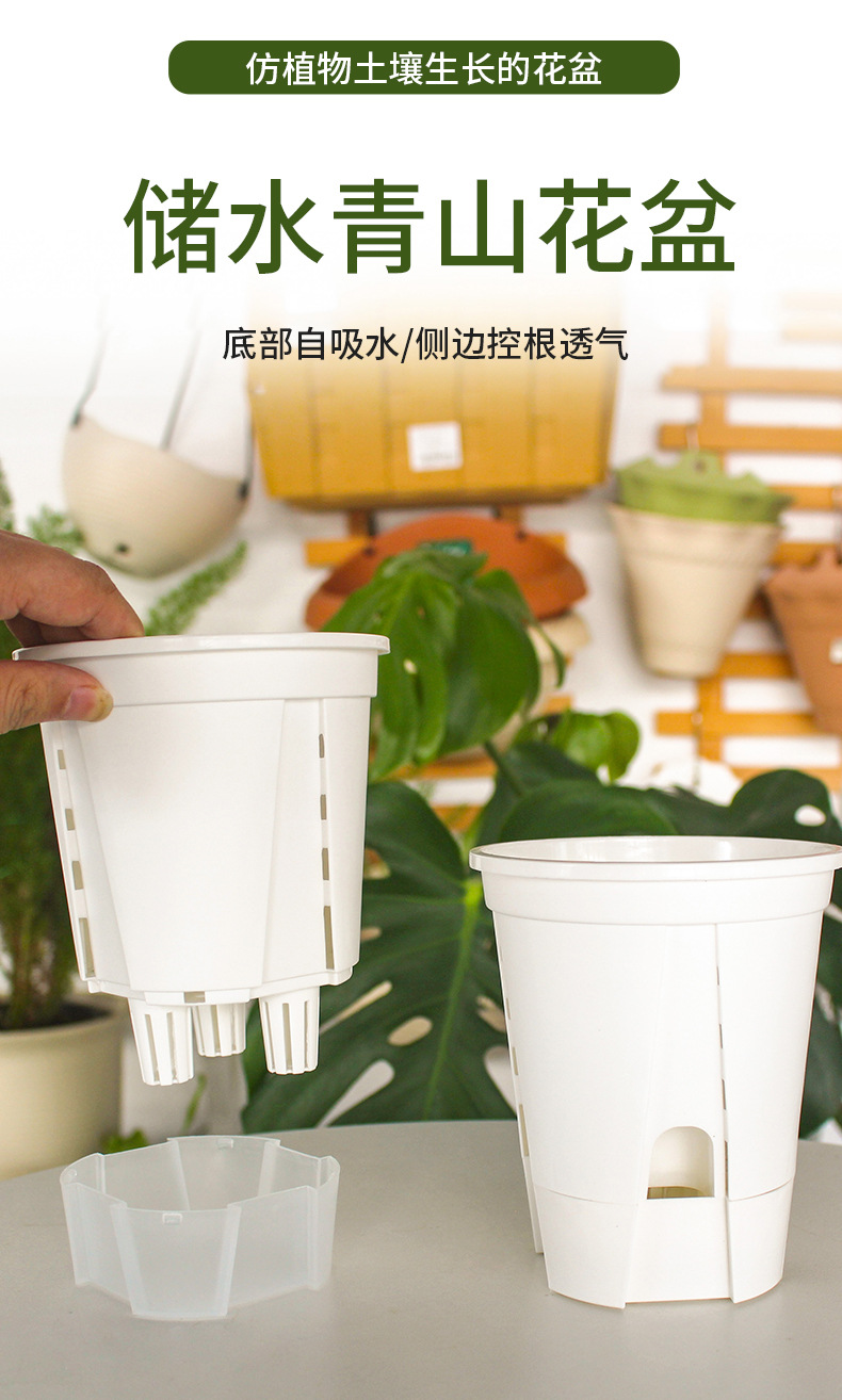물 저장 녹색 산 분지 자체 흡수 게으른 플라스틱 두꺼운 통기성 반 수경 대형 PP 수지 흰색 뿌리 제어 꽃 냄비스토어 가기