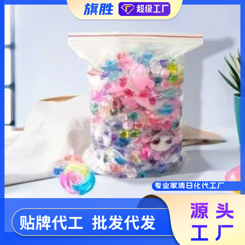 1、针对家庭自用客户,旗胜科技推出“2kg混装版洗衣凝珠”(透明袋装,一袋200粒左右,含单腔,多腔等多种造型)。