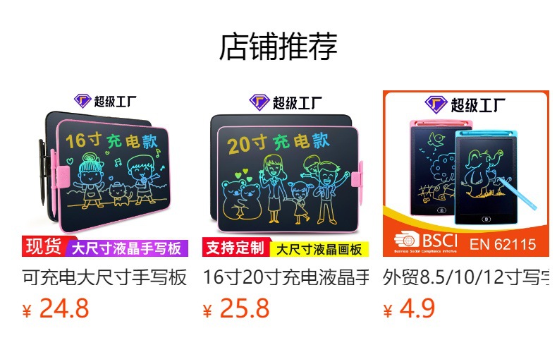 16 인치 충전식 아동용 LCD 필기 보드 아기 필기 태블릿은 유아 및 어린이를위한 대형 드로잉 보드를 제거 할 수 있습니다.스토어 가기