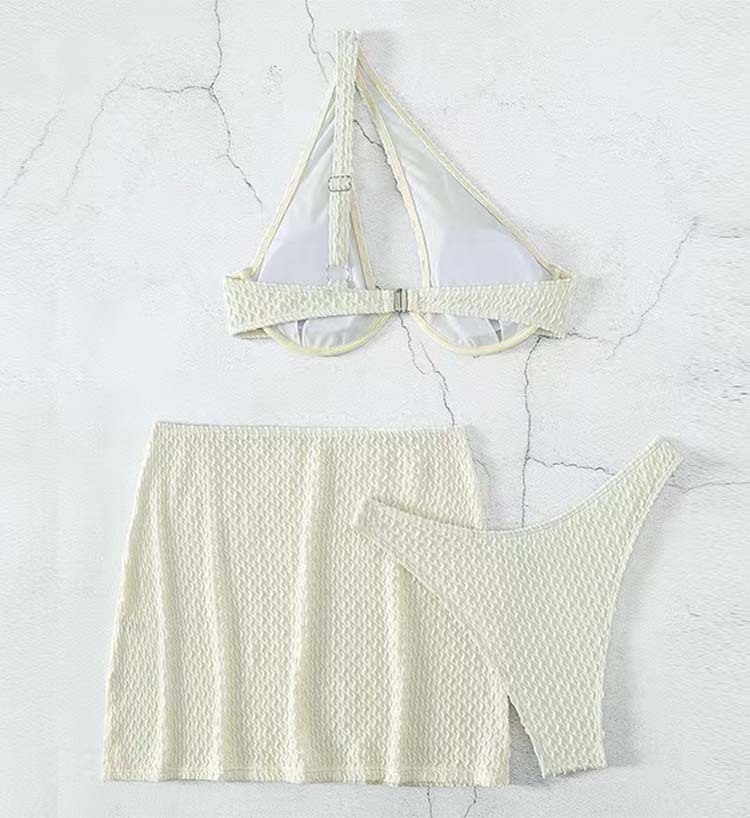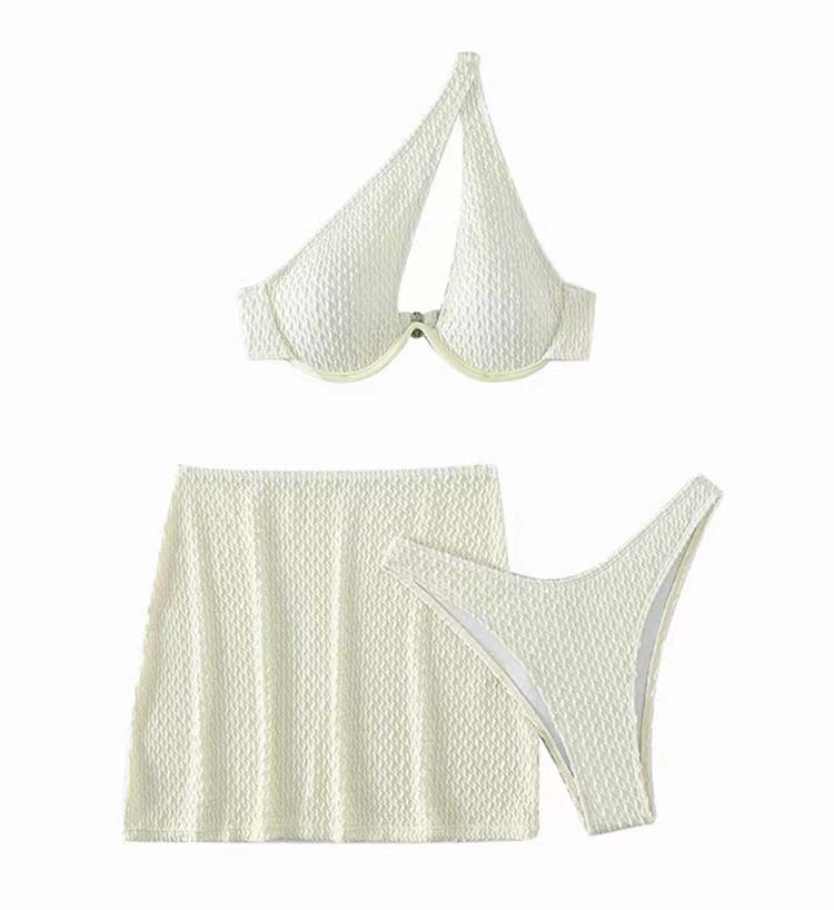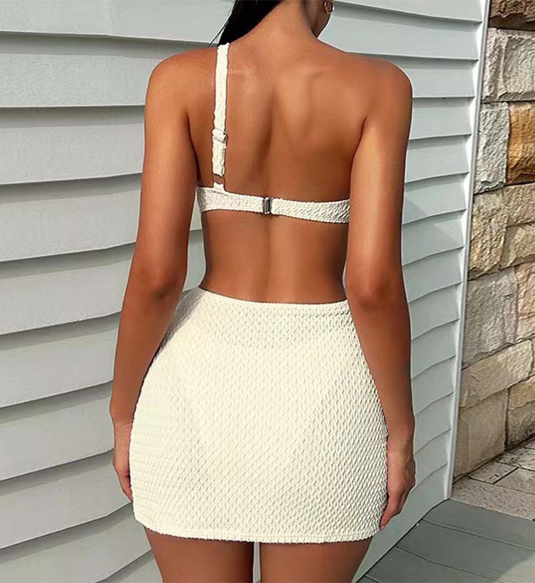 유럽과 미국의 3 점 섹시 백리스 퓨어 리본 컬로 티니 여성용 원 숄더 뉴 스플릿 수영복 3 피스 세트