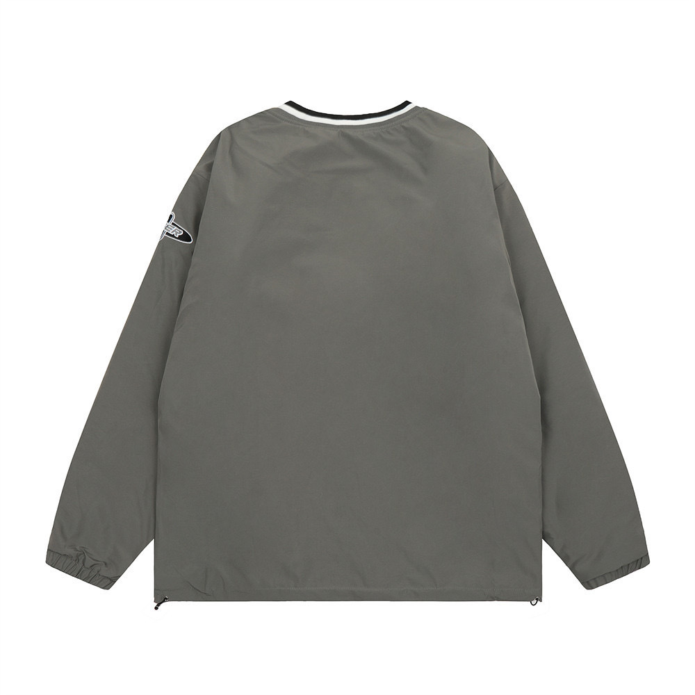 2024 새로운 자수 편지 V-Neck 긴팔 티셔츠 남자 풀오버 스포츠 루즈 탑 아메리칸 스타일 스트리트 패션 스웨트 셔츠