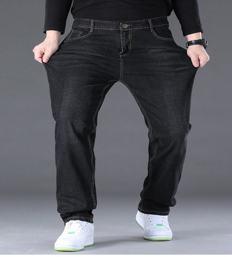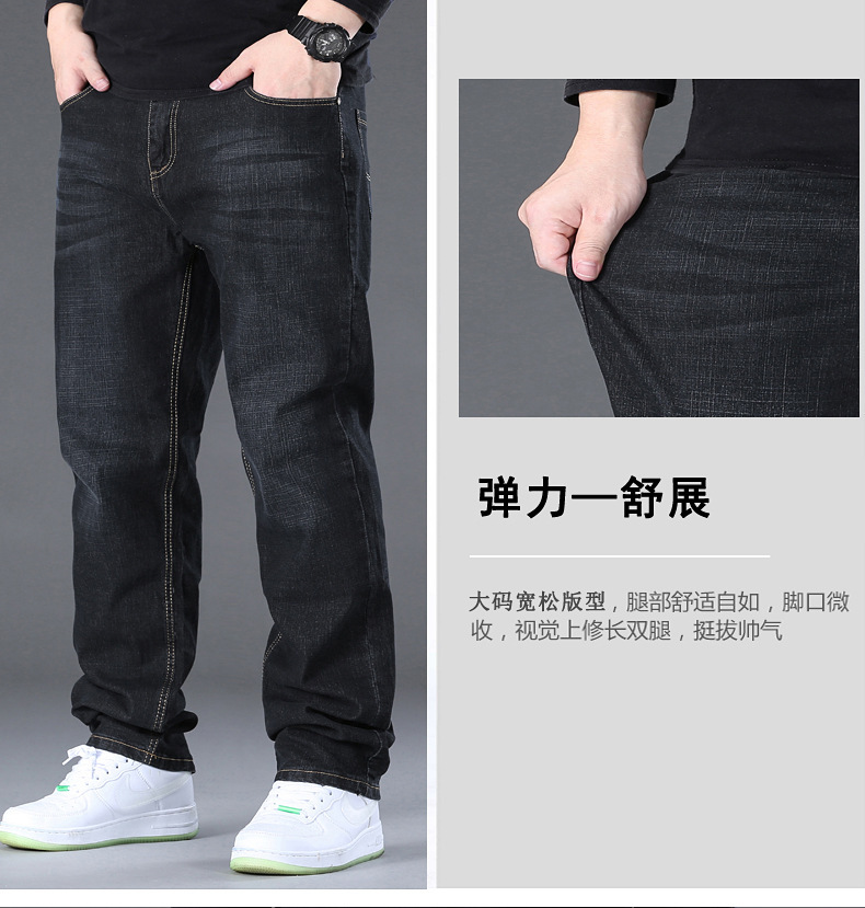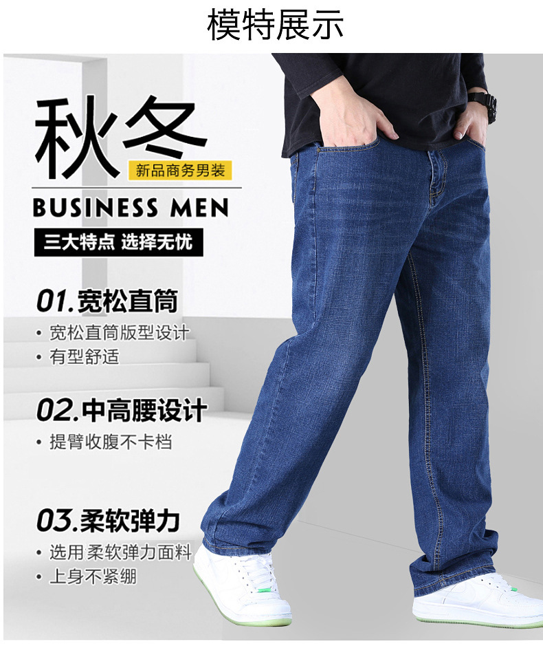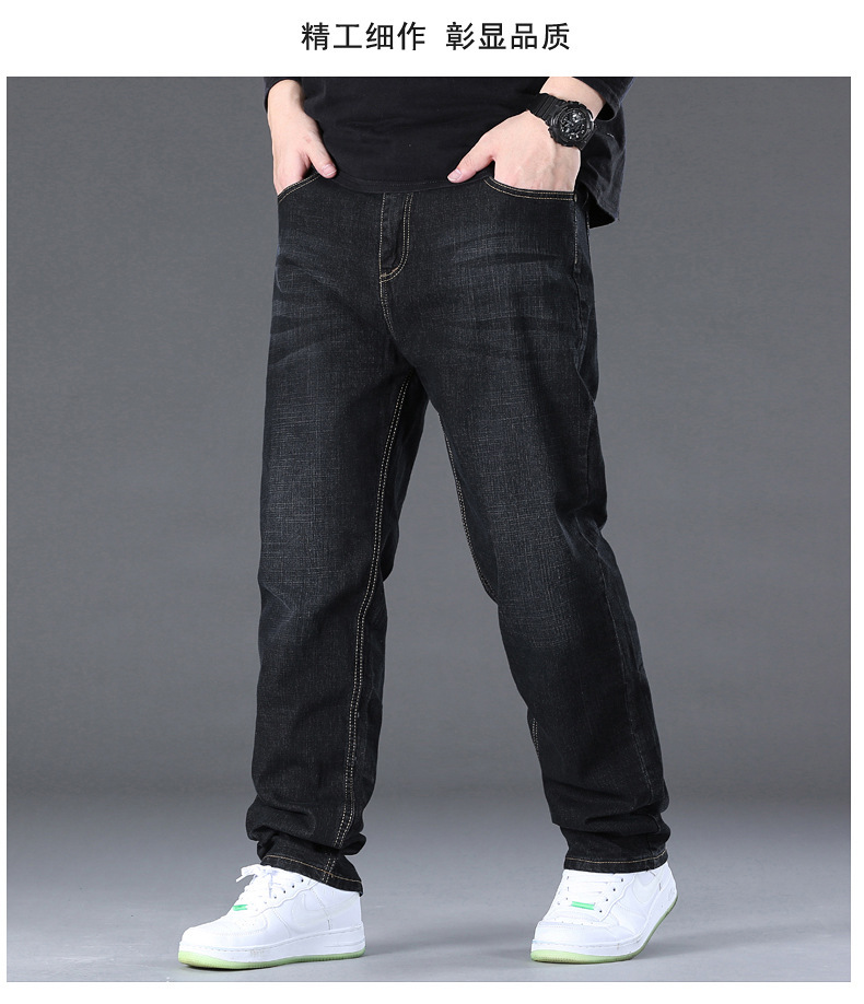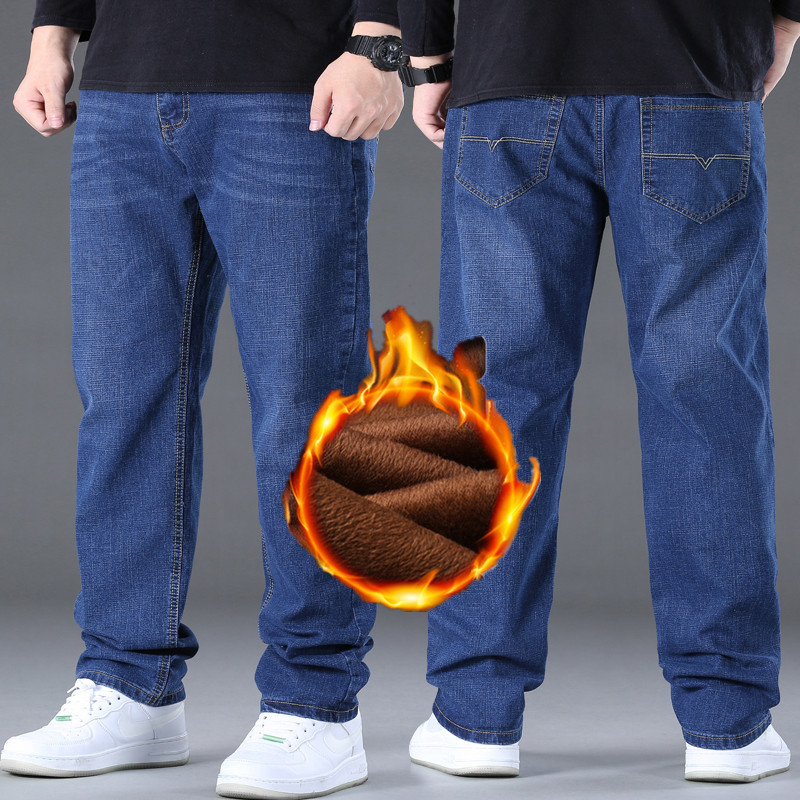 AliExpress 대외 무역 폭발 뚱뚱한 남자 플러스 사이즈 겨울 기모 두꺼운 스트레이트 남성 탄성 캐주얼 따뜻한 청바지