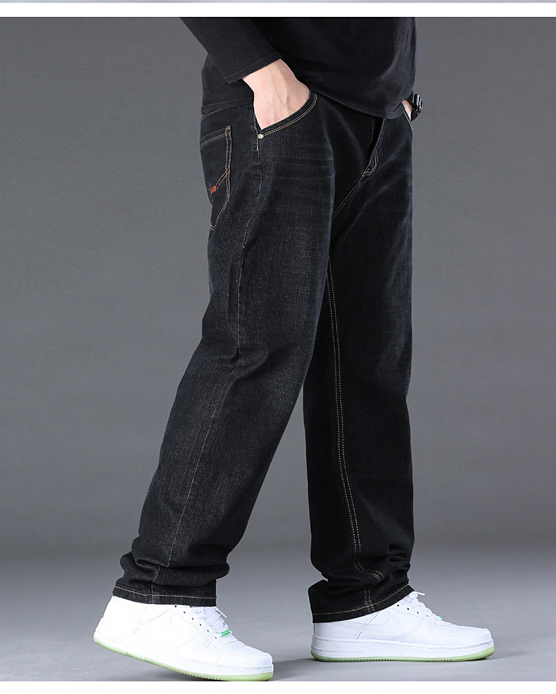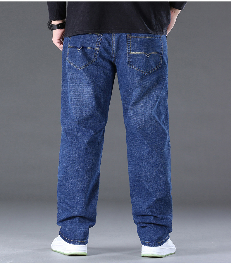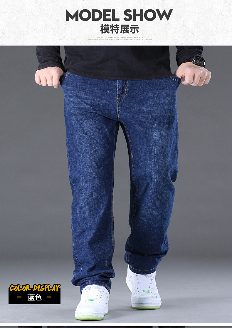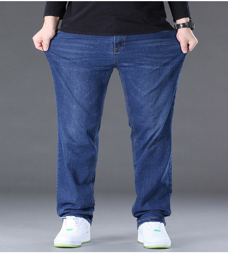 AliExpress 대외 무역 폭발 뚱뚱한 남자 플러스 사이즈 겨울 기모 두꺼운 스트레이트 남성 탄성 캐주얼 따뜻한 청바지