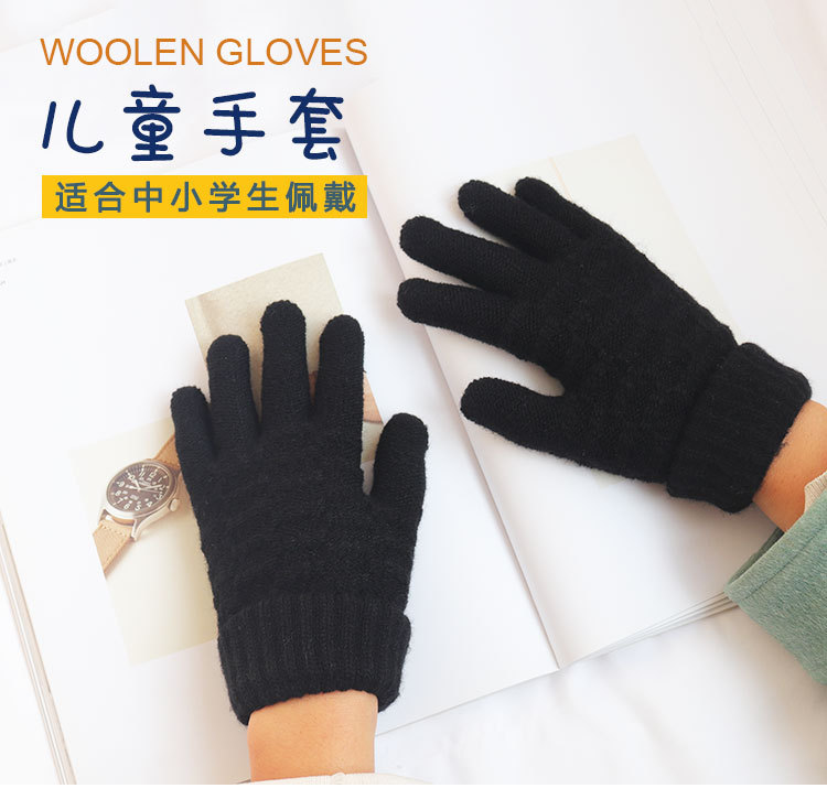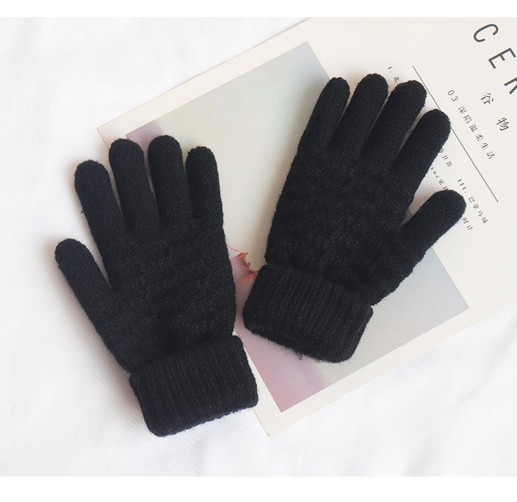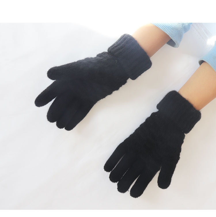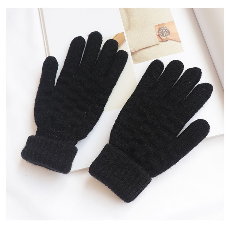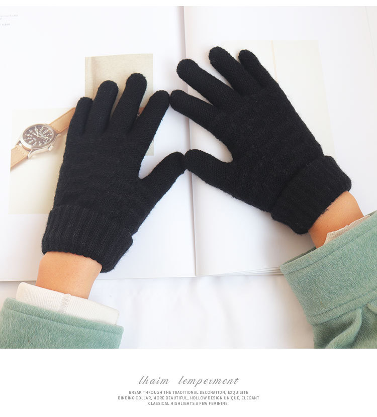 남녀공용 니트 보온 장갑, 겨울용, 벨벳 안감, 두꺼운, 방한, 귀여운, 사이클링, 터치스크린, 모직, 학생용, 다섯 손가락, 방한스토어 가기
