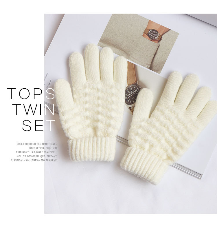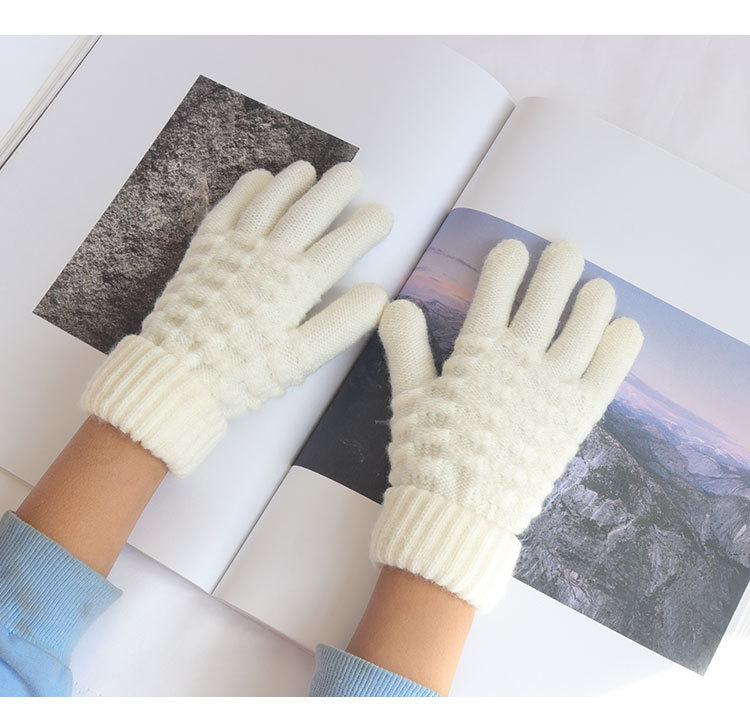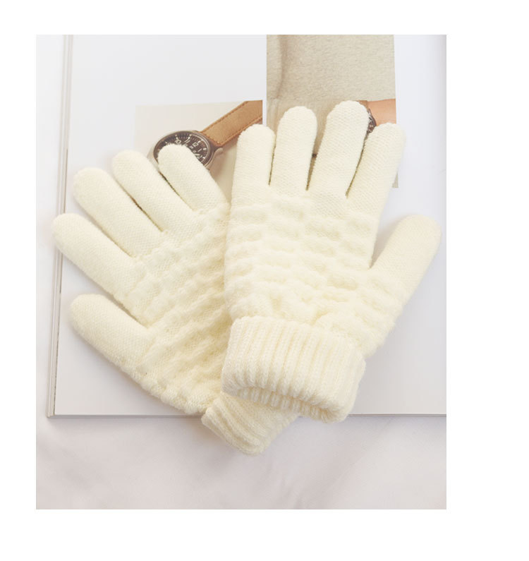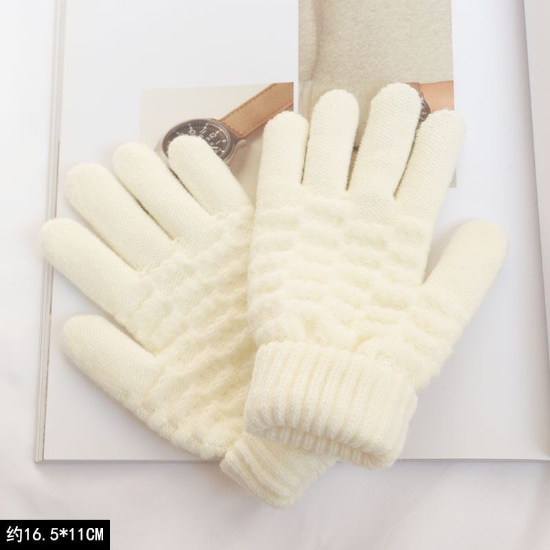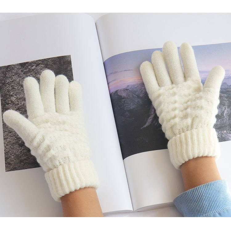 남녀공용 니트 보온 장갑, 겨울용, 벨벳 안감, 두꺼운, 방한, 귀여운, 사이클링, 터치스크린, 모직, 학생용, 다섯 손가락, 방한