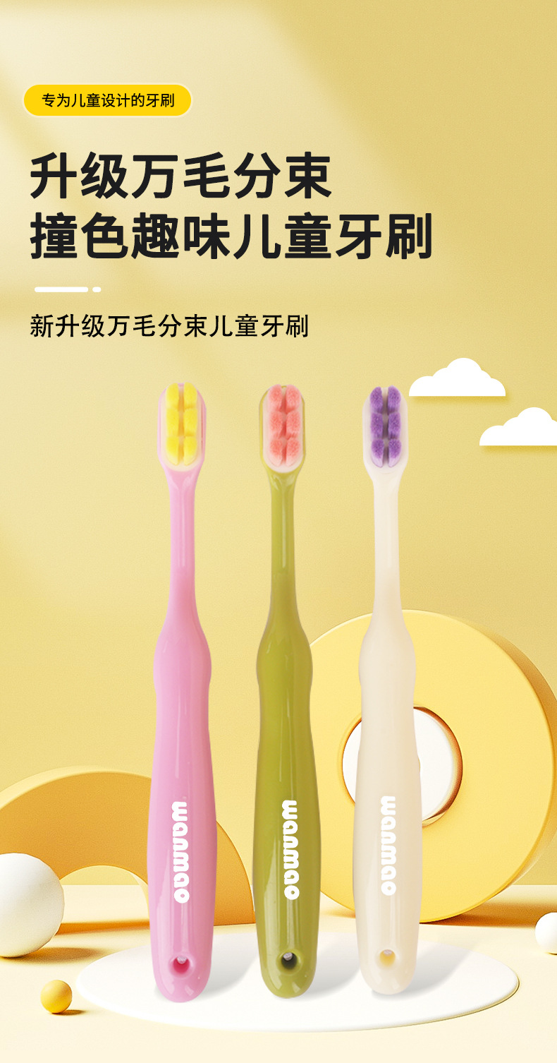 완 마오 어린이 마카롱 컬러 부드러운 헤어 칫솔 번들 헤어 심기 부드러운 청소 방직 치약 보호 어린이 아기 미끄럼 방지