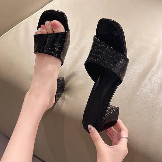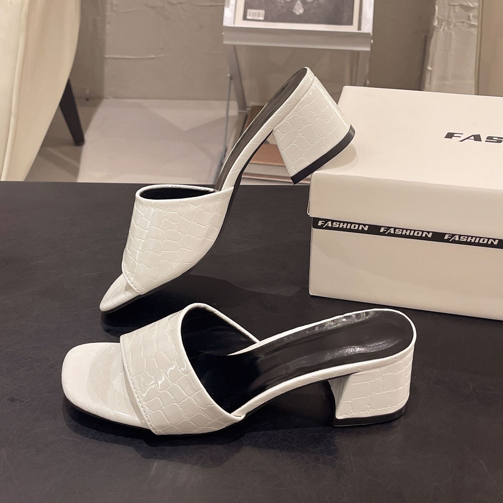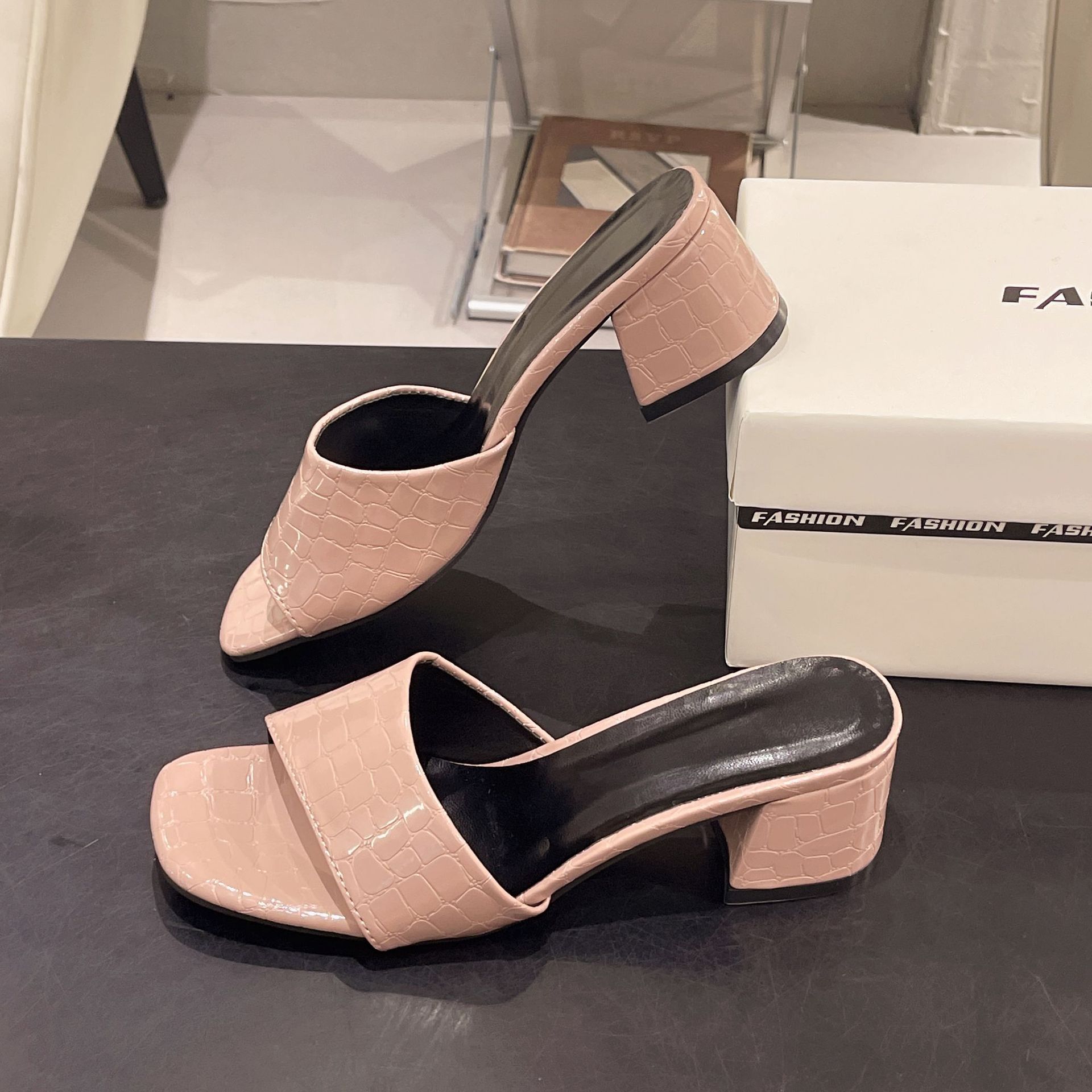아마존 유럽과 미국 대외 무역 플러스 사이즈 여성 신발 2024 새 여름 원피스 두꺼운 힐 샌들은 하이힐 슬리퍼를 착용합니다.스토어 가기