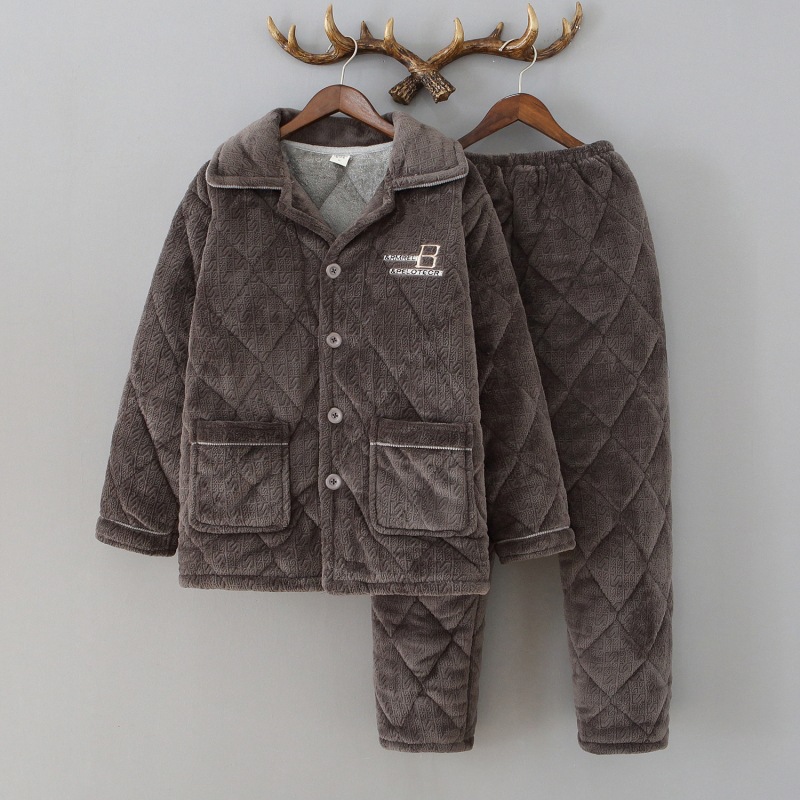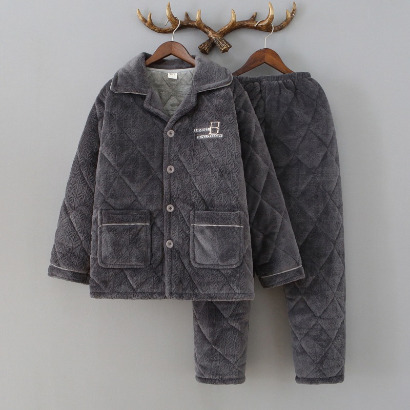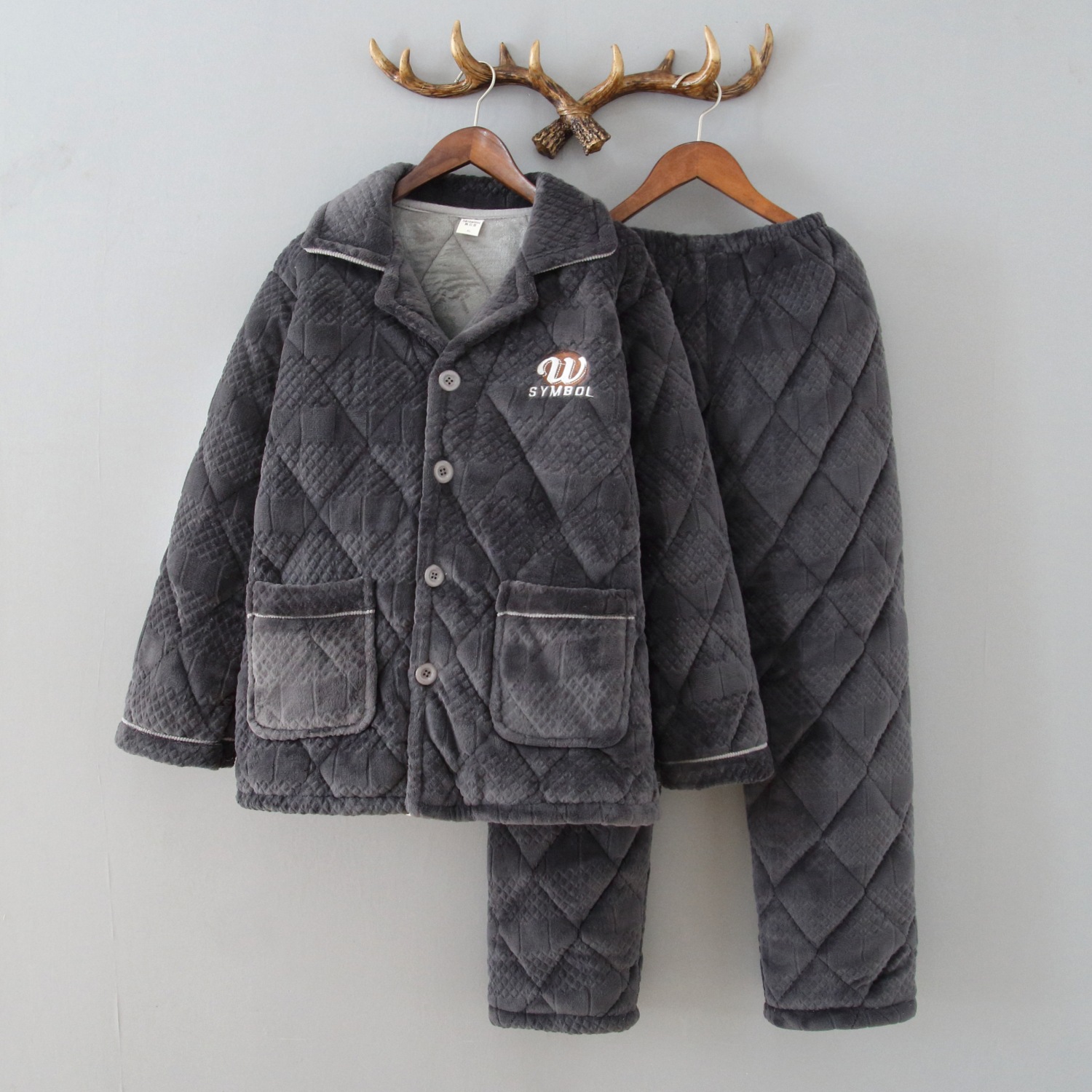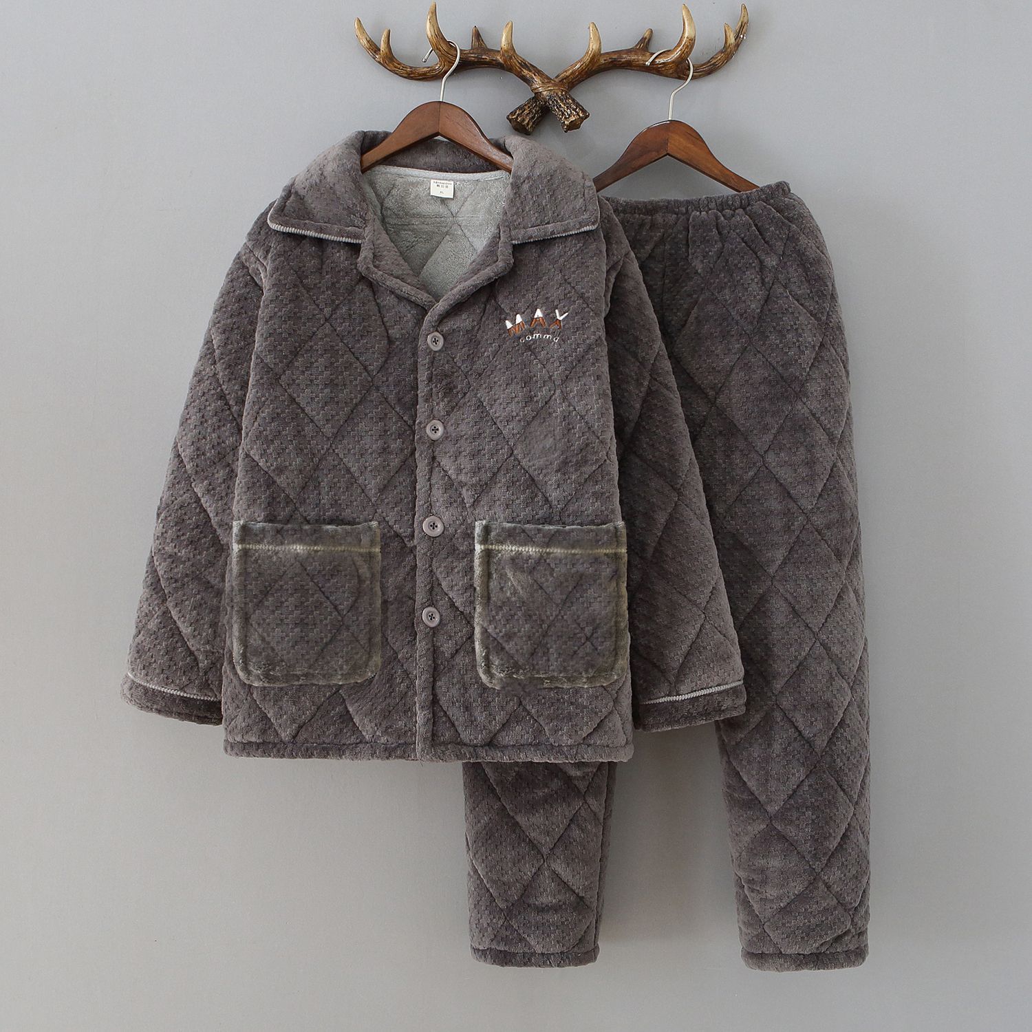 젊고 중년의 겨울 3 층 퀼트 두꺼운 남자 플란넬 파자마 산호 양털 플러스 사이즈 따뜻한 가정 옷 세트