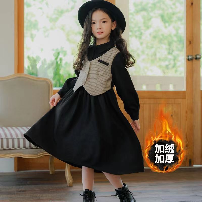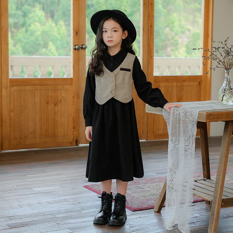 여아 가을 겨울 원피스 2025 신상 어린 소녀 중대형 아동 조끼 스커트 투피스 세트 컬리지 스타일 소녀스토어 가기