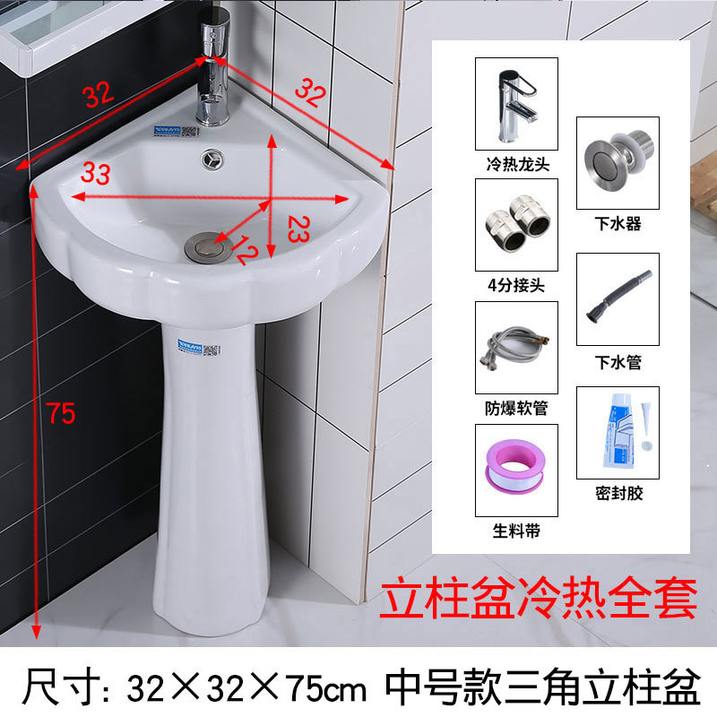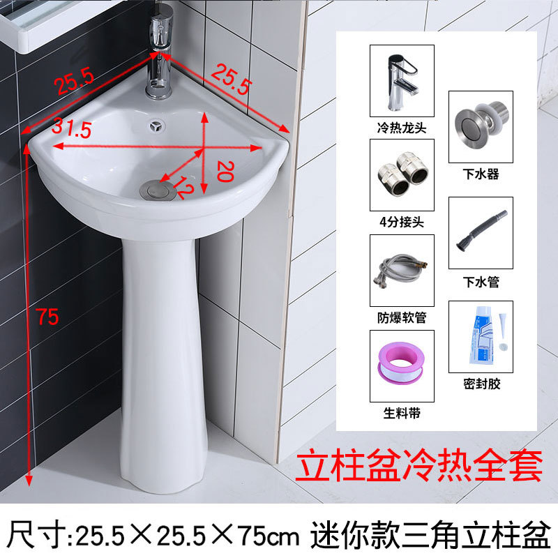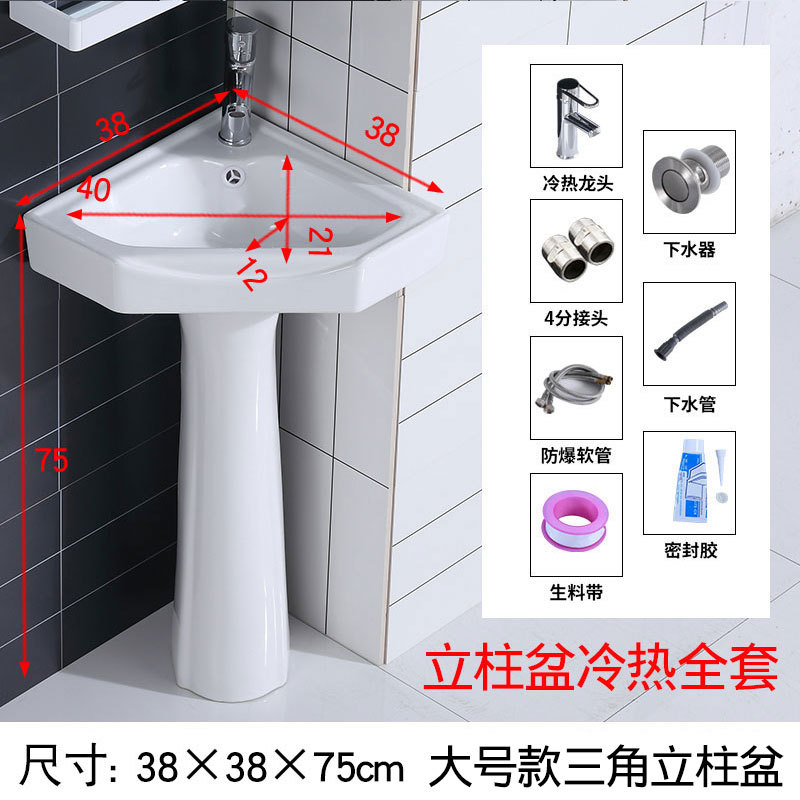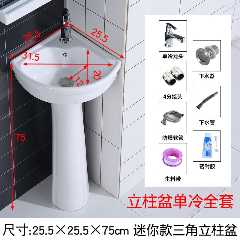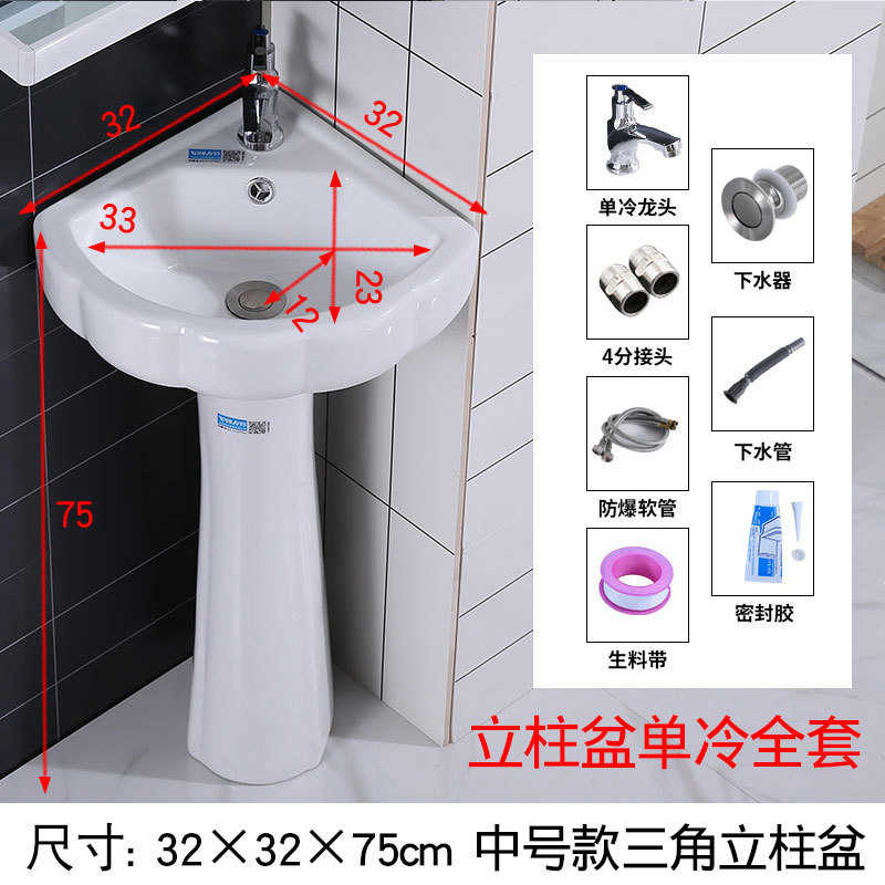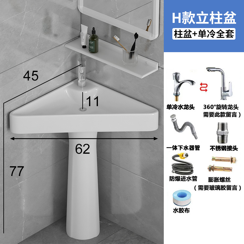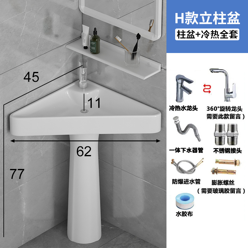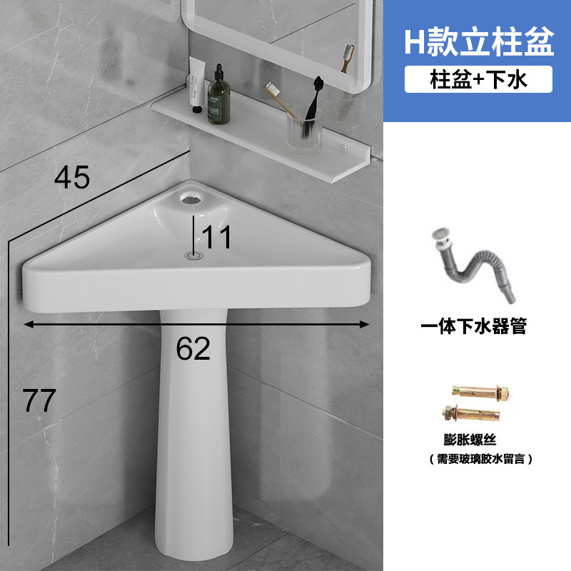 코너 칼럼 유형 세면대 바닥 세척 분지 코너 화장실 미니 발코니 화장실 세면대 삼각형 수영장스토어 가기