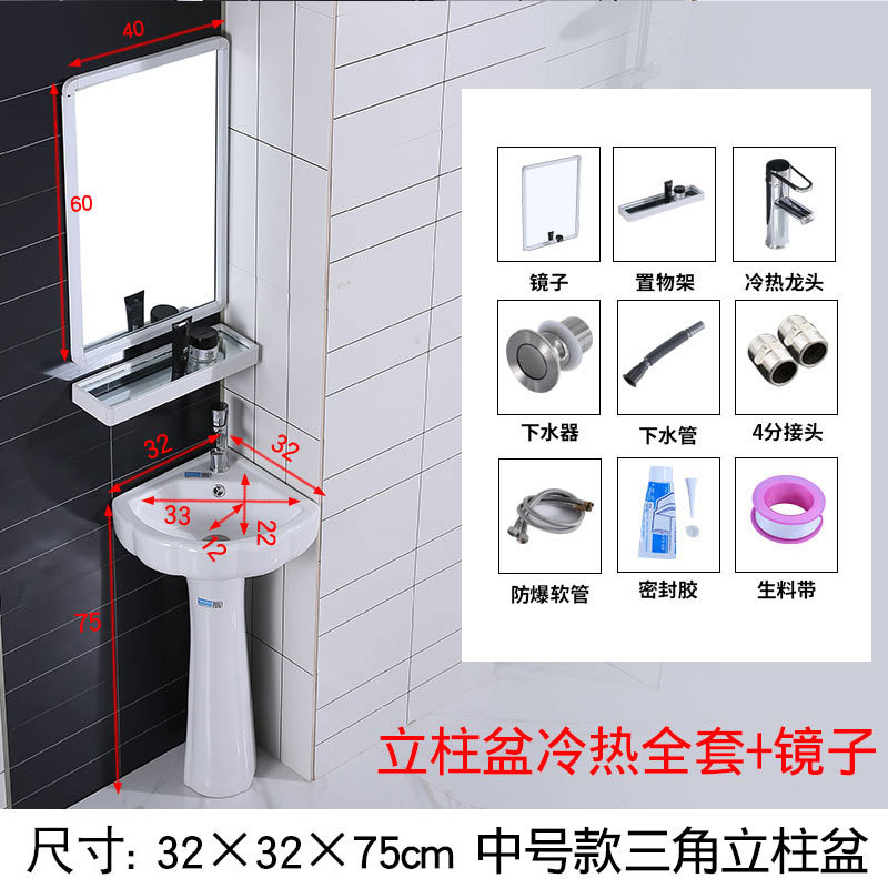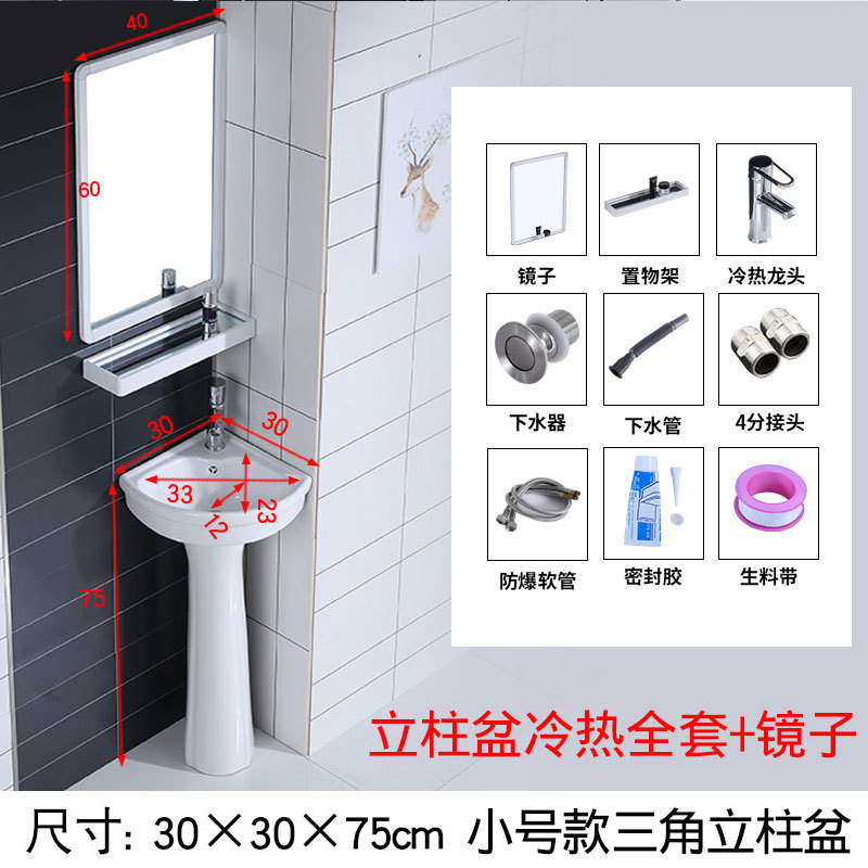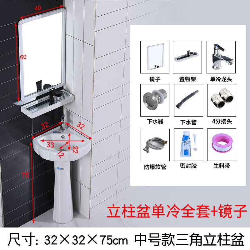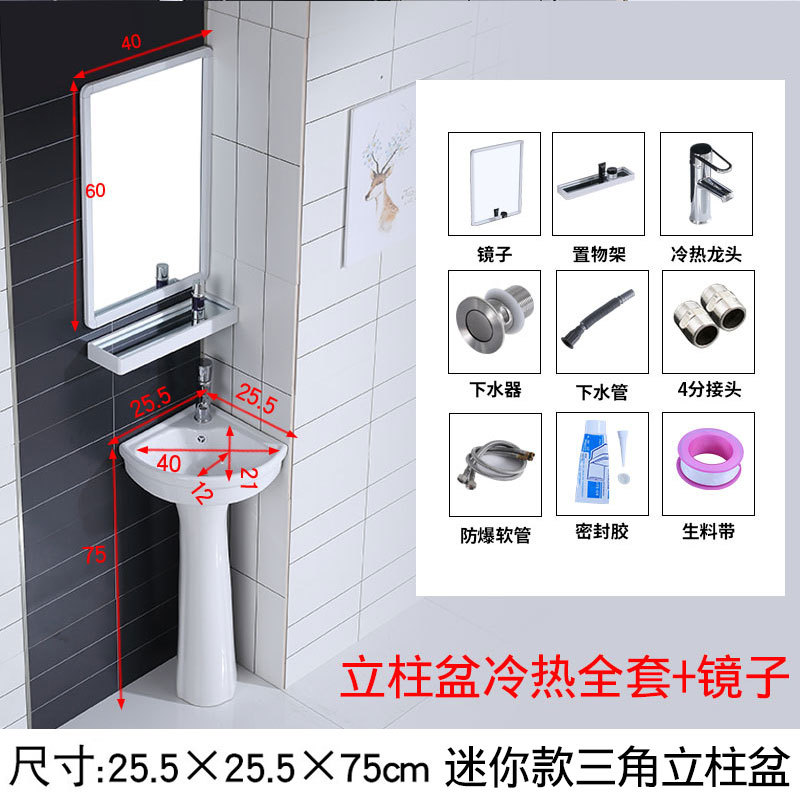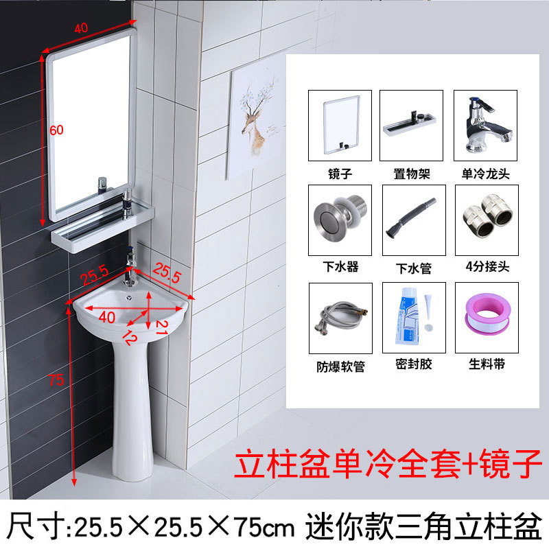 • 미니 삼각형 기둥 세면대 단일 냉각 세트 + 거울