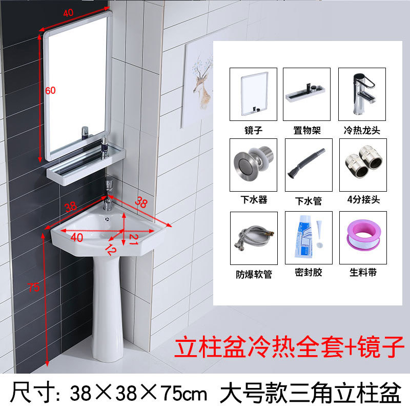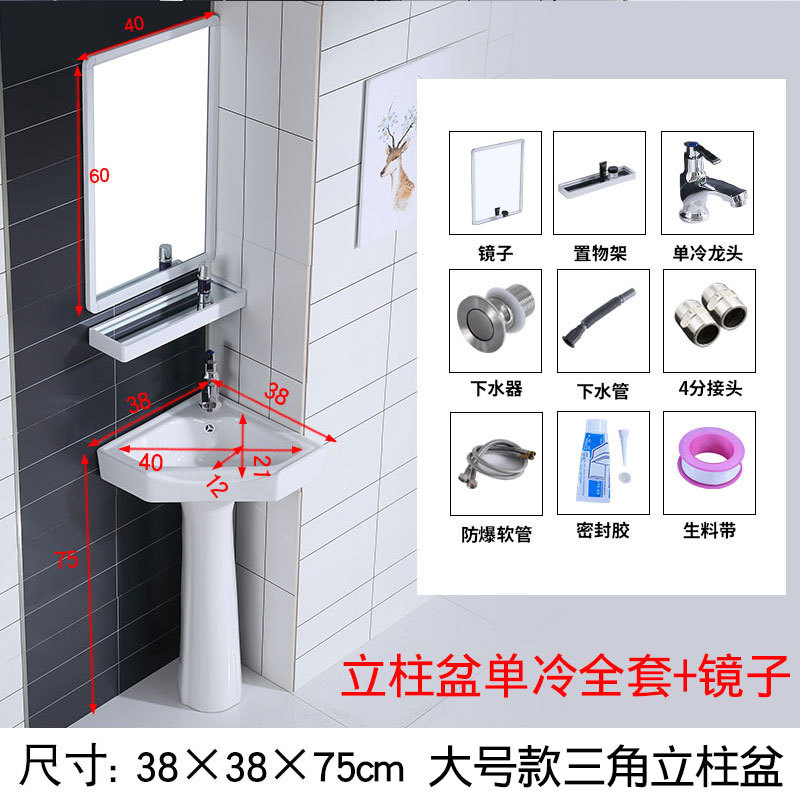 • 대형 삼각형 기둥 세면대 단일 냉각 세트 + 거울