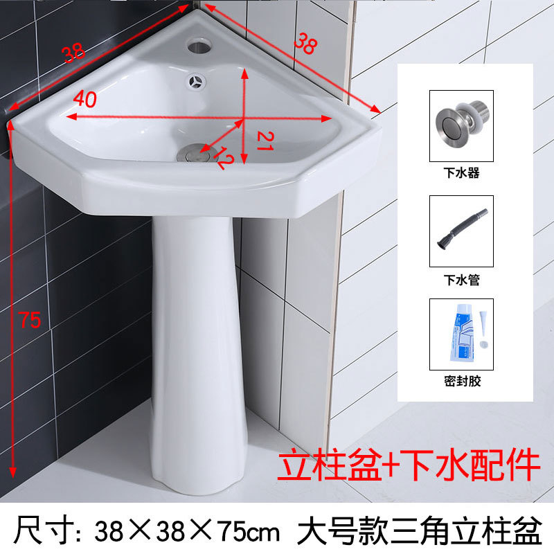 • 대형 삼각형 기둥 세면대 + 배수 액세서리