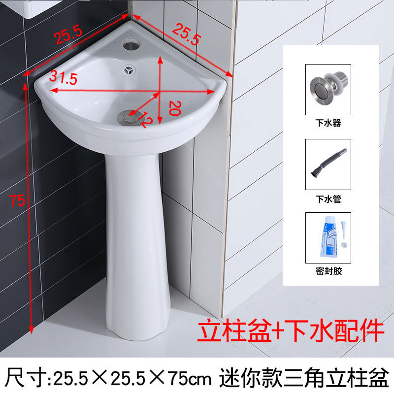 • 미니 삼각형 기둥 세면대 + 배수 액세서리