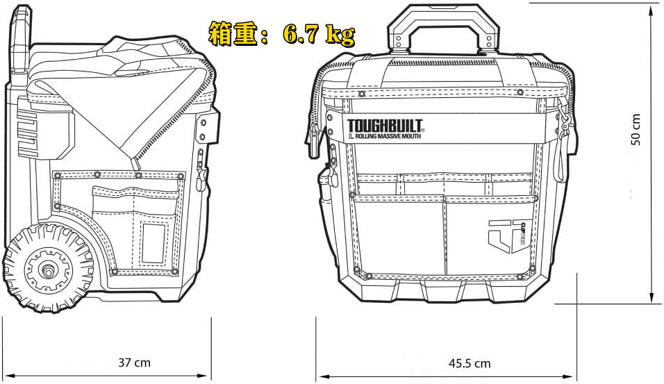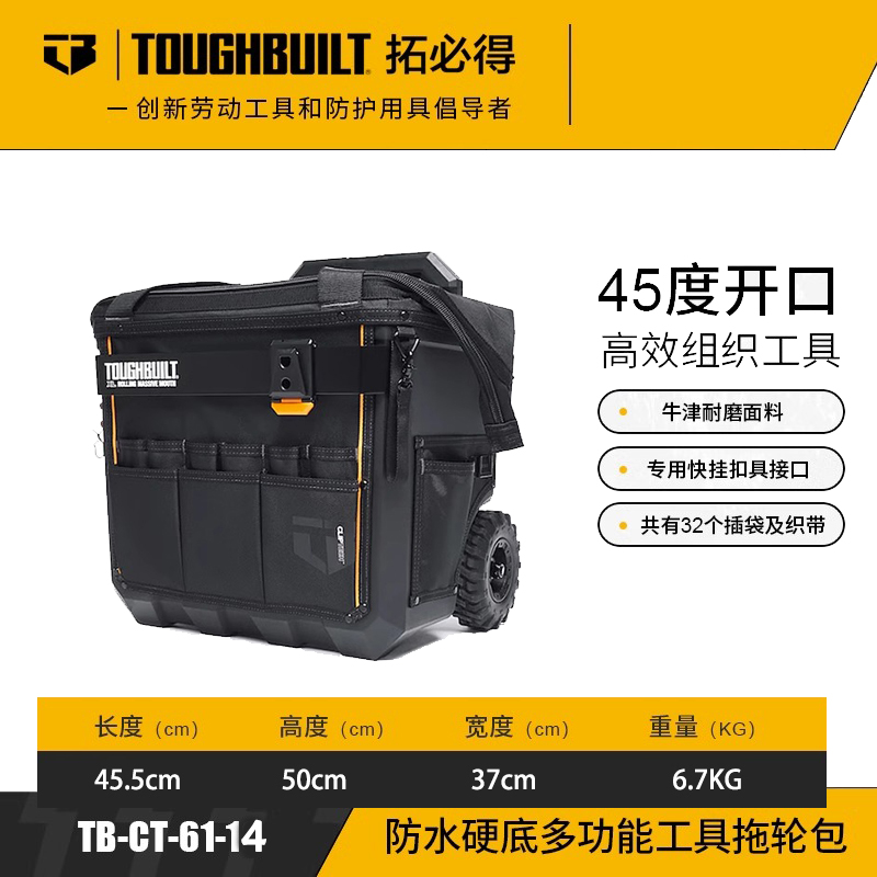 TOUGHBUILT Tuopi 14 인치 다기능 방수 하드 바닥 풀로드 도구 키트 헤비 빠른 매달린 견인 휠 박스