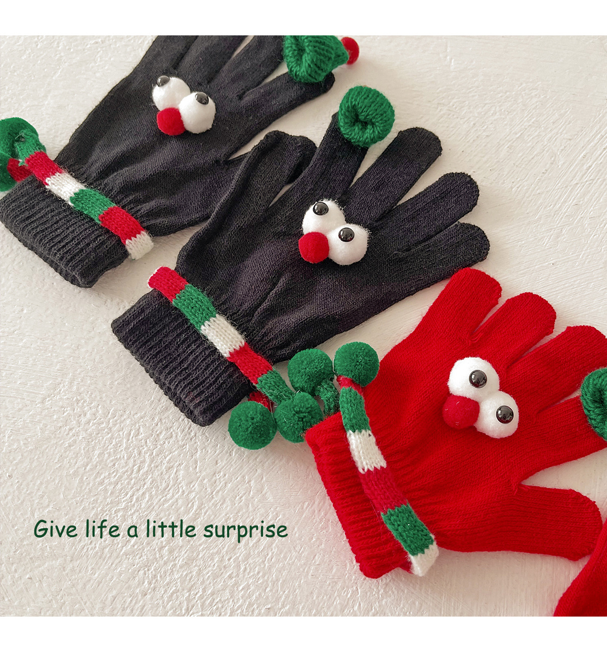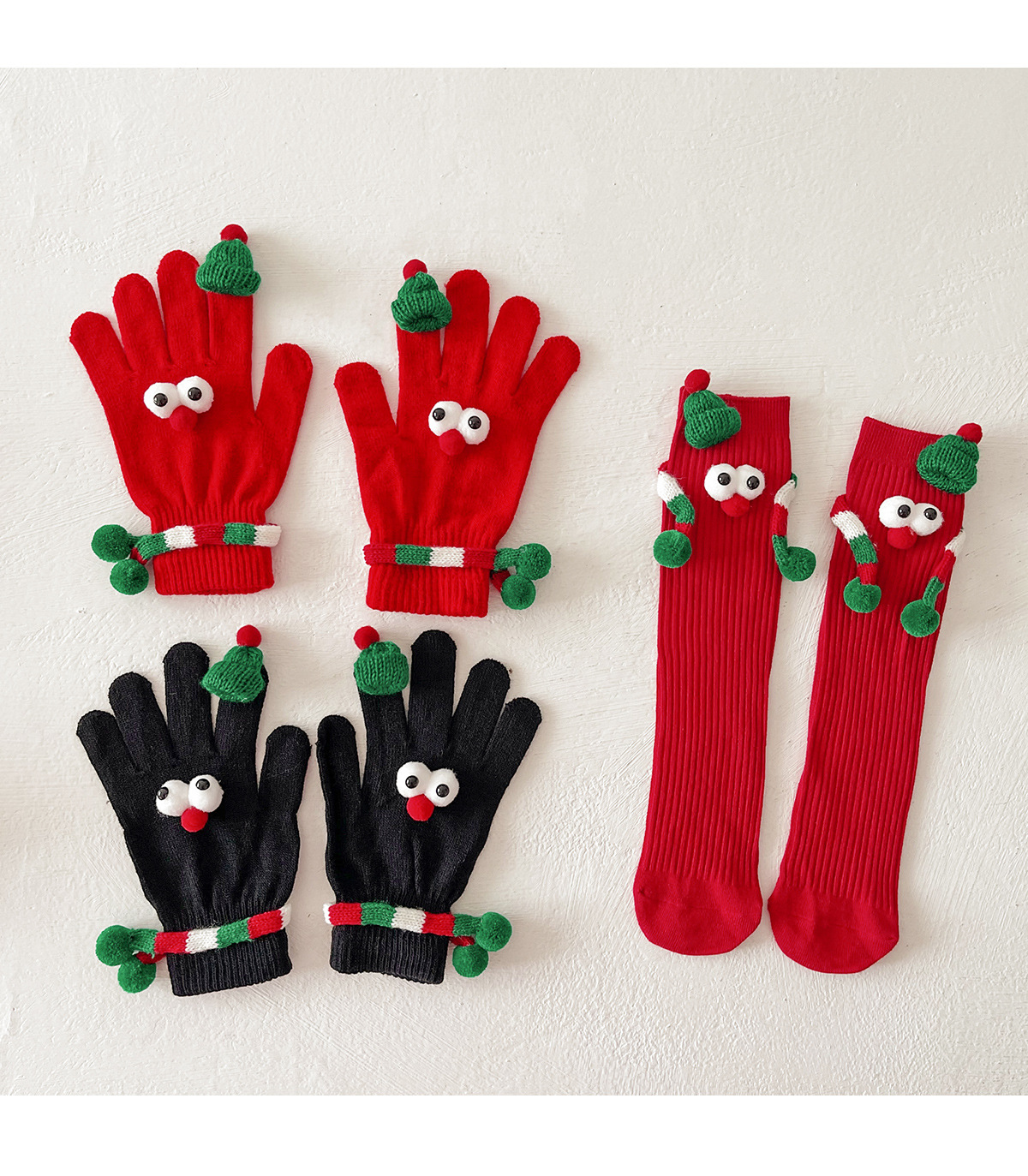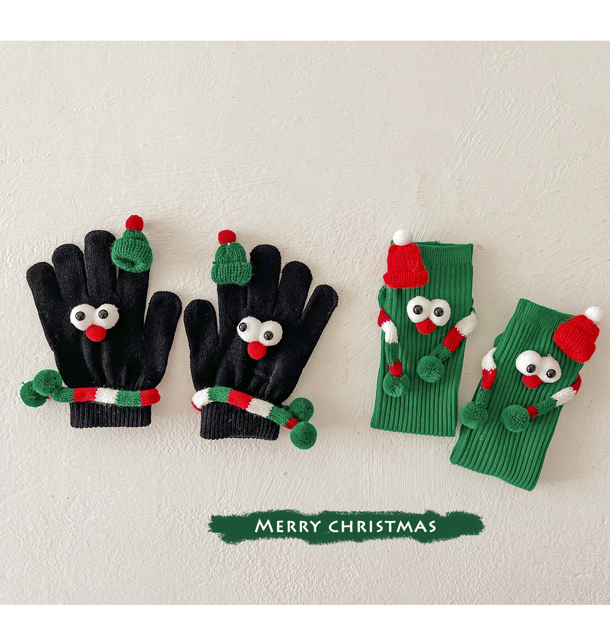 2024 년 새로운 국경 크리스마스 장갑 올해 빨간 어린이 양말 재미있는 따뜻한 다섯 손가락 장갑 조수