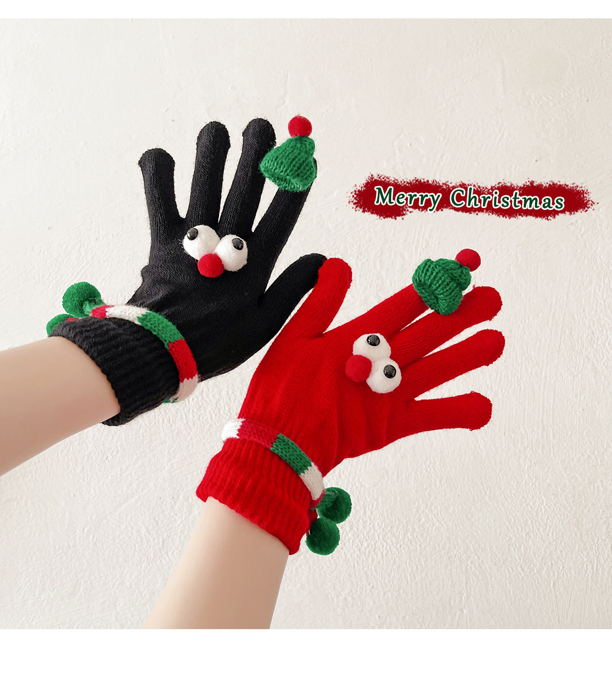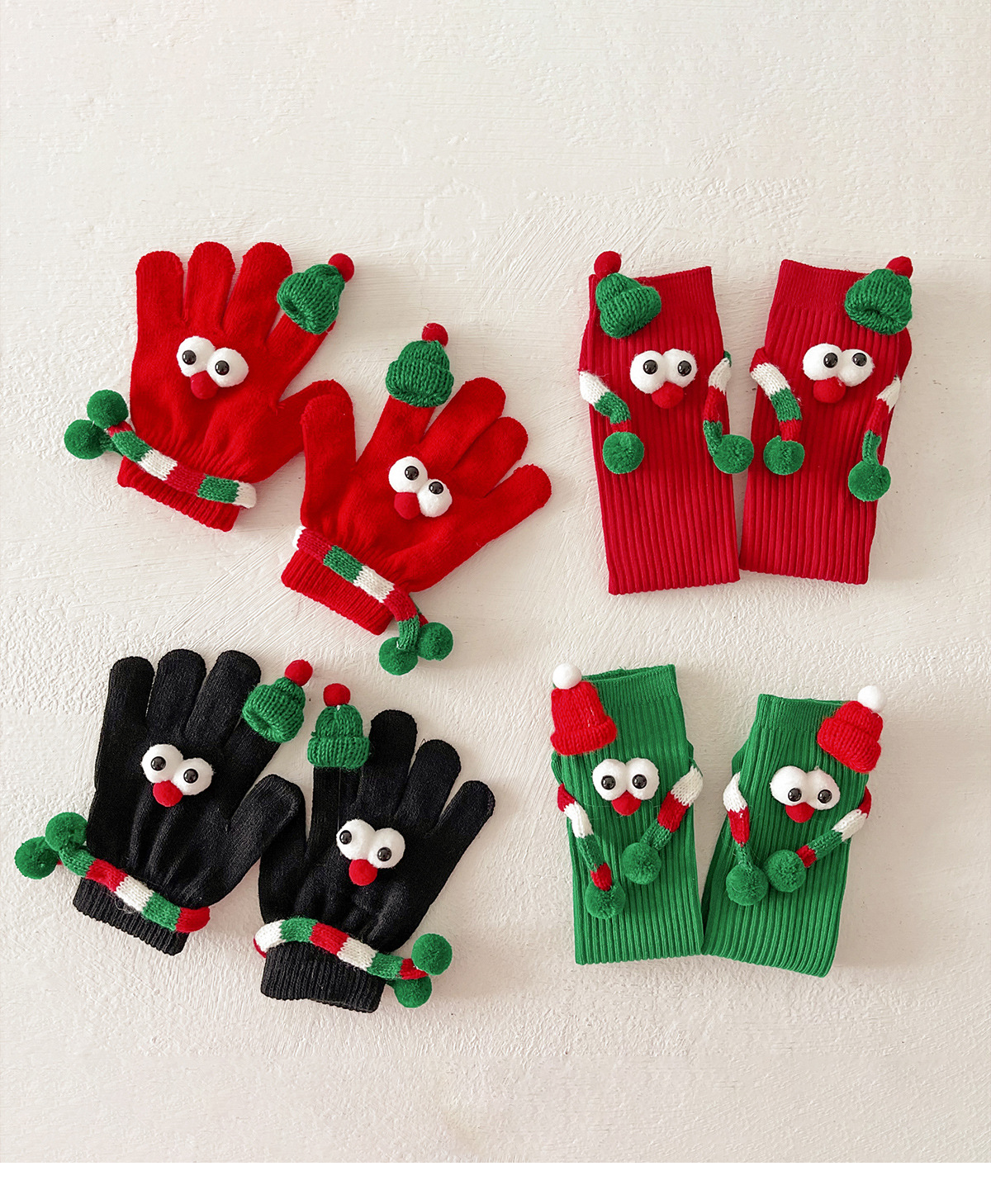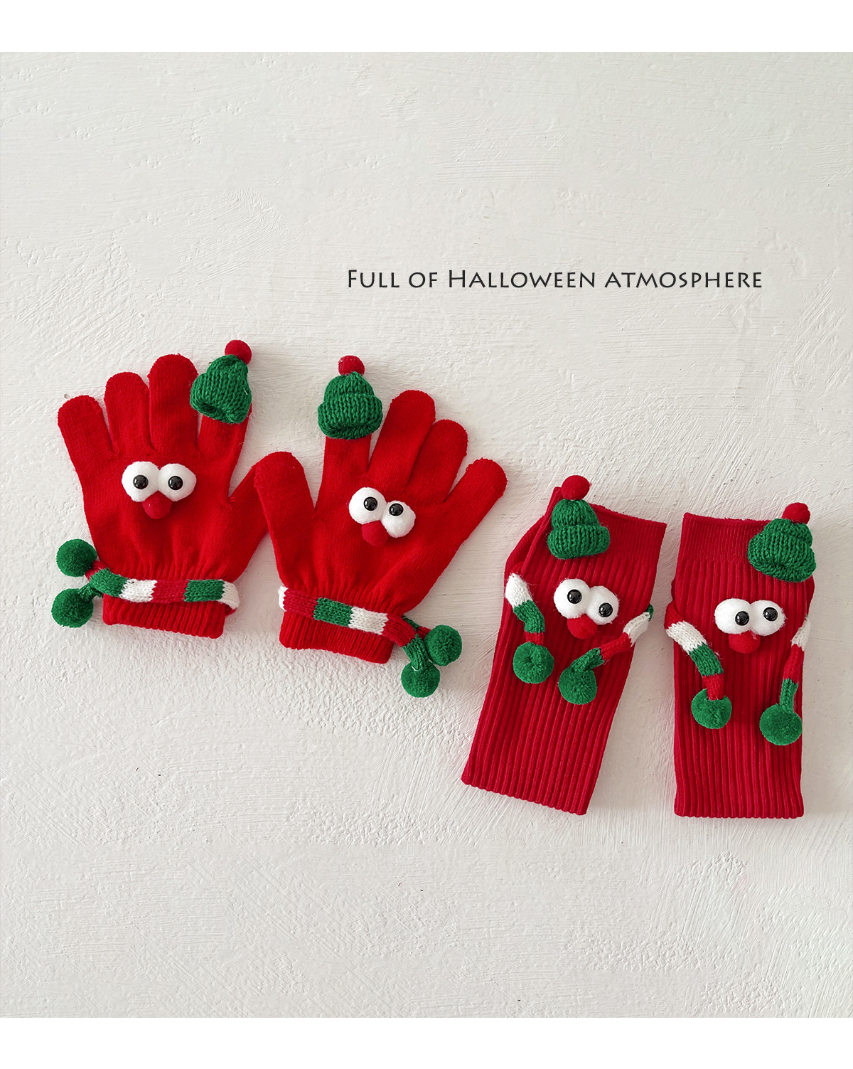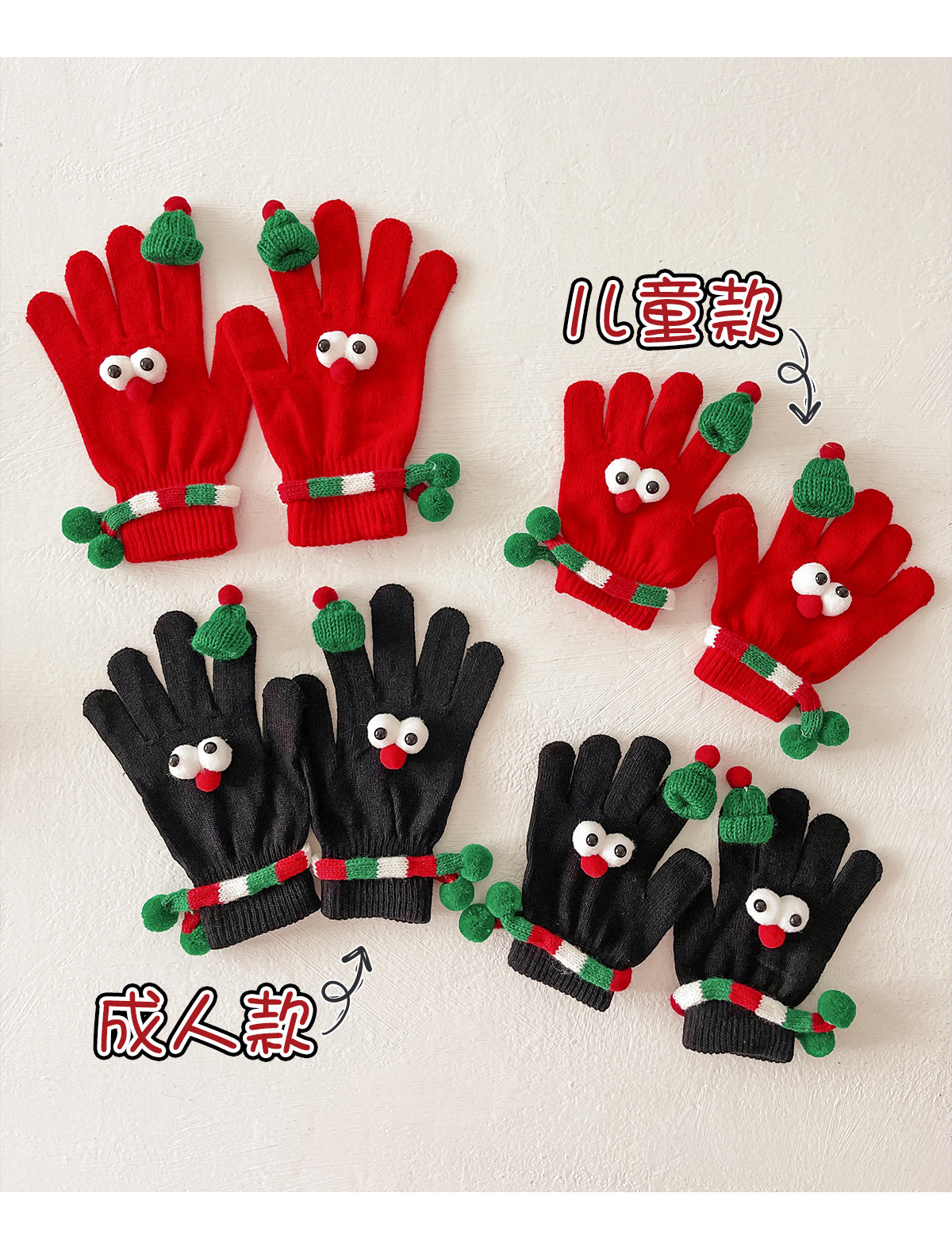 2024 년 새로운 국경 크리스마스 장갑 올해 빨간 어린이 양말 재미있는 따뜻한 다섯 손가락 장갑 조수