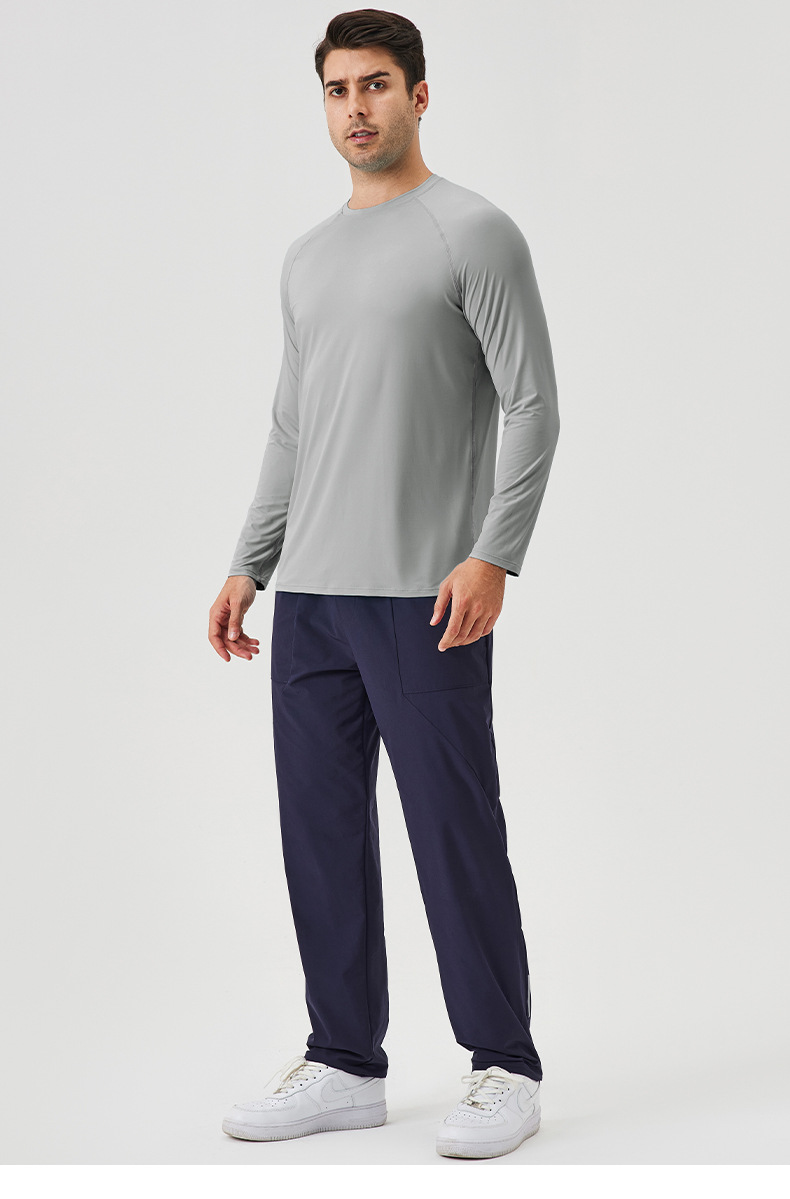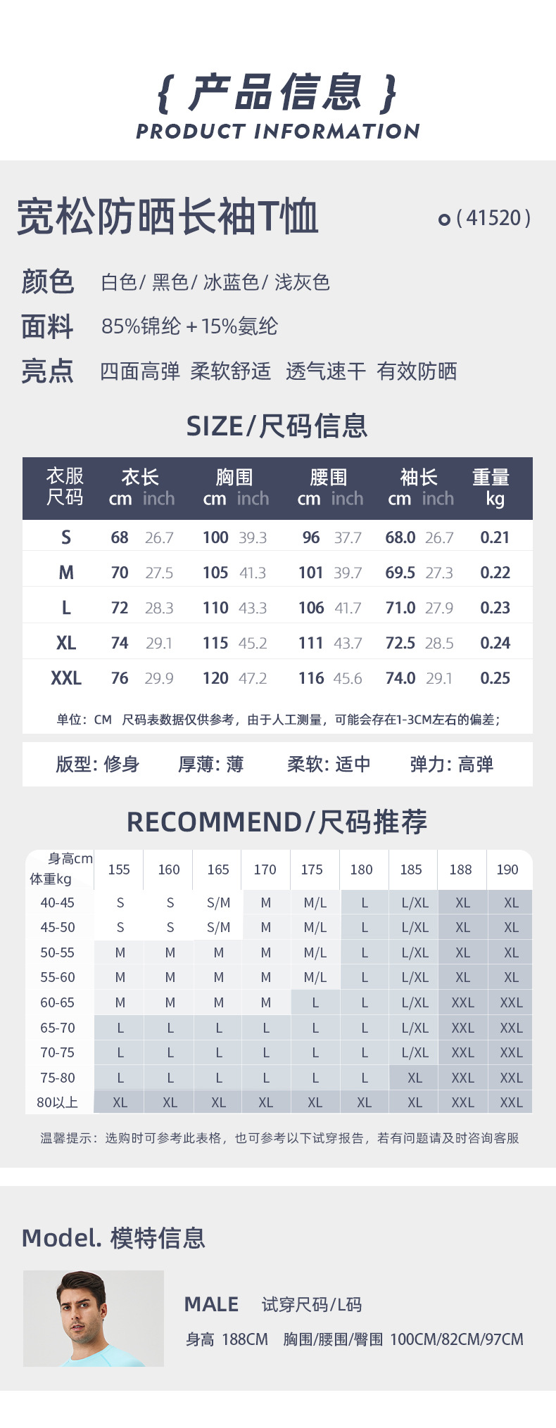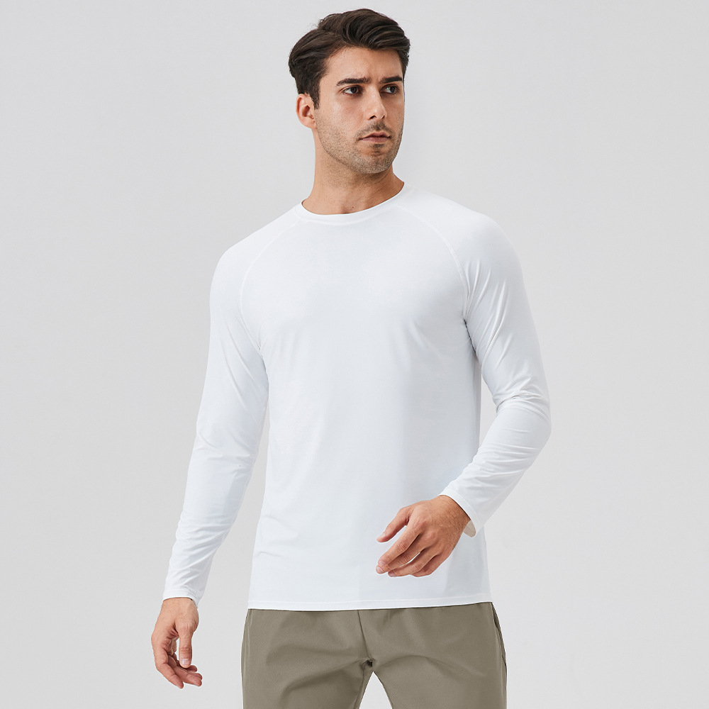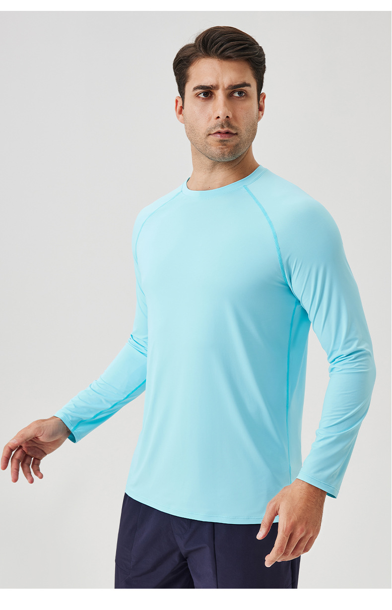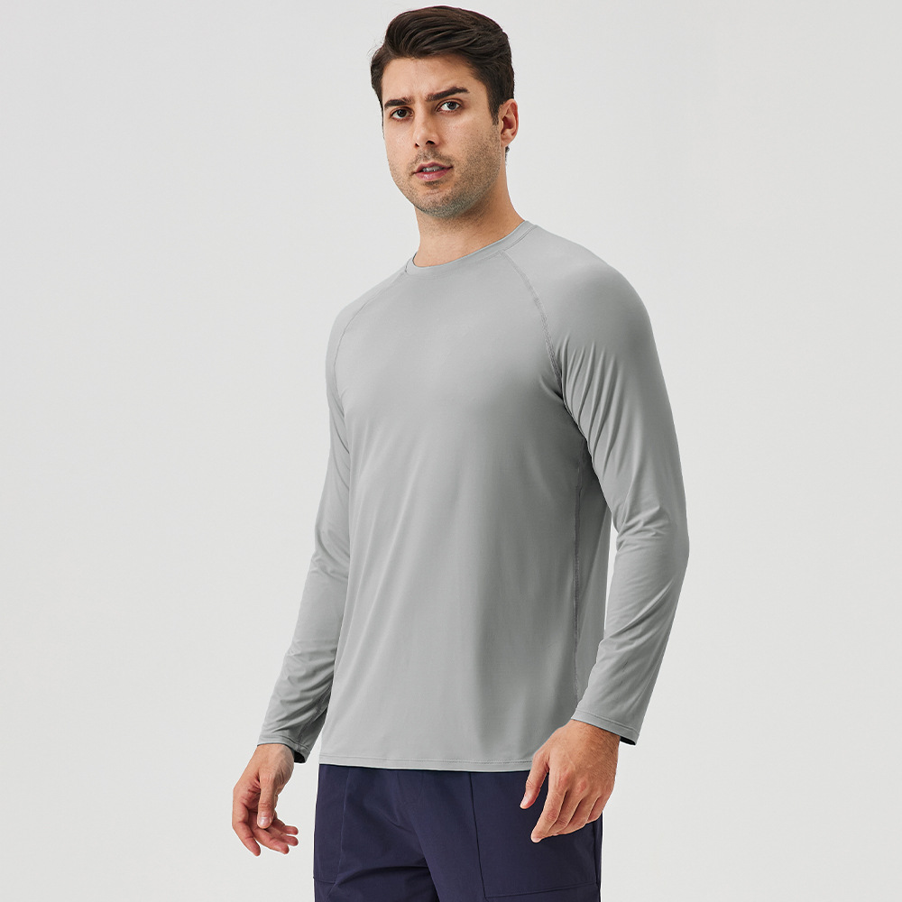 남성용 아이스 실크 선스크린 스포츠 긴팔 티셔츠 느슨한 통기성 쿨 야외 달리기 피트니스 긴팔 탑 41520