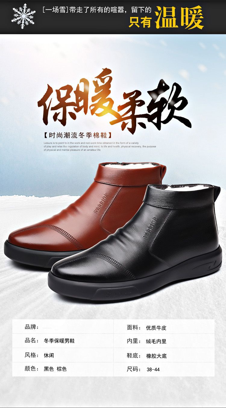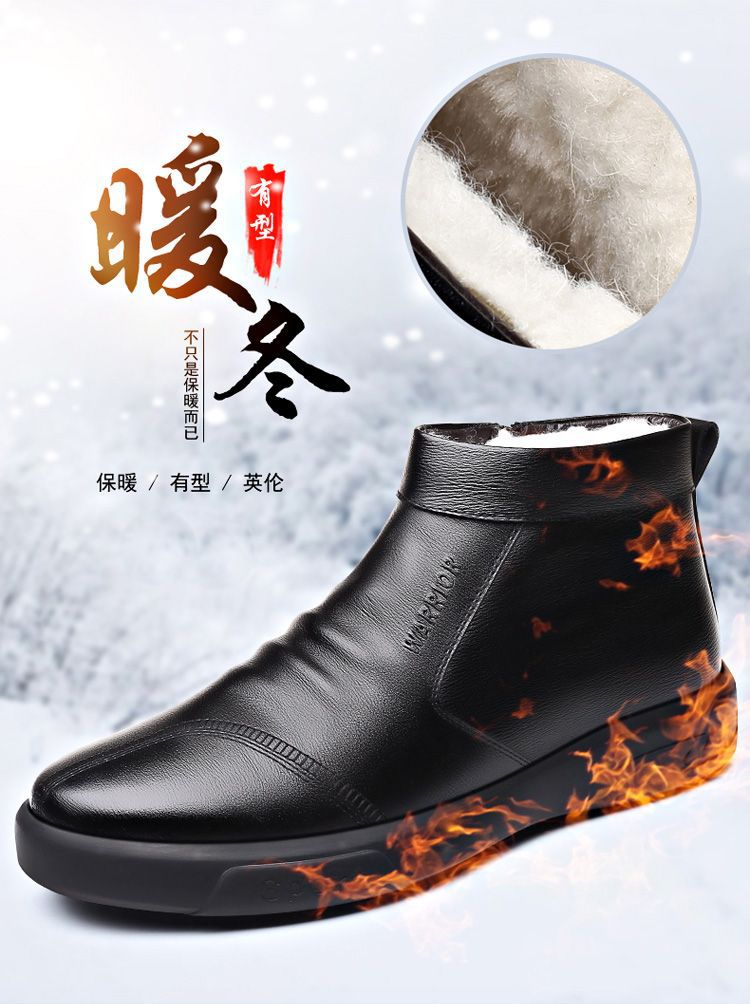 남성용 코튼 신발 겨울 따뜻한 기모 두꺼운 스노우 부츠 모피 1 중년 및 노인 아빠 신발 하이탑 캐주얼 신발스토어 가기