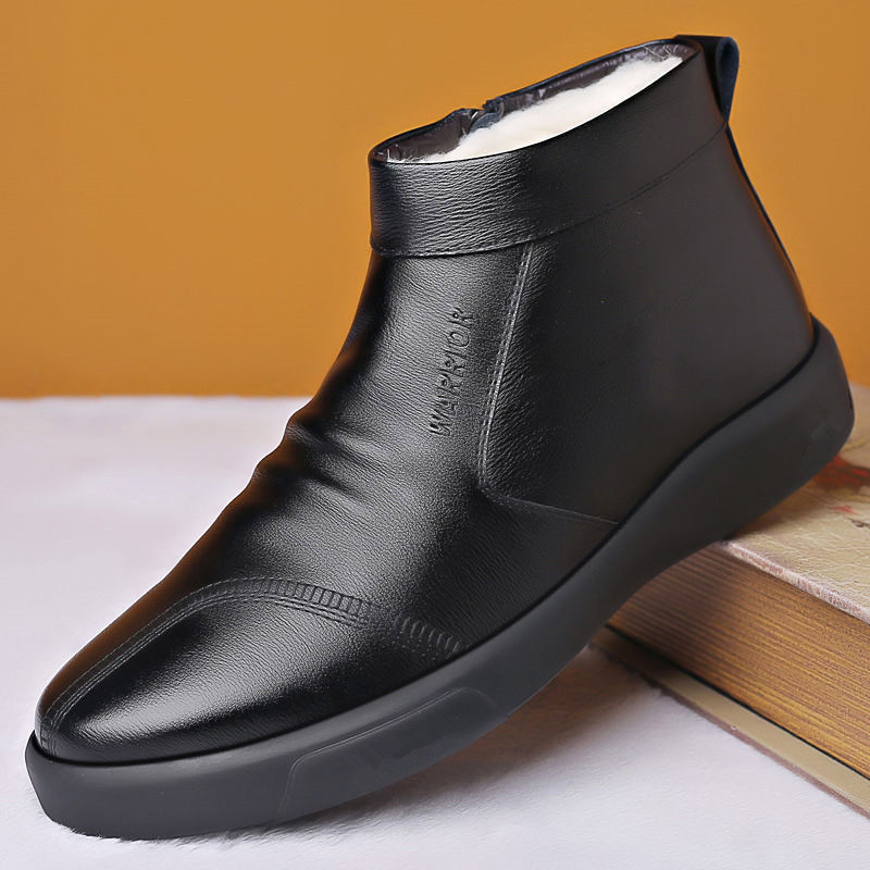남성용 코튼 신발 겨울 따뜻한 기모 두꺼운 스노우 부츠 모피 1 중년 및 노인 아빠 신발 하이탑 캐주얼 신발