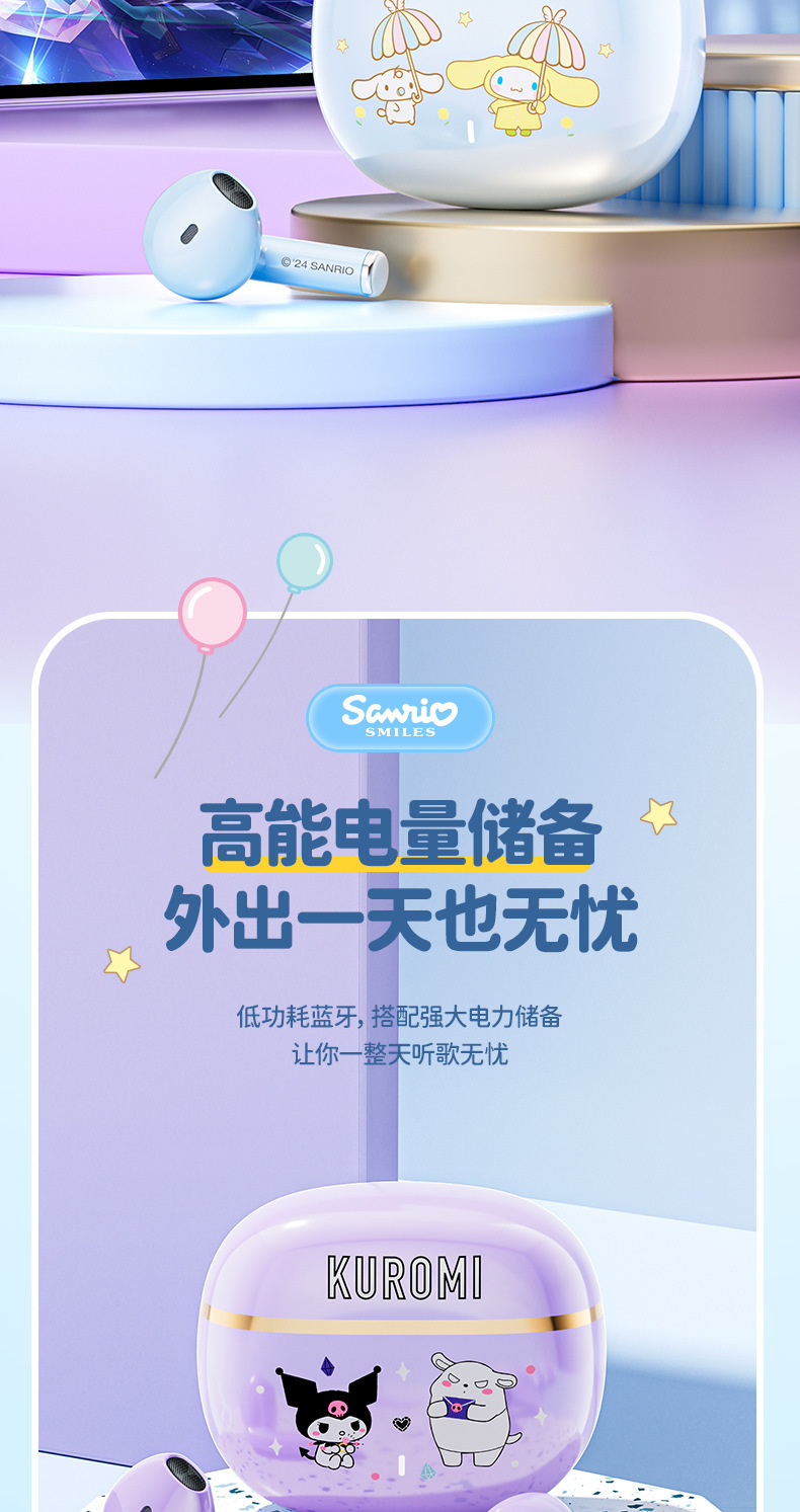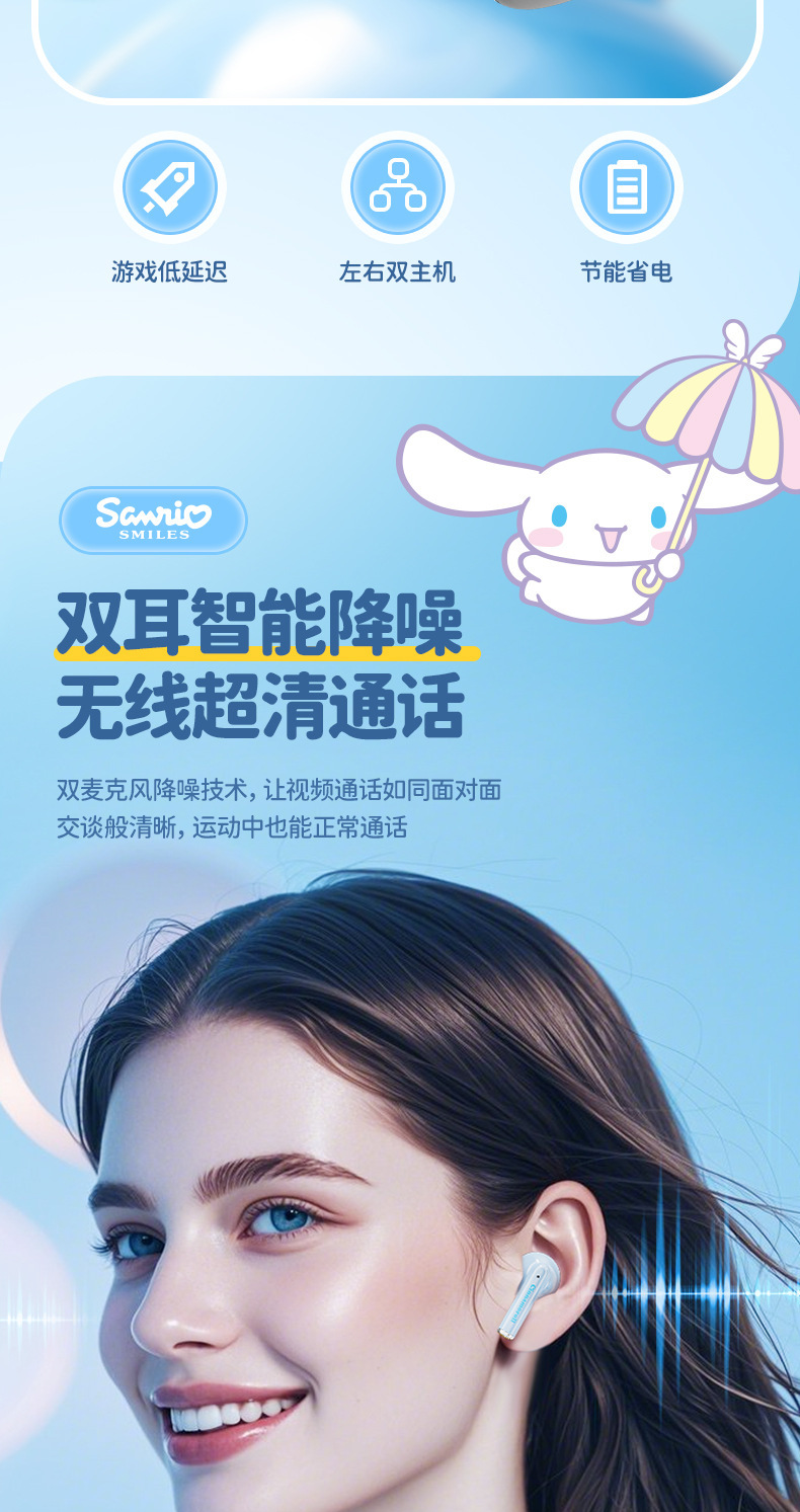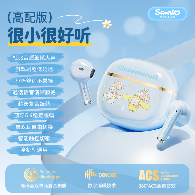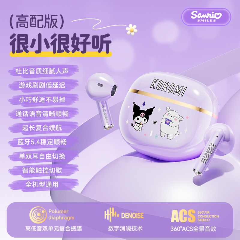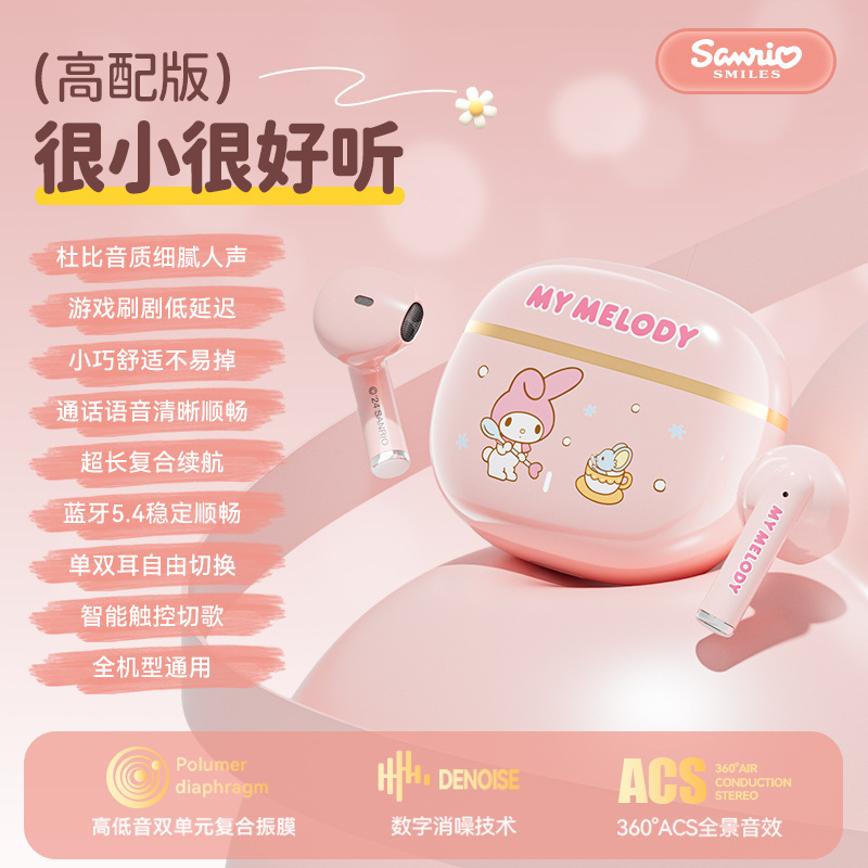 산리오 정품 새로운 헤드셋 블루투스 진정한 무선 소음 감소 미니 높은 색상 가치 높은 음질 긴 내구성 도매