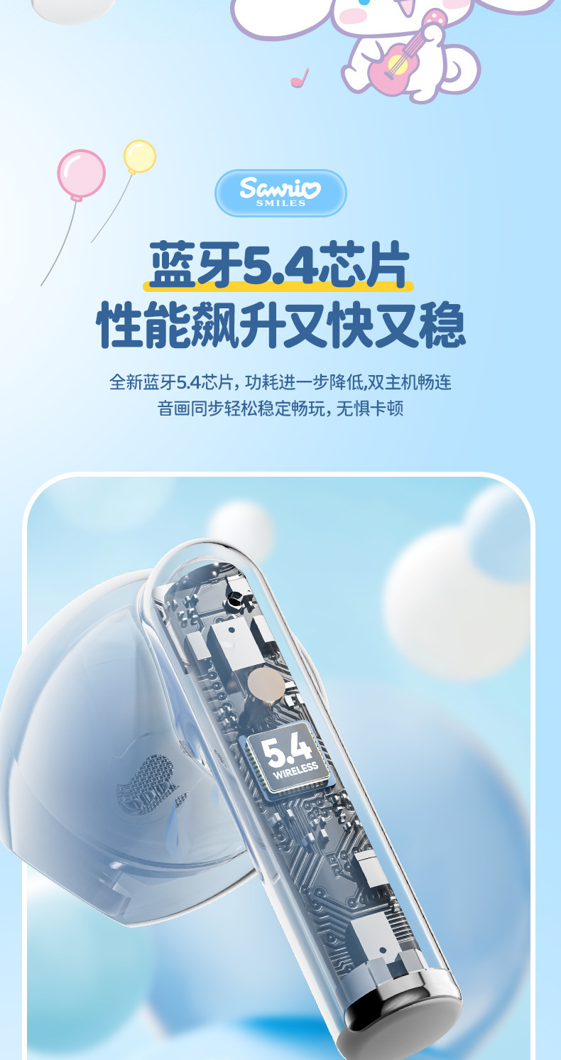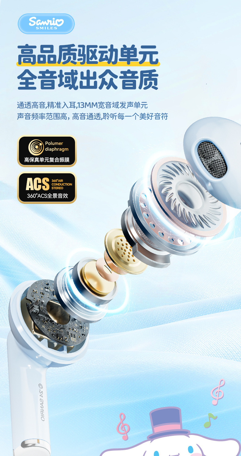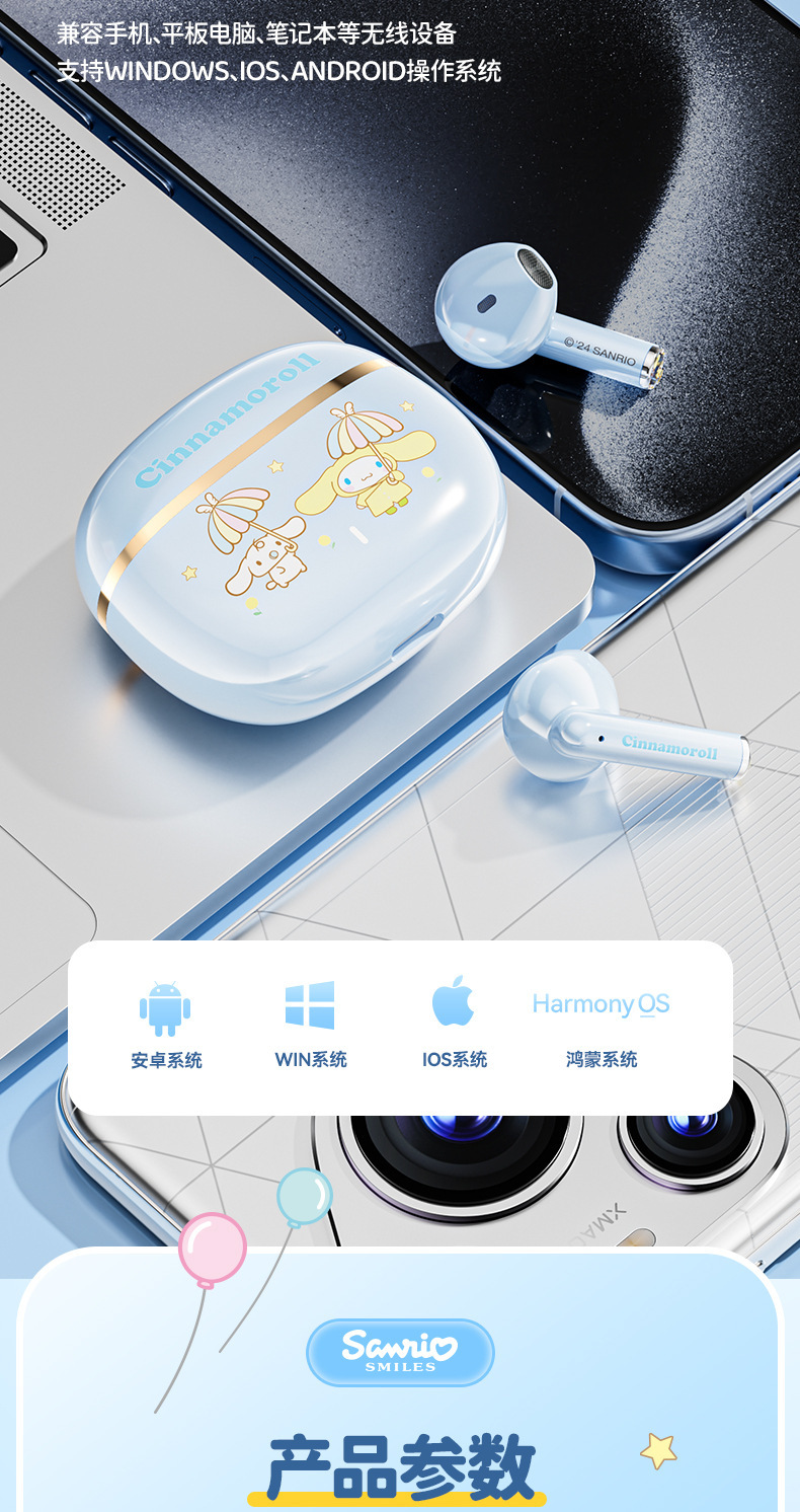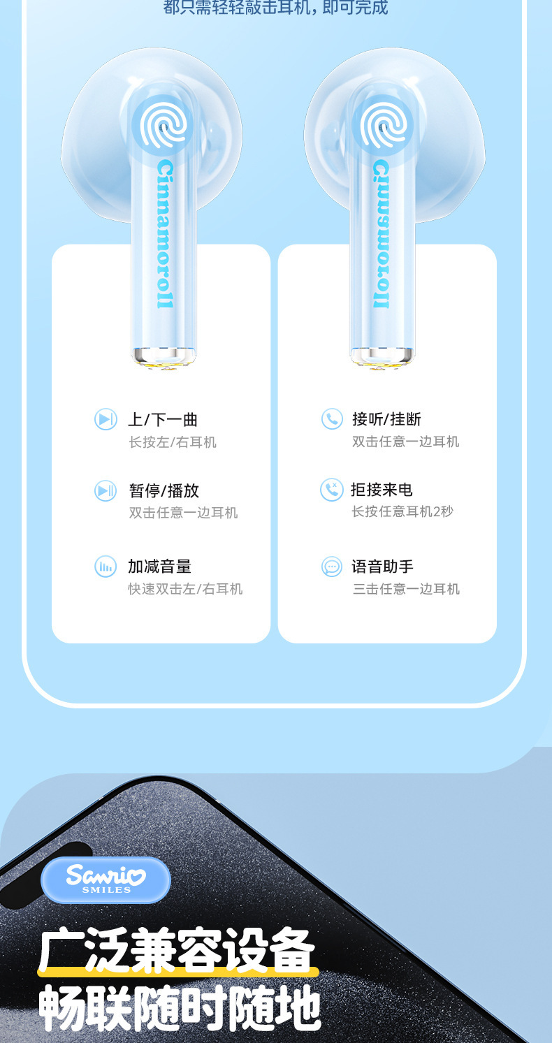 산리오 정품 새로운 헤드셋 블루투스 진정한 무선 소음 감소 미니 높은 색상 가치 높은 음질 긴 내구성 도매