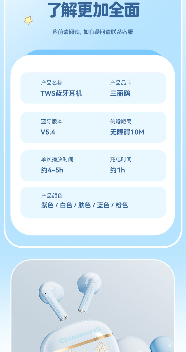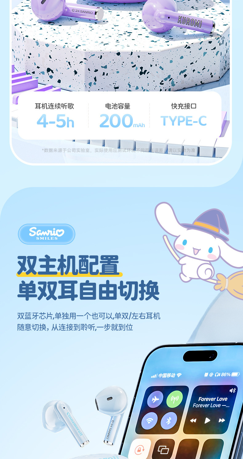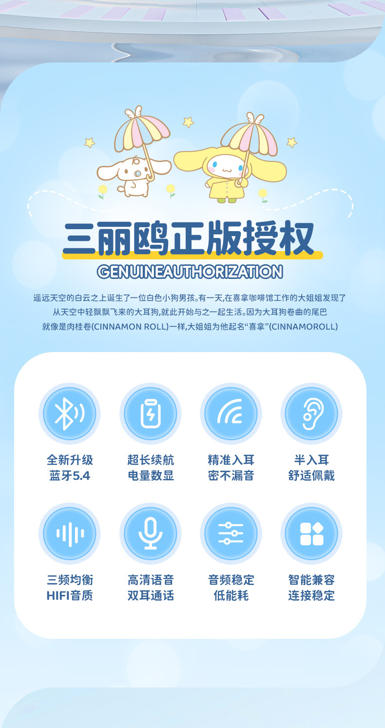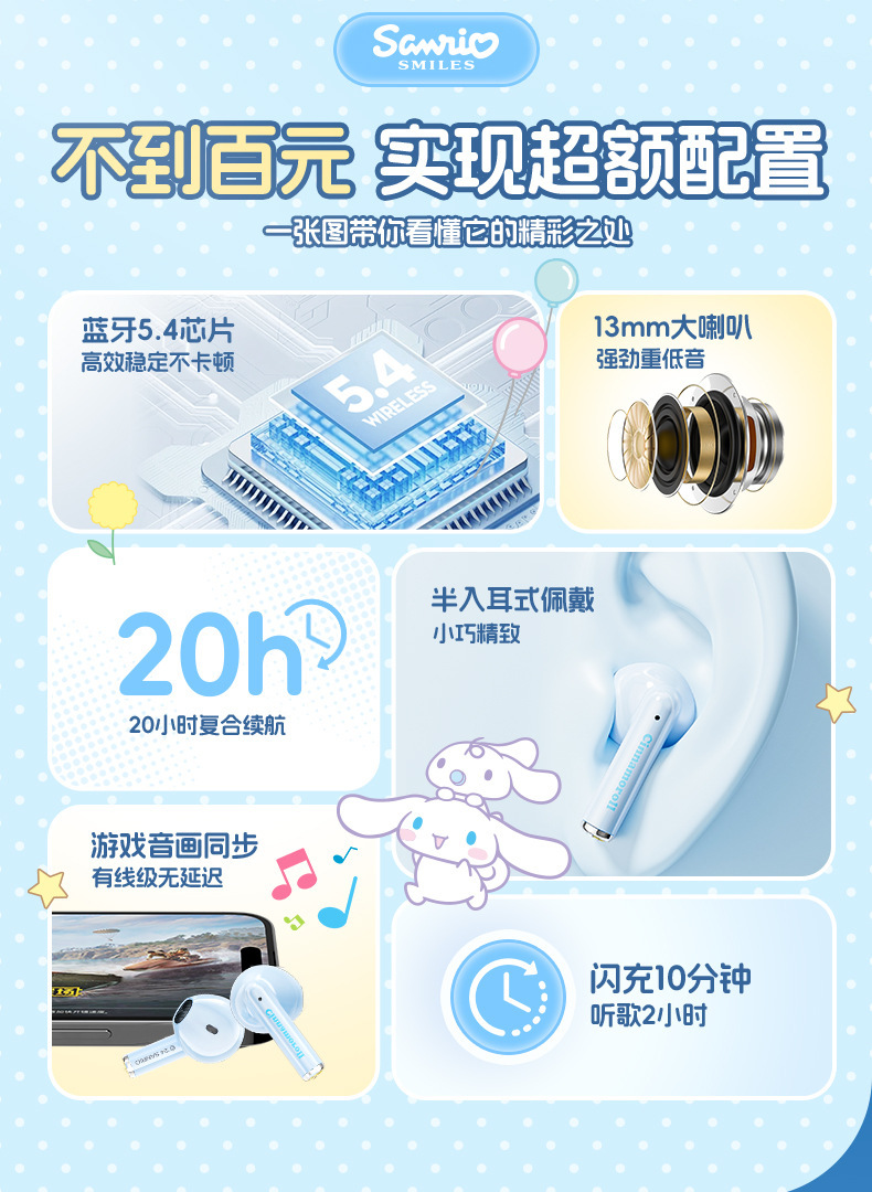 산리오 정품 새로운 헤드셋 블루투스 진정한 무선 소음 감소 미니 높은 색상 가치 높은 음질 긴 내구성 도매