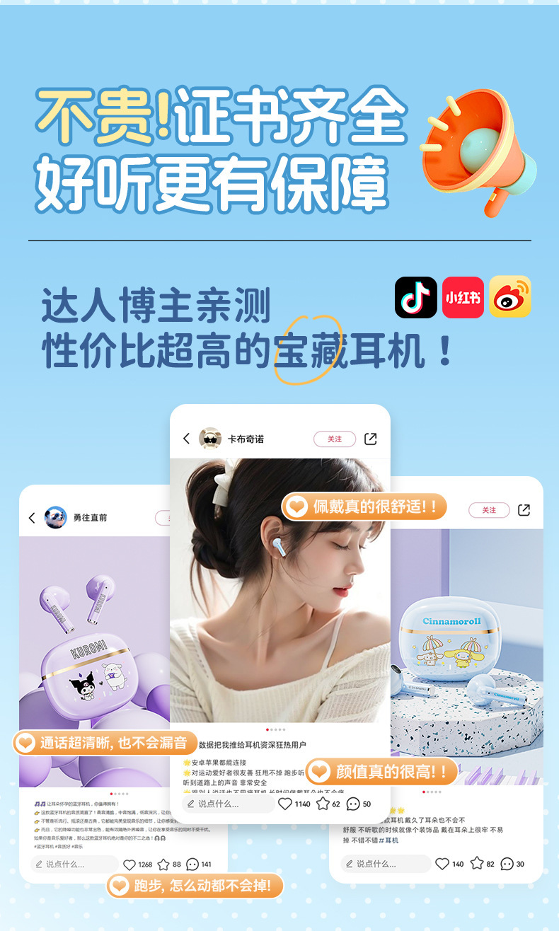 산리오 정품 새로운 헤드셋 블루투스 진정한 무선 소음 감소 미니 높은 색상 가치 높은 음질 긴 내구성 도매스토어 가기