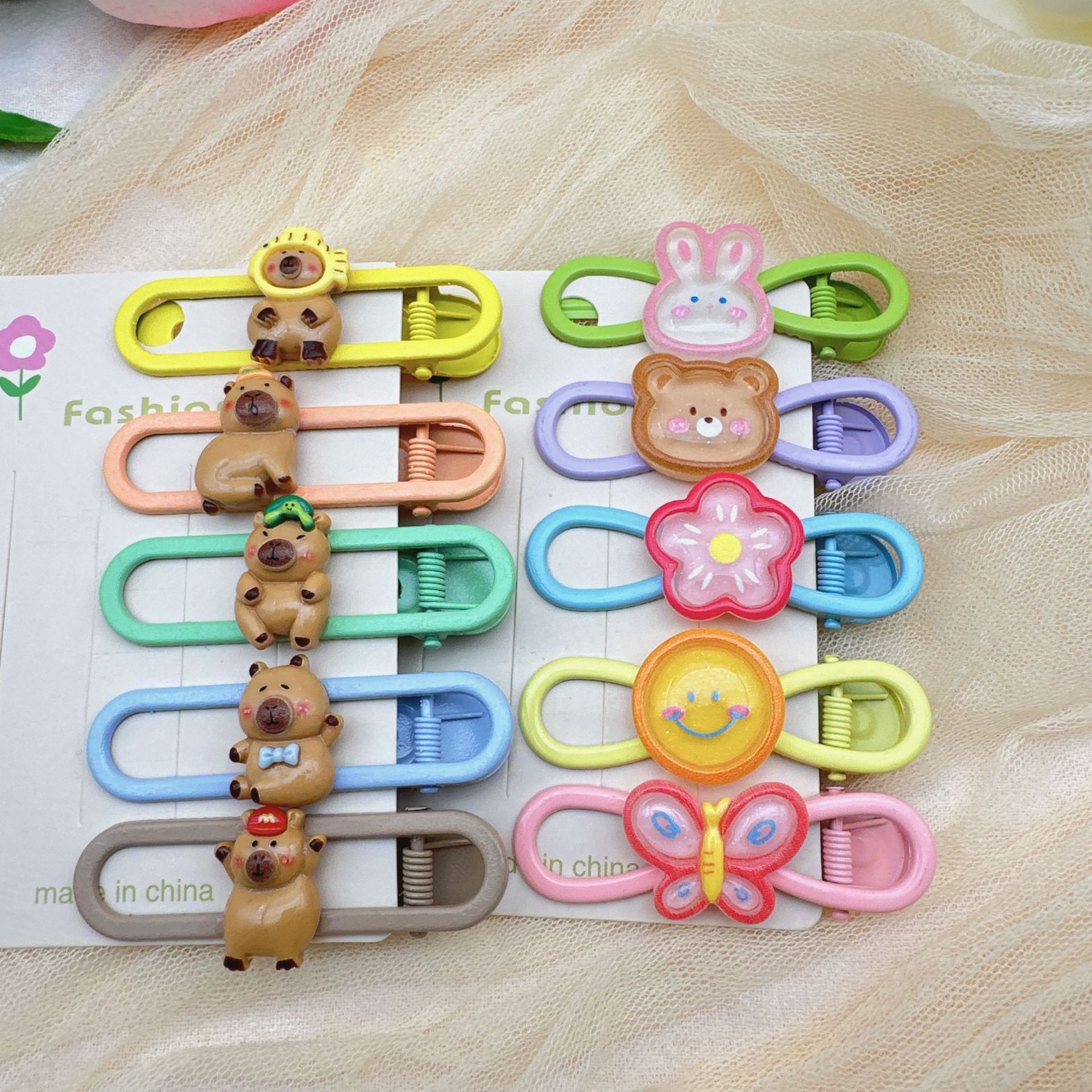 슈퍼 귀여운 만화 앞머리 클립 수지 액세서리 어린이 학생 헤어 액세서리 동물 깨진 머리핀 오리 지폐 클립 제조업체 직접 판매스토어 가기